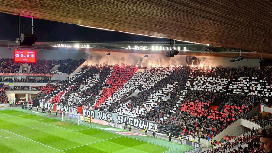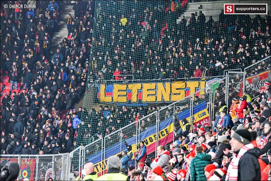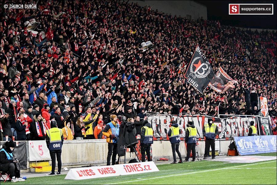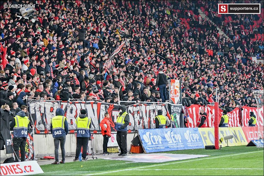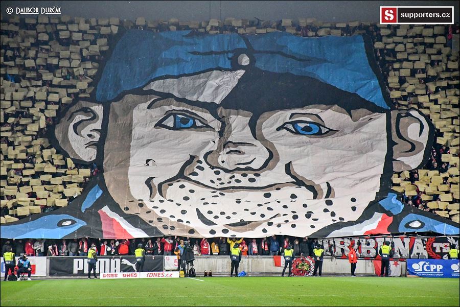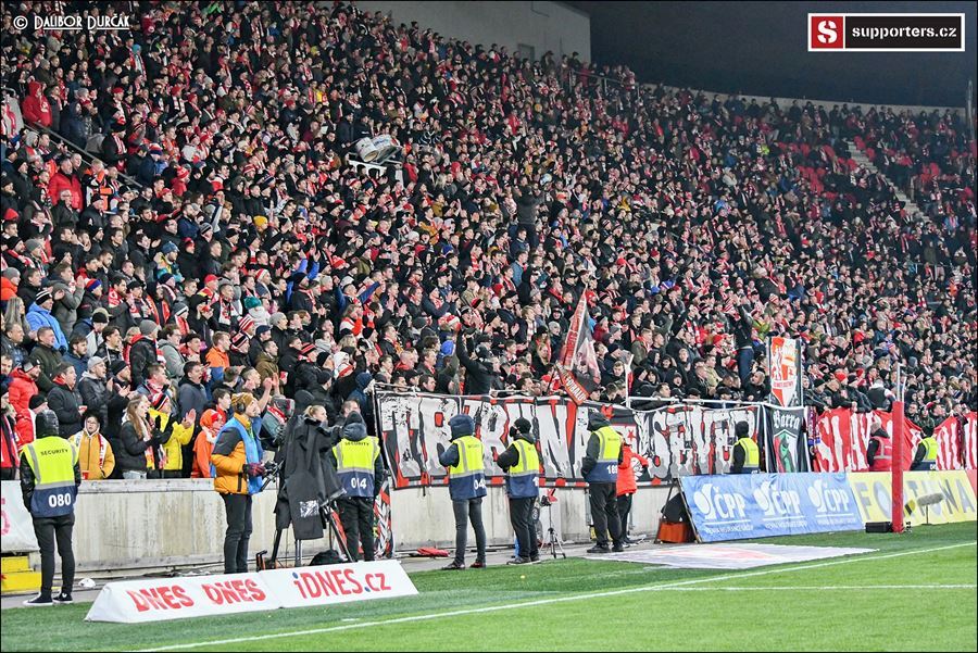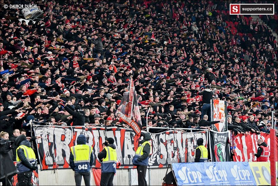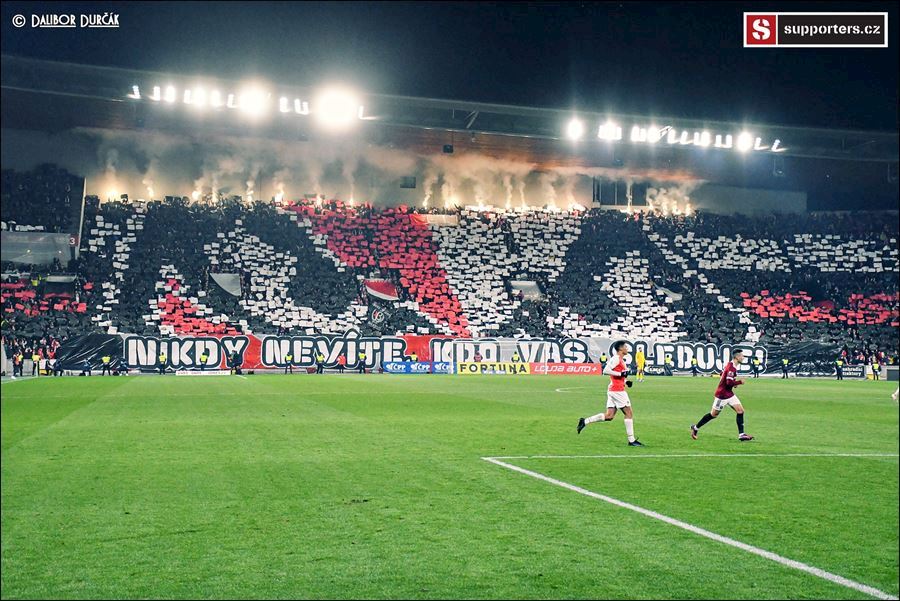 V utkání se objevilo choreo na straně domácích fanoušků, stejně jako pyro, které navíc nechybělo ani v sektoru hostí. Tam ostatně hořelo nejen pyro...