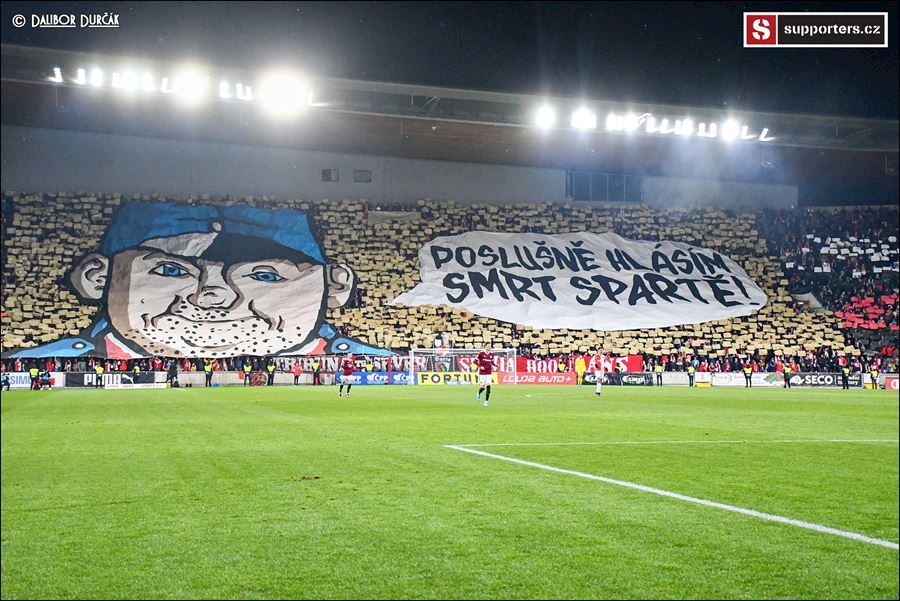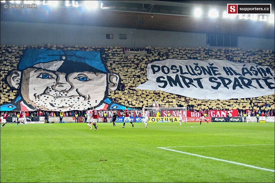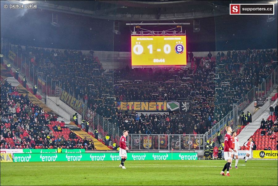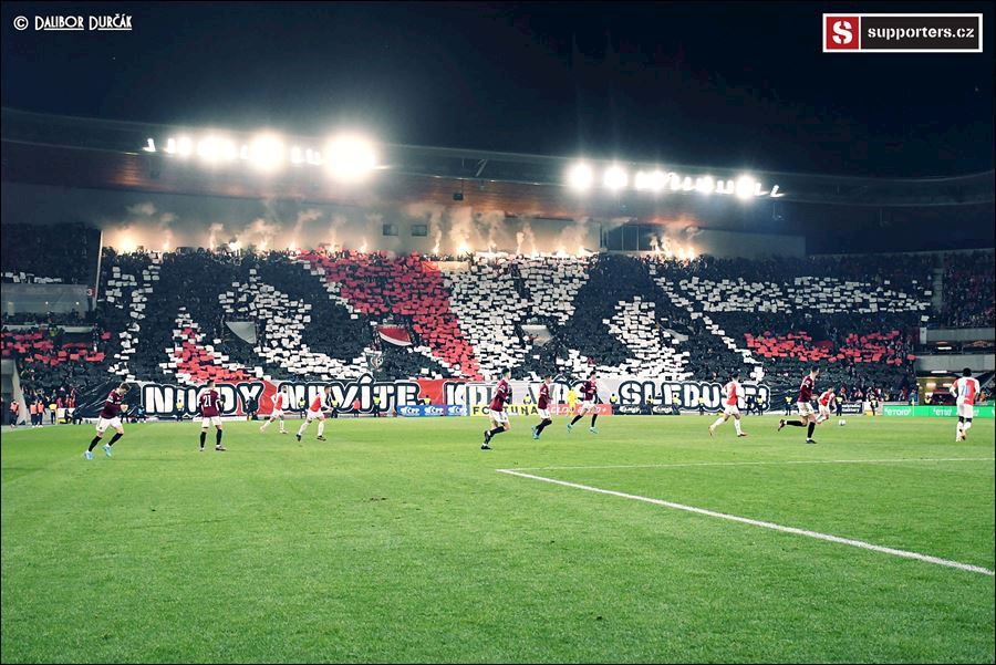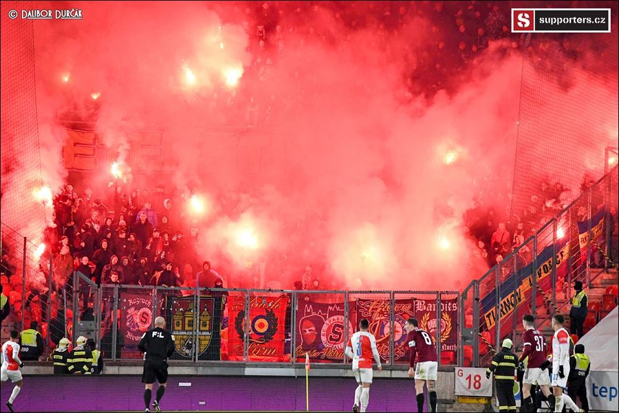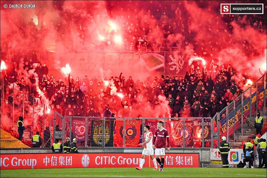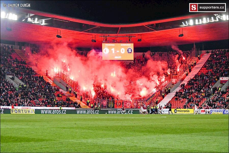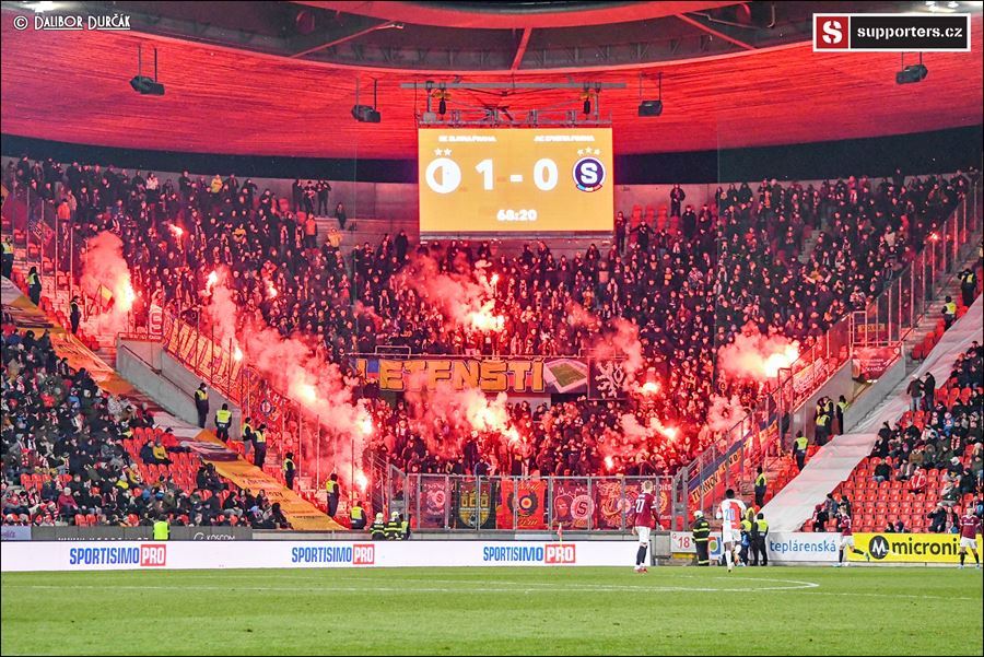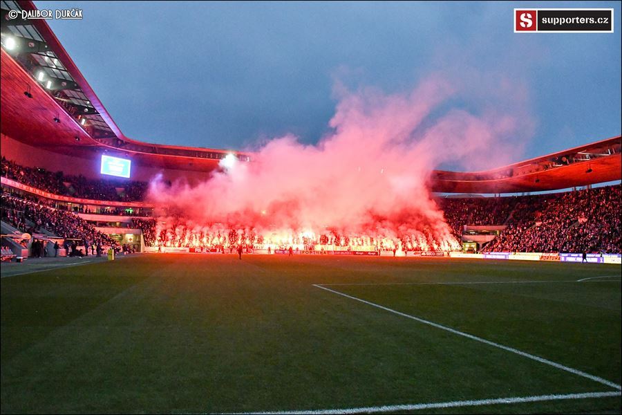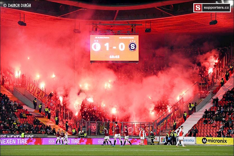 Konečně zase vyprodaný stadion!!! 302. derby pražských S přineslo choreografie a spoustu pyrotechniky!