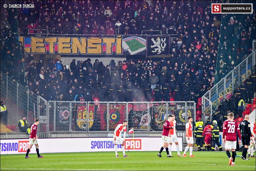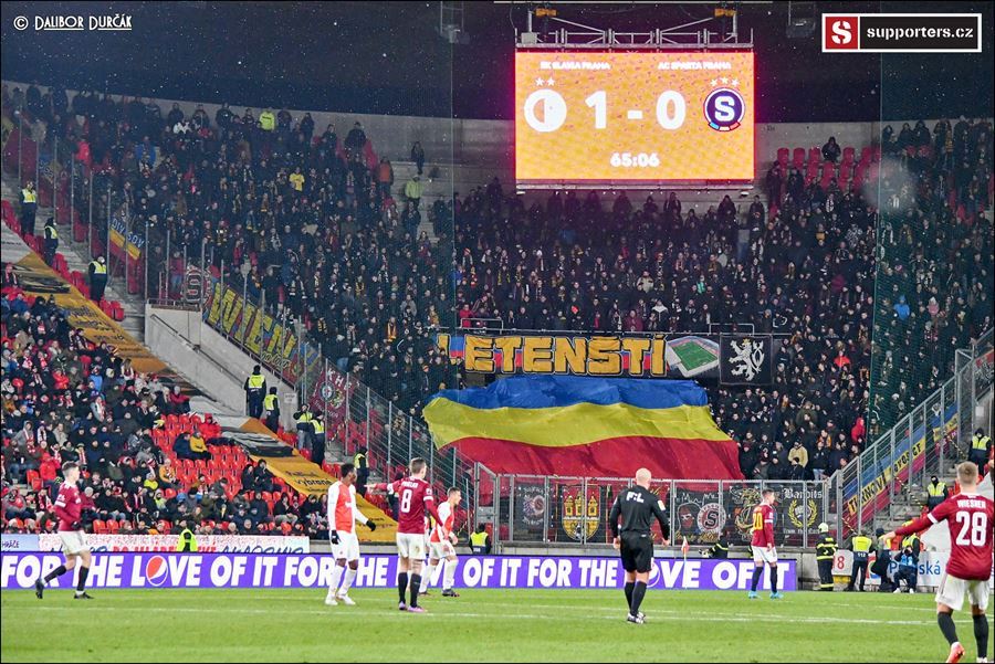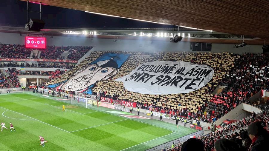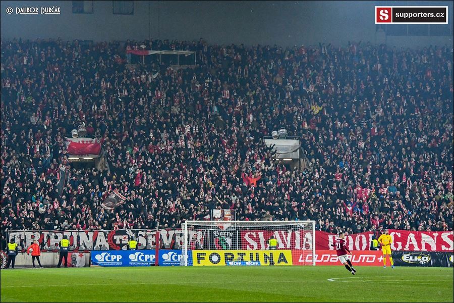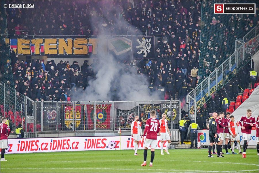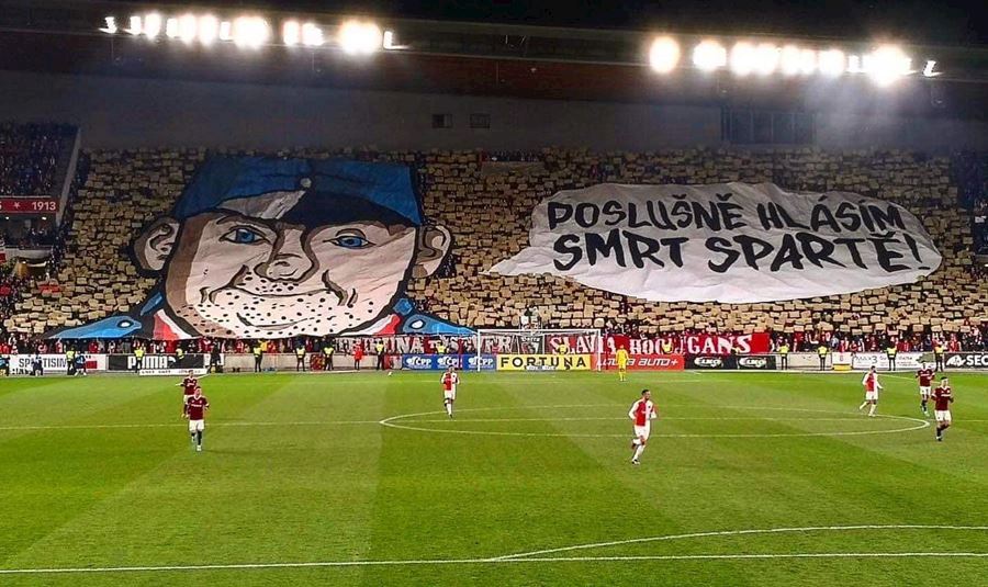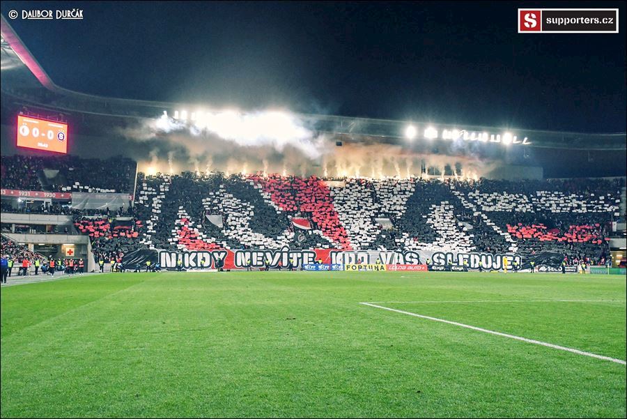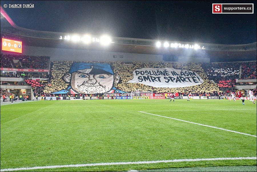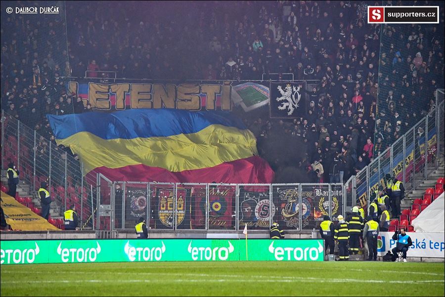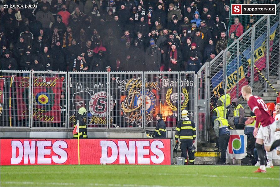 Konečně zase vyprodaný stadion!!! 302. derby pražských S přineslo choreografie a spoustu pyrotechniky!