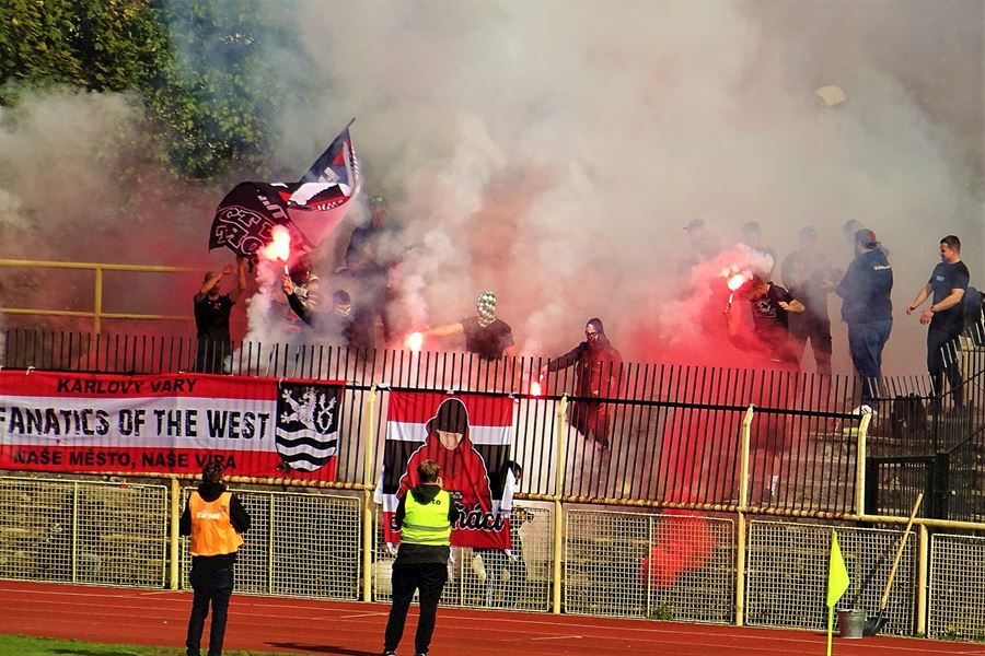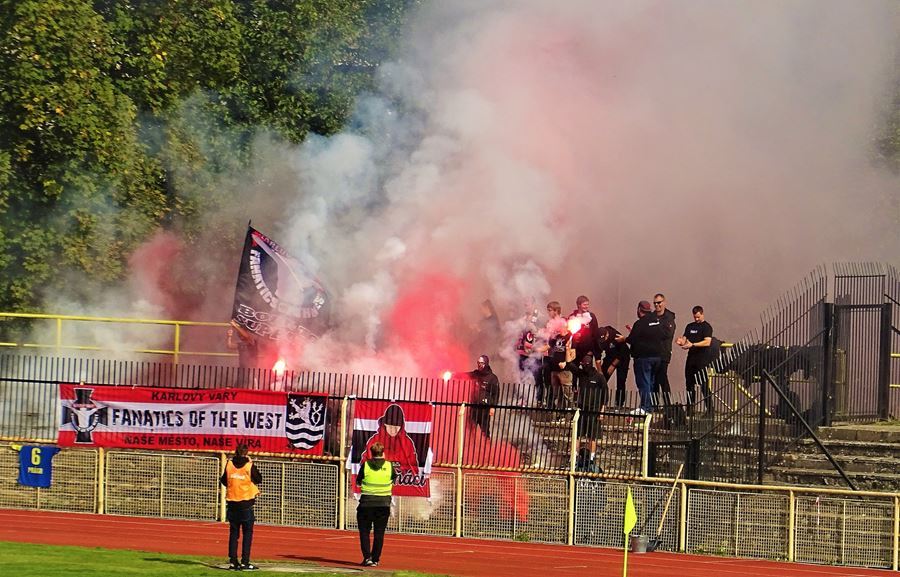 Bavit se, to je oč tu běží. V lokálním derby v ČFL mezi Sokolovem a Karlovými Vary to rozhodně platilo! Utkání třetí nejvyšší soutěže skončilo výhrou Sokolova 3:1. Utkání příhlíželo 720 diváků a na obou stranách byly k vidění menší prezentace a celkem dost pyrotechniky...