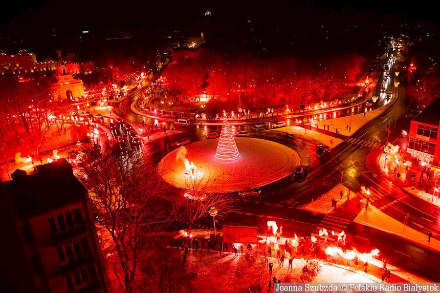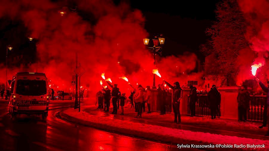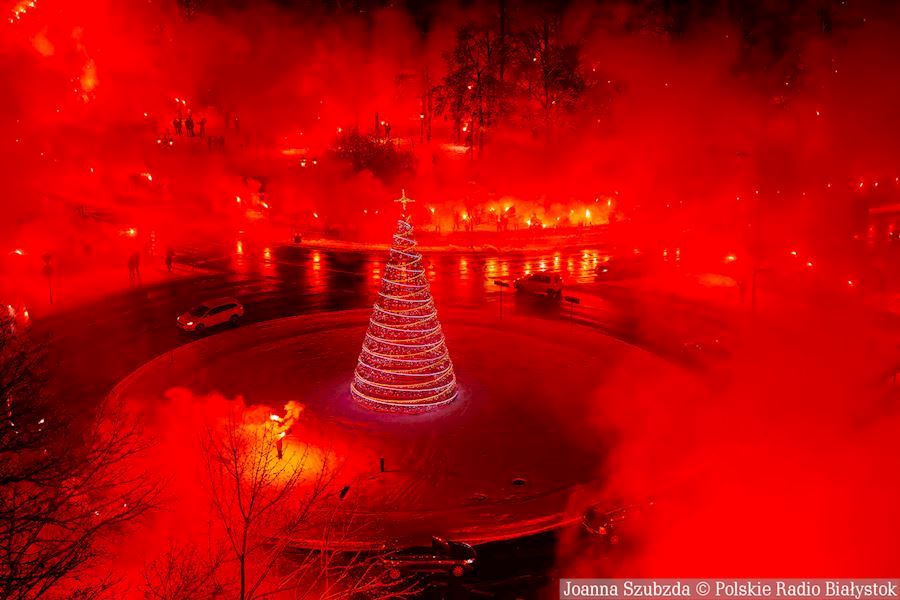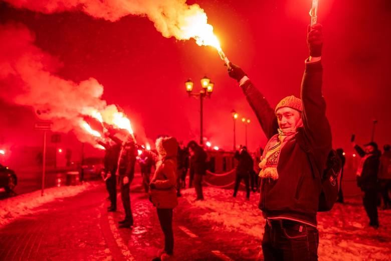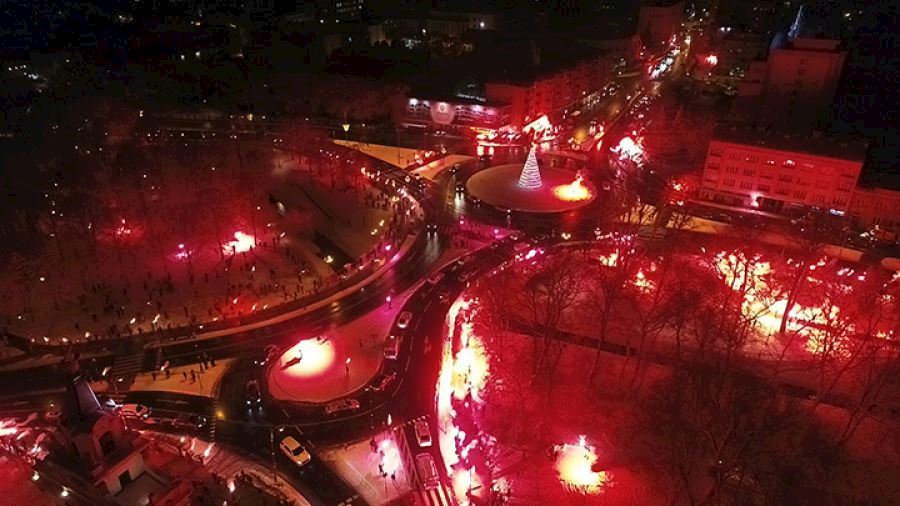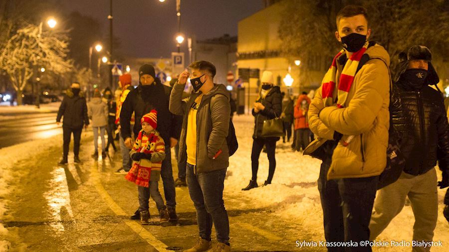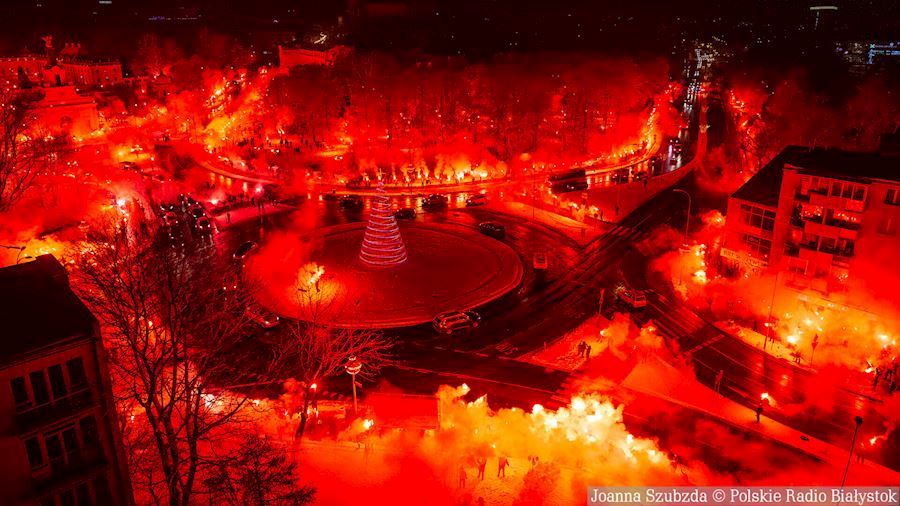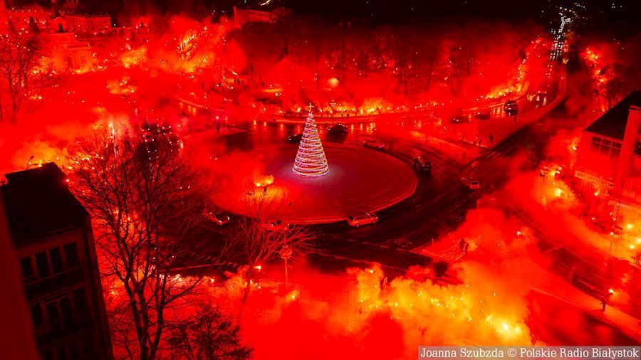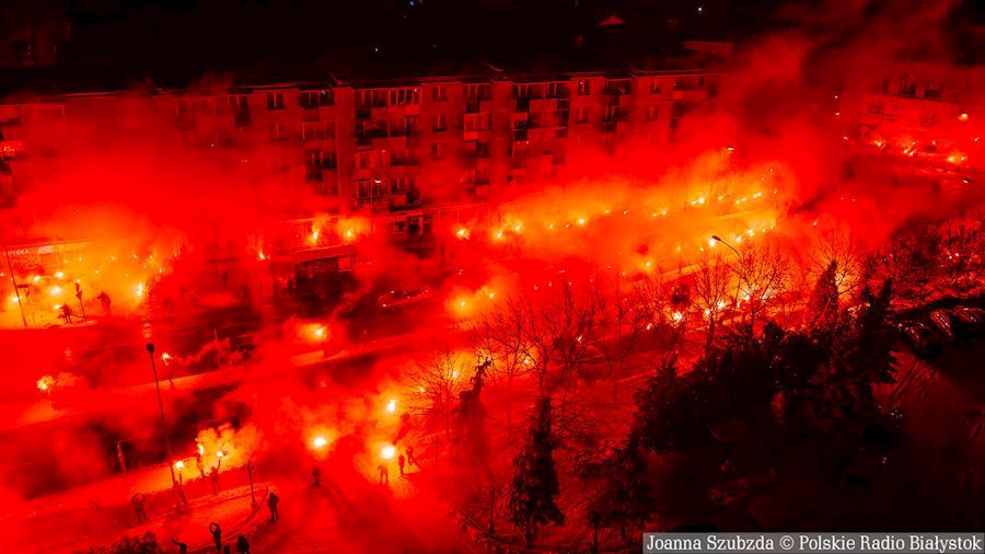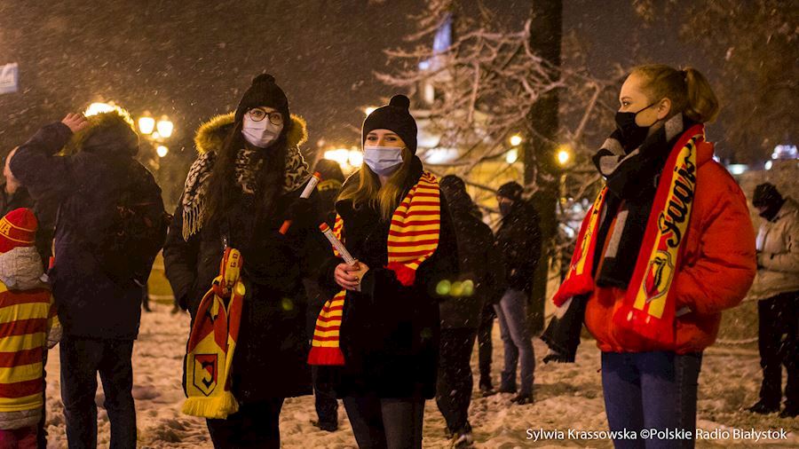 I přes veškerá kovidová omezení se v polském Bialystoku sešli fanoušci, aby prosvítili město. Jejich klub, Jagiellonia Białystok, oslavil 101. narozeniny a lednový vzduch provoněla pyrotechnika.