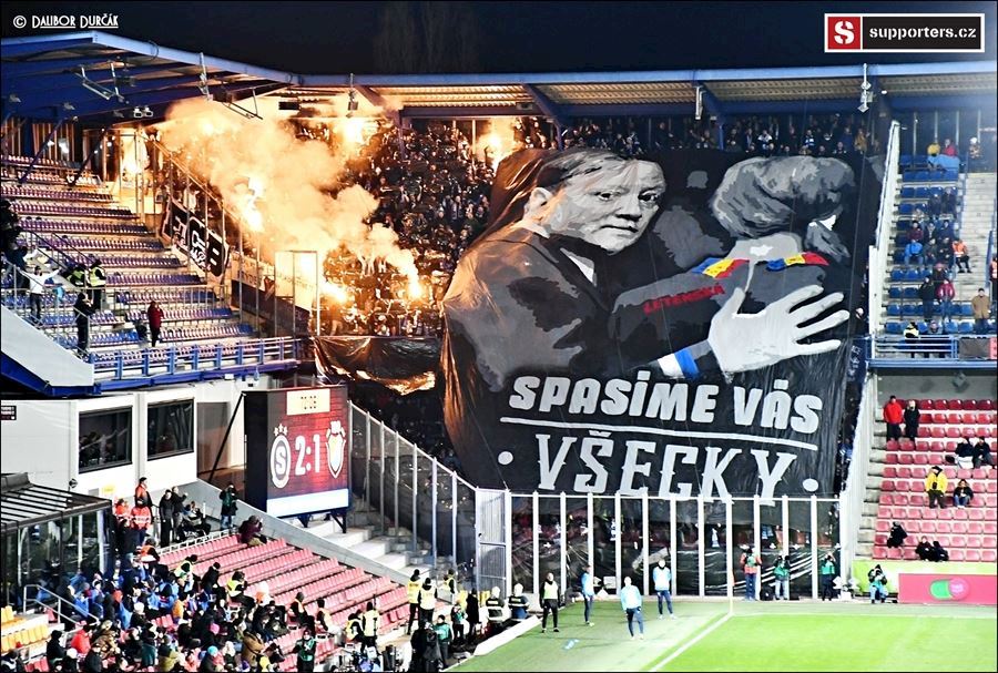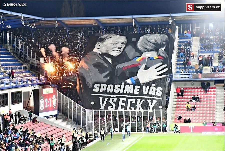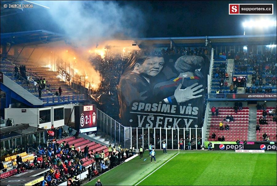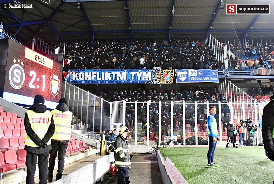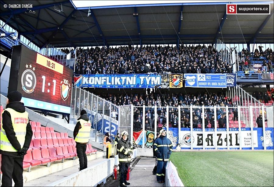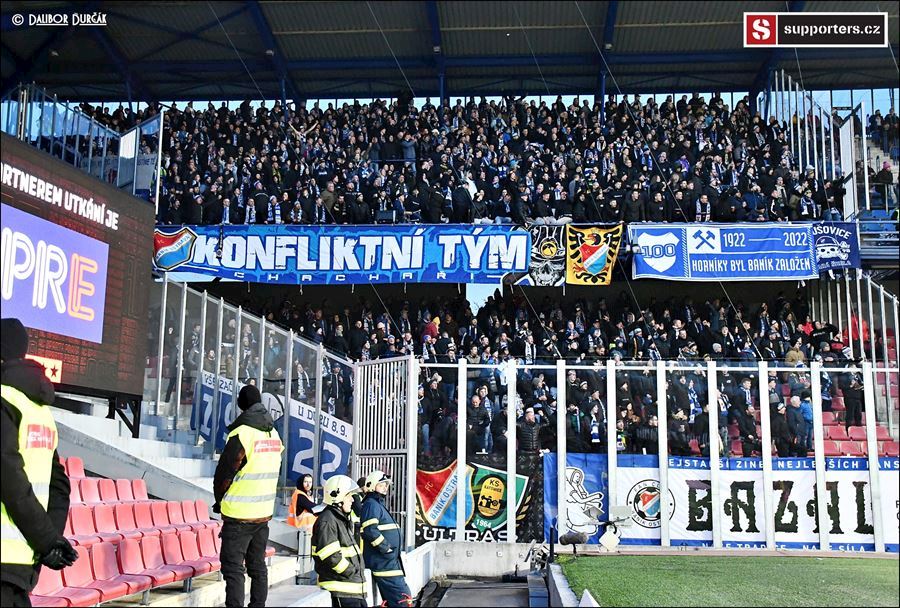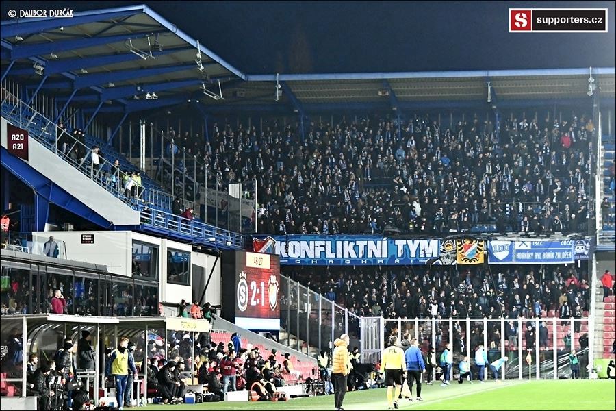 Oba tábory se na utkání připravili a tak jsme byli svědky choreí i pyrotechniky na obou stranách.