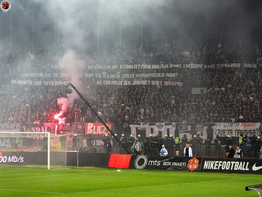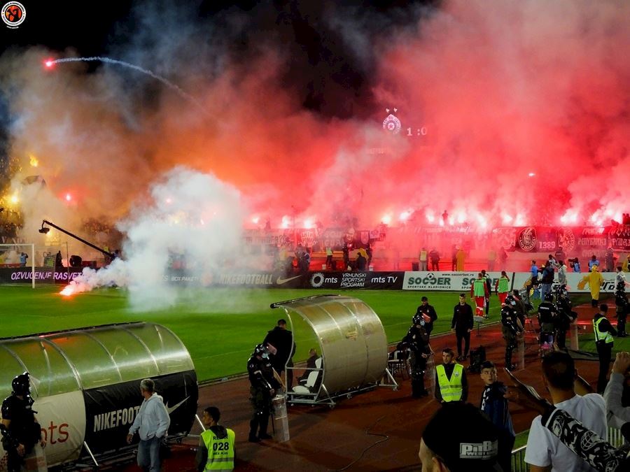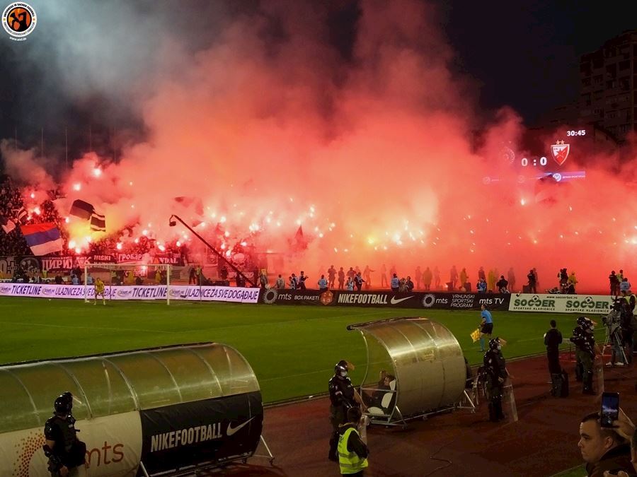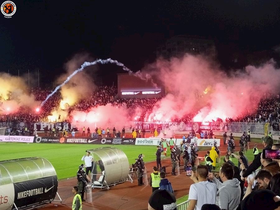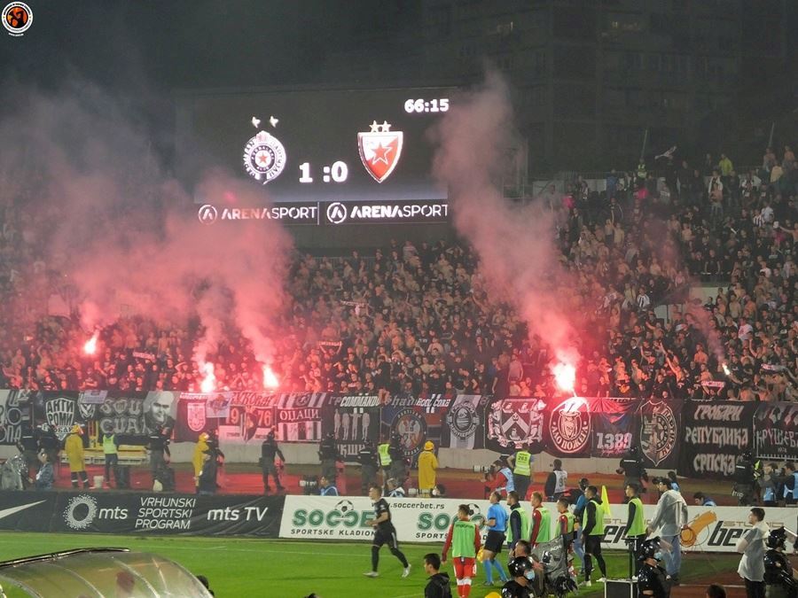 Včera se v Srbsku odehrálo semifinále poháru mezi Partizanem a Crvenou Zvezdou. Bělehradské derby sledovalo 22 tisíc fanoušků z toho 6 tisíc hostů. Utkání bylo okořeněno velkým množstvím pyrotechniky a z postupu se nakonec radovali příznivi Partizanu po výhře 1:0.