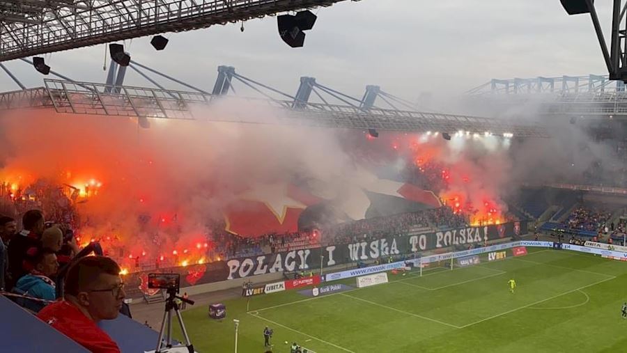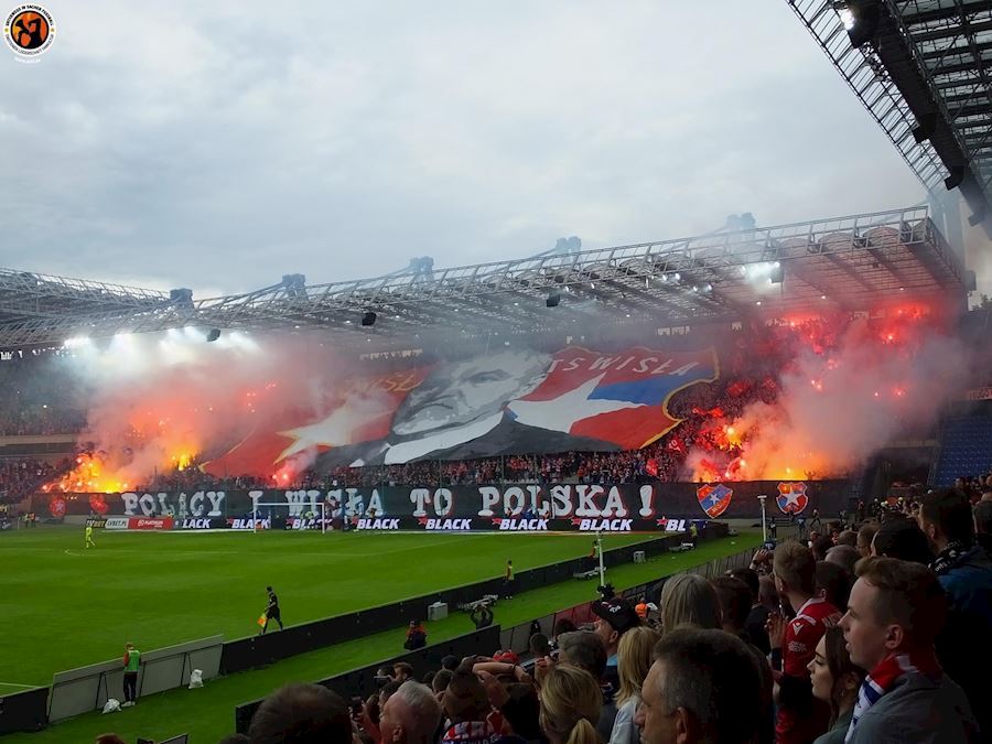 Šlágr polské Ekstraklasy mezi Wislou Kraków a Legií Warszawa nabídl choreografie na obou stranách a nemohla chybět ani tradiční pyrotechnika. Z výhry 1:0 se po zápase mohli radovat fanoušci domáci Wisly.