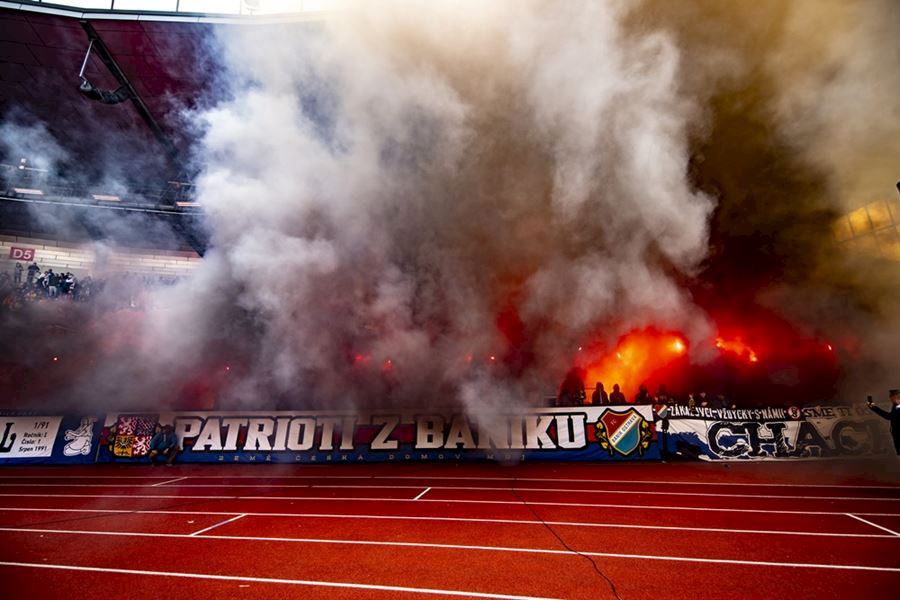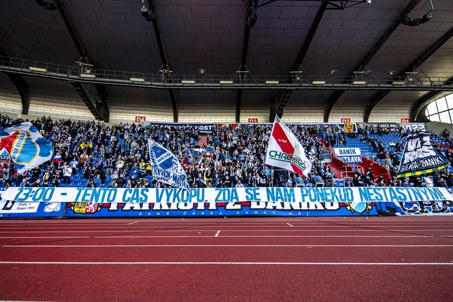 Chachaři popřáli Vítu Baránkovi, a taky poukázali na nefotbalový čas výkopu utkání. 13:00 - tento čas výkopu, zdá se nám poněkud nešťastným! Stadion rovněž provonělo pyro