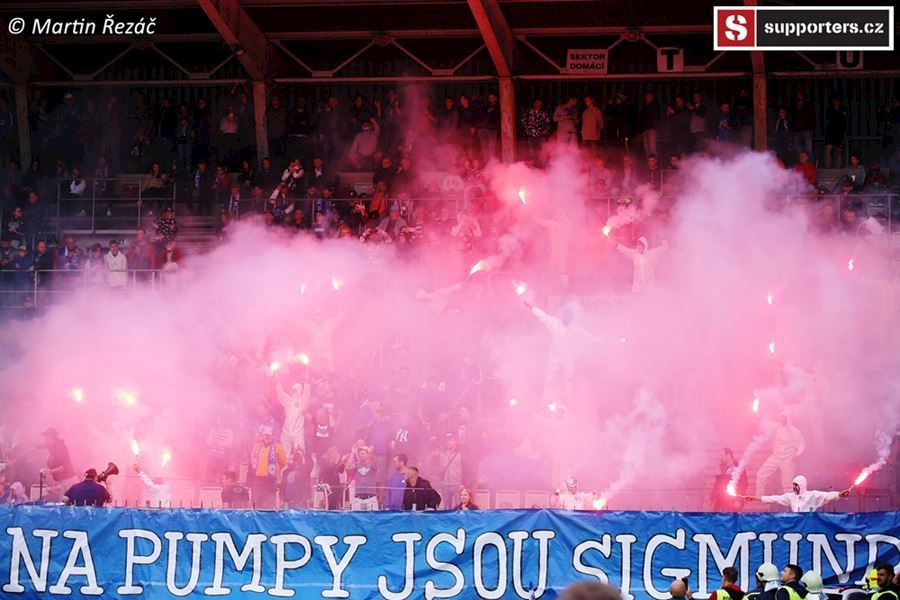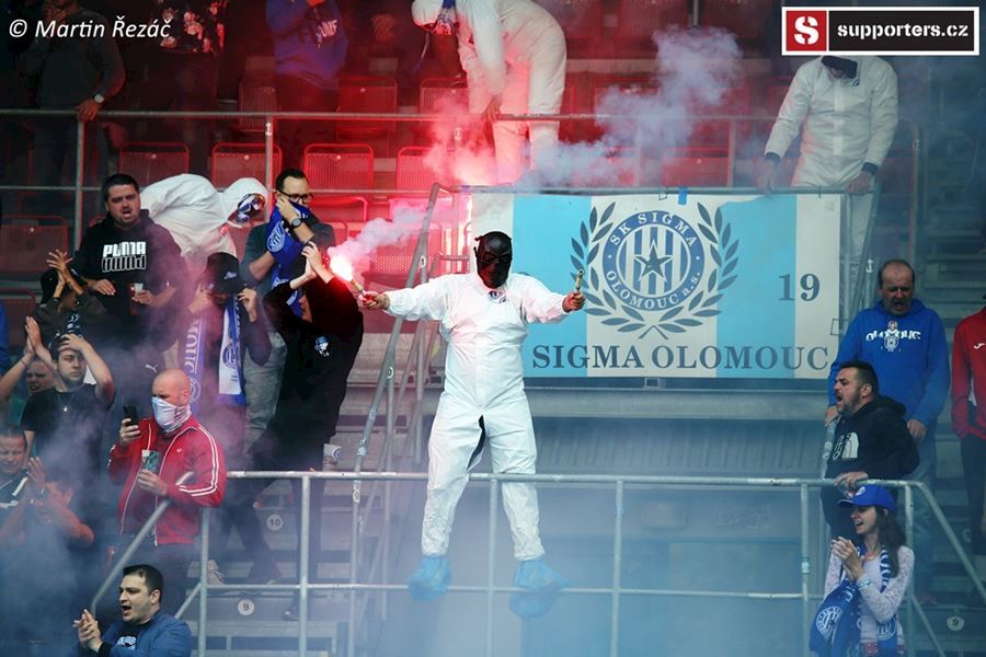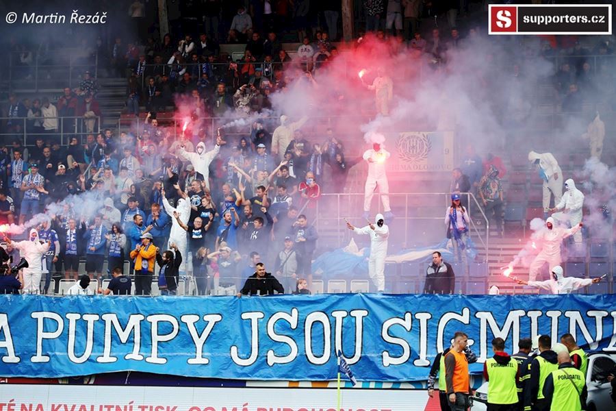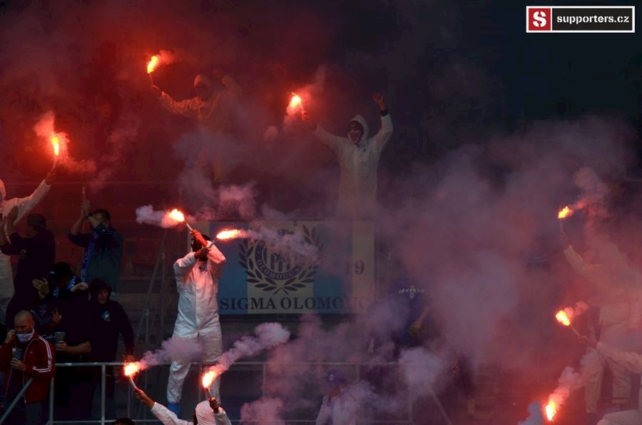 Chachaři si užili vítěznou invazi do Olomouce. Na stadion si našlo cestu více jak deset tisíc diváků, kteří viděli choreo a pyrotechnickou vložku na obou stranách...