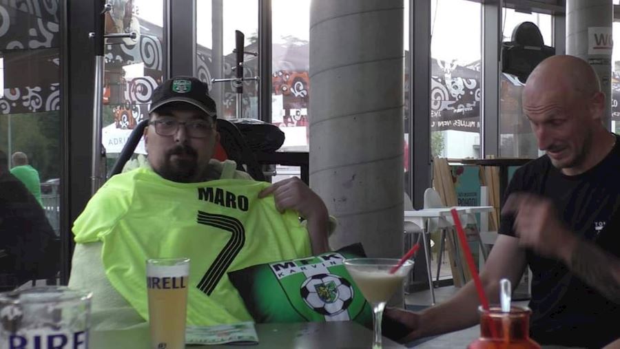 Zápas začíná 10 minut před výkopem dobročinnou akcí pro Marka. Většina lidí opravdu vylezla na tribuny, za což jim patří velké díky. Po videu, ze kterého si Marek vyslechl vzkazy od mnoha sportovců, následoval zasloužený celostadionový potlesk. Marek měl velkou radost, díky všem. V 16:30 hlavní rozhodčí Hrubeš fouká do píšťalky a zápas začíná. Na úvod vyvoláváme Marka, na což se nás snaží skupinka asi 5 Chacharů z tribuny D přeřvat… Nevybrali si zrovna vhodný moment. Další skupina Chacharů z tribuny C, jimž jsme sami uvolnili 5 lístku z naší kvóty 40 kotelníků, vyvolává „Český fotbal pro fanoušky“. My se k nim přidáváme. V 5. minutě roztahujeme choreo složené střídavě ze zelených a bílých pruhů, doplněné graffiti nápisem Karviňáci. (Fotograf trochu zaspal, a tak pokud máte jakékoliv fotky chorea, neváhejte posílat do zpráv nebo komentářů). Ze začátku fandíme na 100% a pár přítomným Chacharům nedáváme šanci, ke konci poločasu bohužel support slábne a rozmáhá se nám takový nešvar, lidé sedají. O poločase doplňujeme palivo. Do druhého poločasu vstupujeme průměrným supportem, který občas střídají pozdravy pro rozhodčího, který zápas podle nás viditelně nezvládal. Kolem 75. minuty hosté za plotem odpalují 3 ohně. Zápas končíme ještě jednou pokřikem „Český fotbal pro fanoušky“ a jdeme se Marovi vyfotit pod nápis „Maro, drž se!“. Přidáváme skromnou děkovačku hráčům a jsme popohnání pořadatelskou službou, ať už vypadnem. Po zápase skupinka naších lidí sedá s Marem ve Slivkafé a čekáme na Mara Janečku. Ten vzápětí přichází a přináší Markovi i dárkovou tašku s dresem.
