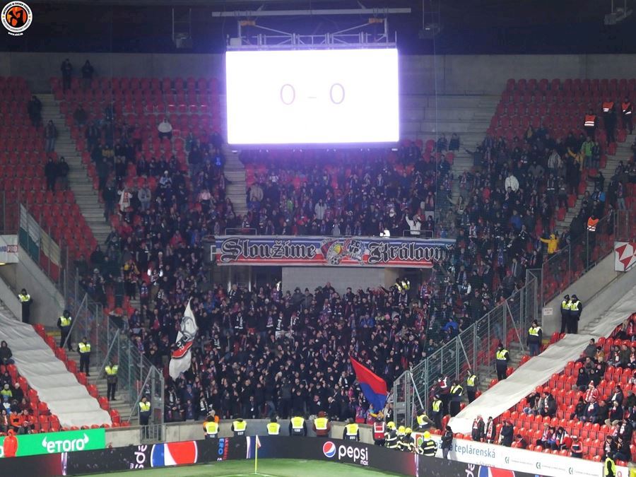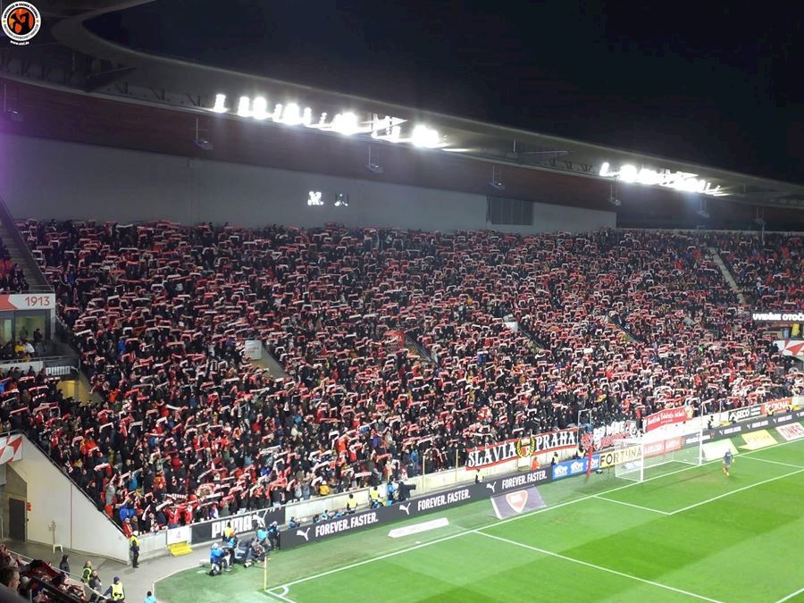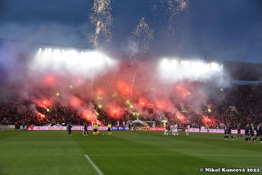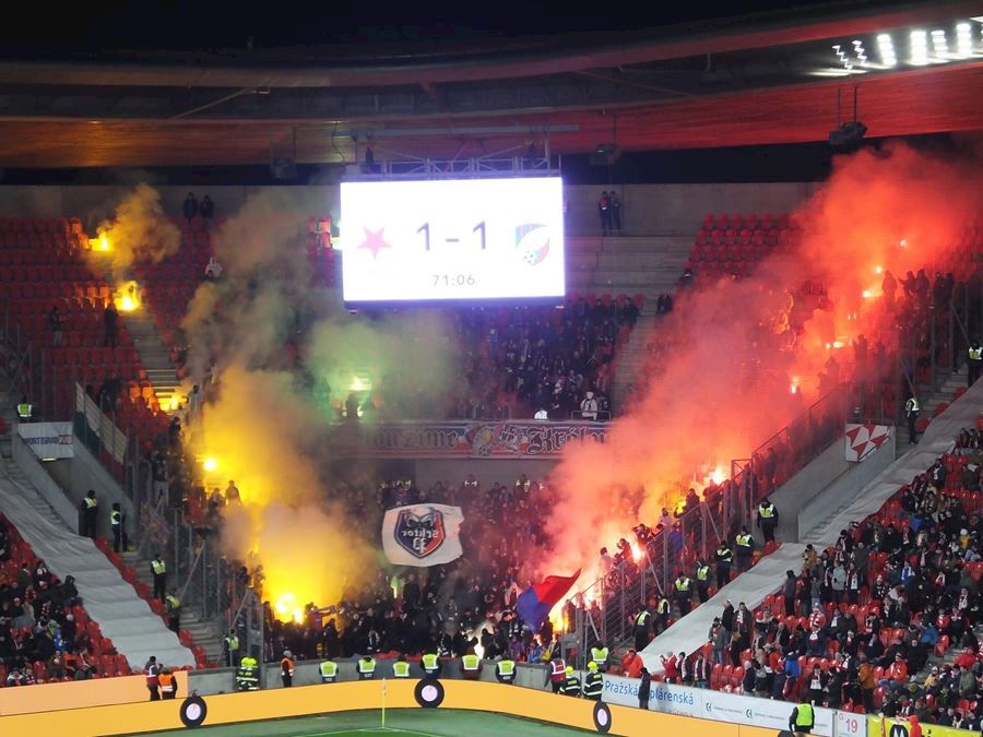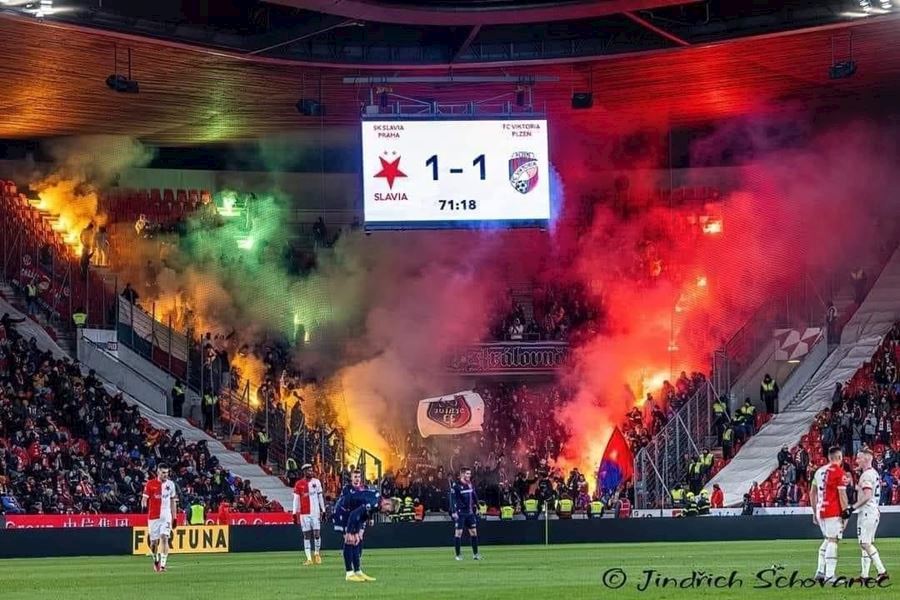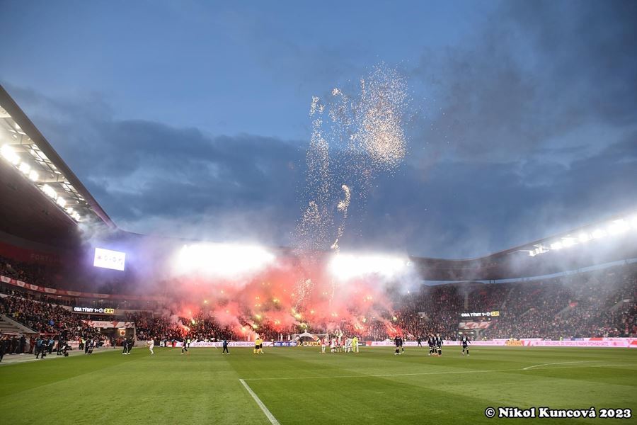 Chemická laboratoř Tribuny Sever to pořádně rozpálila! Vůně a záře pyra zaplavila i sektor hostí... Souboj prvních dvou týmu tabulky sledovalo v Edenu 18.678 diváků. Z výhdy 2:1 se nakonec radovali fanoušci Slavie.