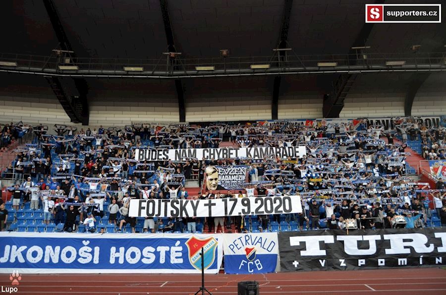 Vzpomínka na kamaráda, žádný virus nás nezastaví, vlajky a pyrošou...