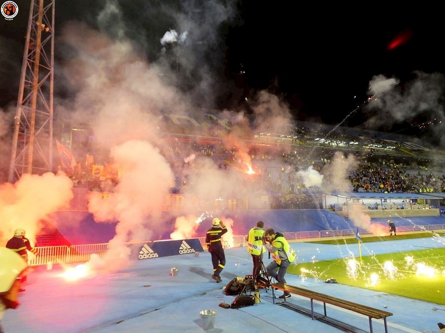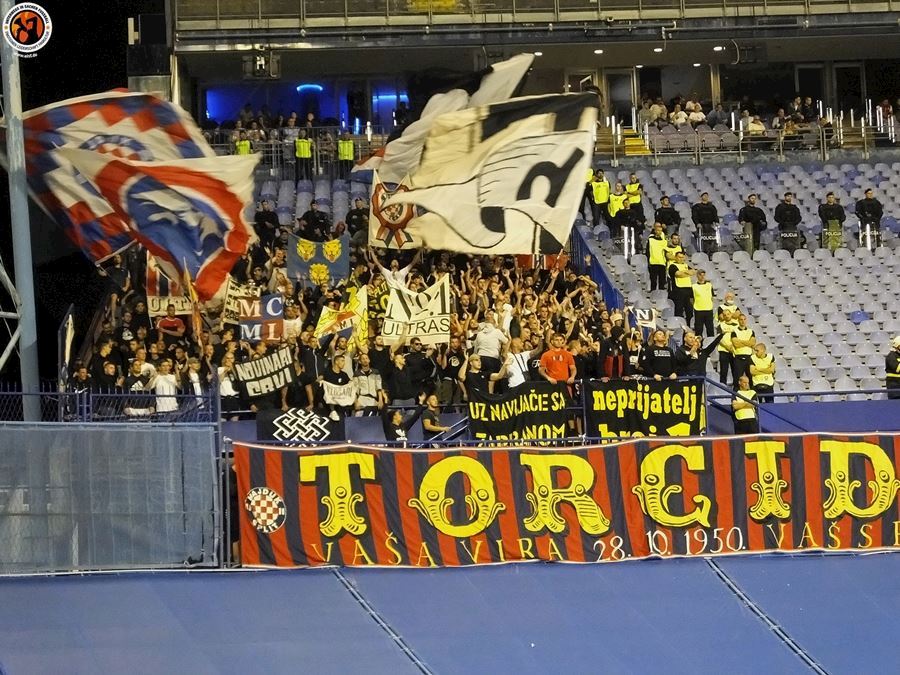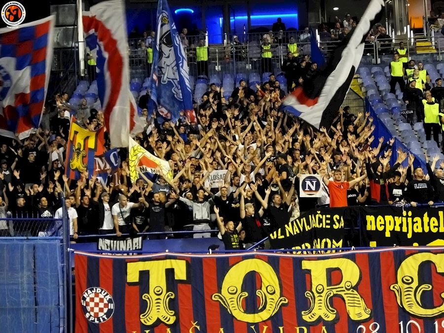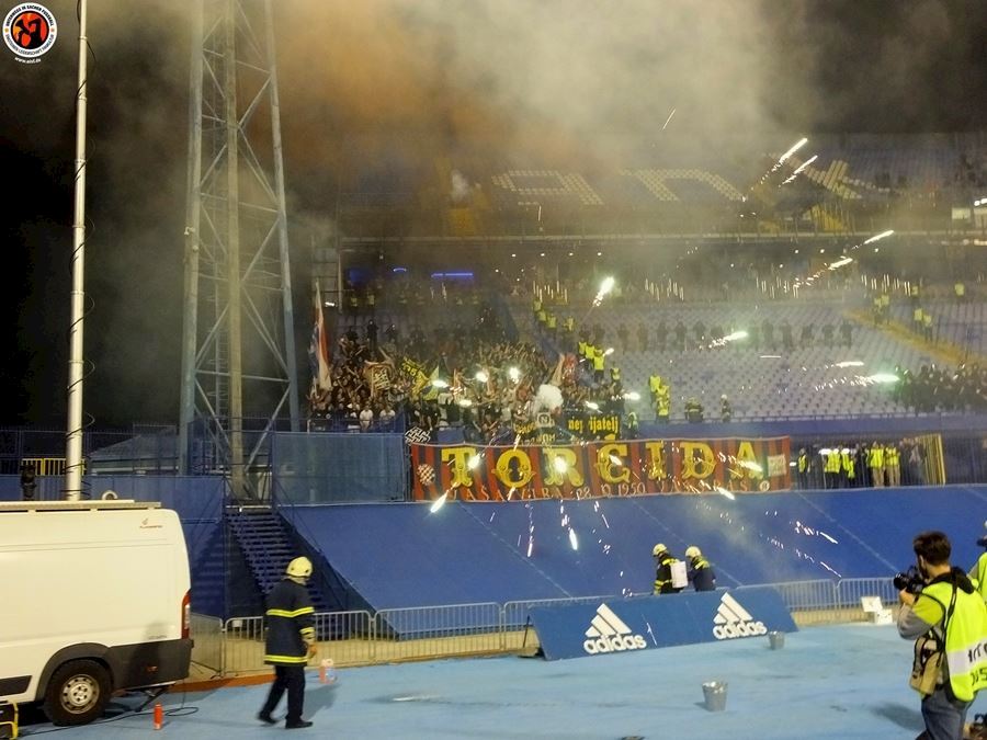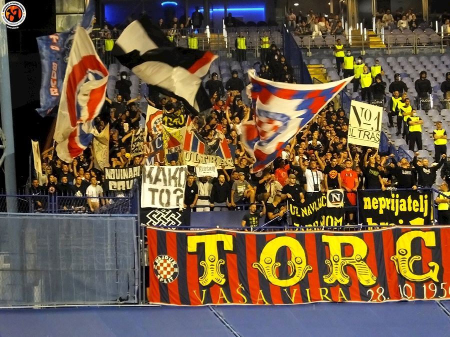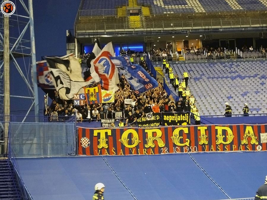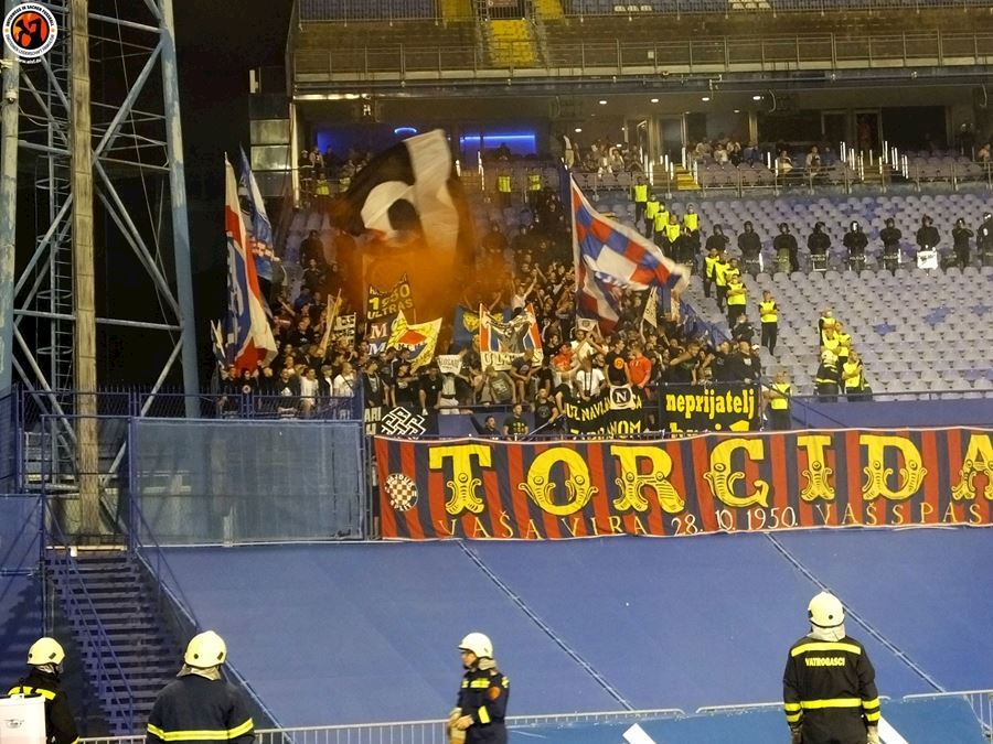Největší chorvatské derby mezi Dinamem Zagreb a Hajdukem Split sledovalo na stadionu 6000 diváků (omezené množství kvůli koronaviru a narušení tribun po březnovém zemětřesení). Utkání provázely protesty domácích fanoušků kvůli kontroverzní rodině Mamičů, která ovládá záhřebský klub. Domácí BBB po deseti minutách na protest odcházejí a házejí pyro směrem k hrací ploše. Pyro se objevuje rovněž v hostujícím sektoru, kde Torcida slaví výhru 3:2.