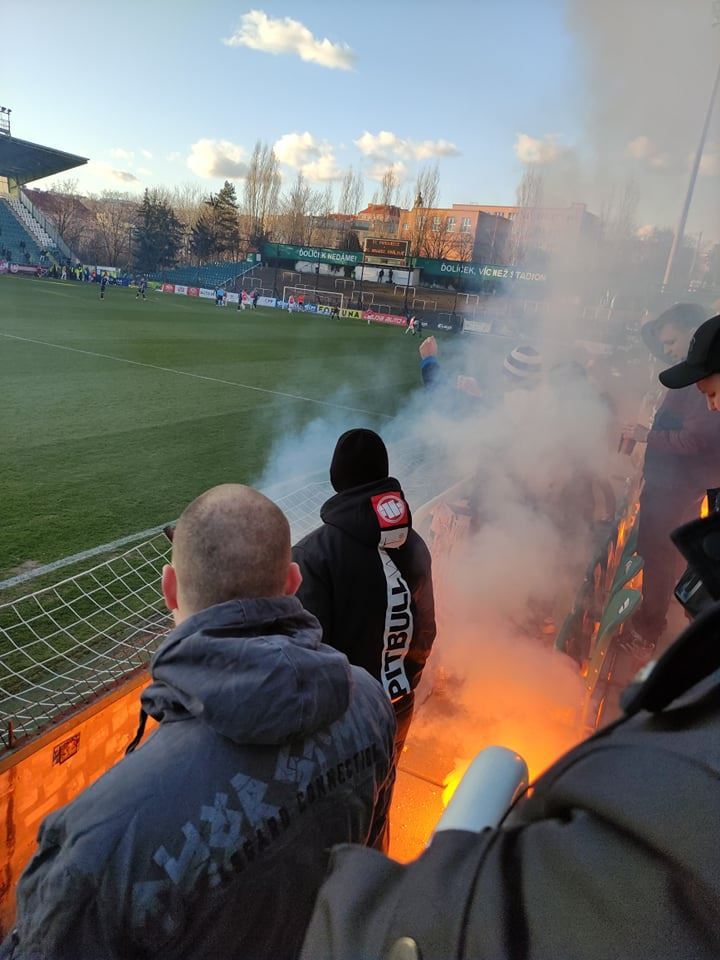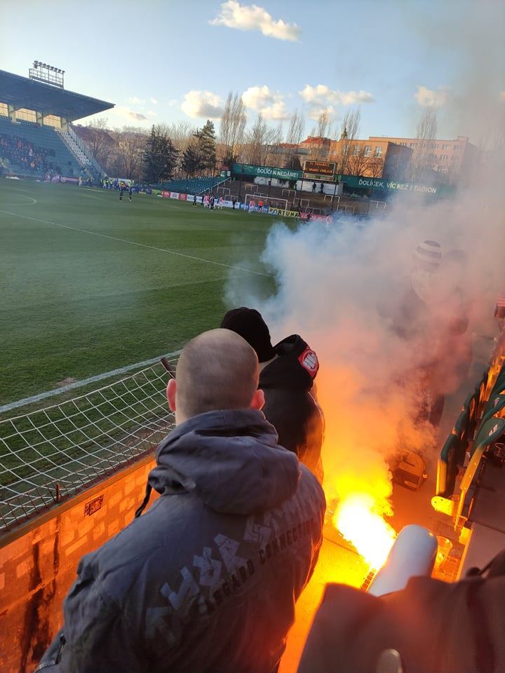 POHLED HRADECKÝCH ULTRAS: O derby mezi Hradcem a Pardubicemi v pražském Ďolíčku byl velký zájem, a tak byl sektor pro hosty s kapacitou 120 fans vyprodán tři dny před zápasem. Nakonec náš počet v sektoru dle informací z pokladen čítal 150 osob a dalších několik desítek Hradečáků bylo na hlavní tribuně v sektoru A1. Na utkání jsme vyrazili společně vlakem - VŠICHNI V ČERNÉM! Náš support nebyl takový, po kterém bychom se plácali po prsou, ale i výkon našich hráčů, kteří hráli více než hodinu proti deseti stál za hovno. Během zápasu odpalujeme pár kusů pyrotechniky, prezentaci nemáme žádnou, ale dost jsme se pobavili při prezentování plachty "domácích", jejíž vytažení bylo hodně teatrální.