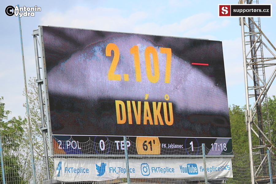 Fanoušci Jablonce si ve velmi slušném počtu přijeli do Teplic pro důležitou výhru. Utkání na teplických stínadlech sledovalo 2.107 diváků. Jablonce zvítězil 1:0.