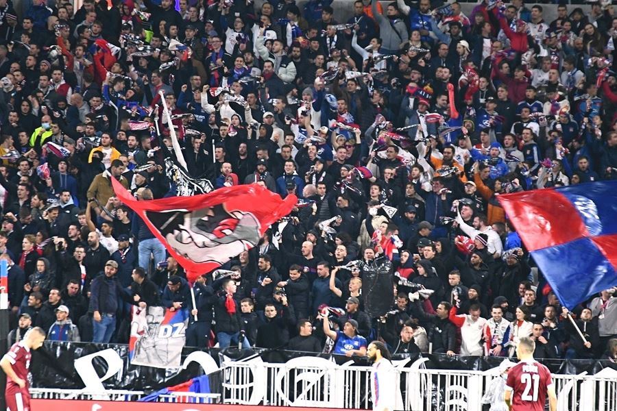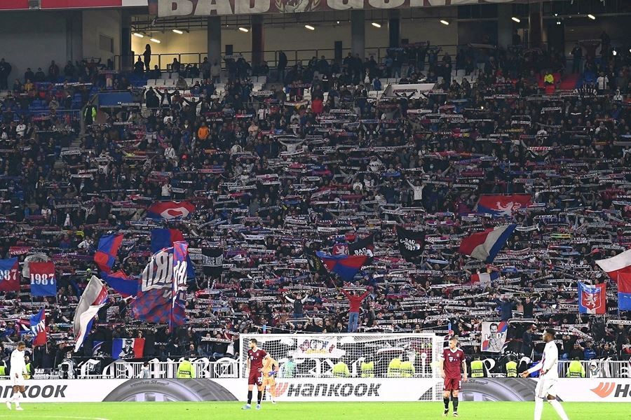 Fanoušci Sparty si okořenili výjezd do Francie pyrem, kterému nezabránil ani otravný čokl u vstupu, který skákal po některých fanoušcích jako pomatený! V průběhu první půle se pak na hrací ploše objevili nějací pruhovaí blázni...