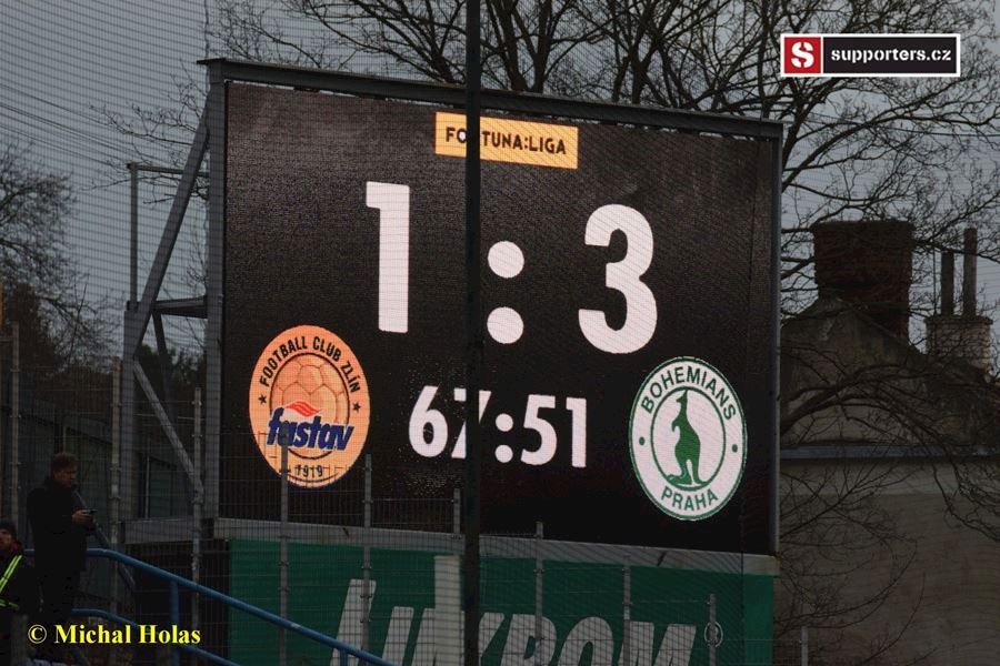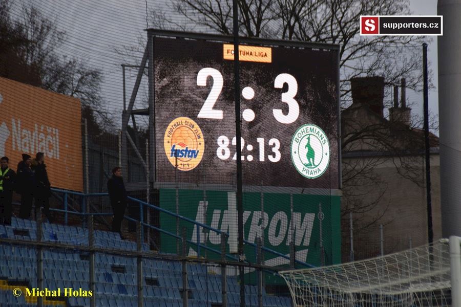 Utkání ve Zlíně sledovalo 2781 diváků včetně cca 60 fanoušků v sektoru hostí. Utkání skončilo vítězstvím 3:2 hostujíchc Bohemians Praha 1905...