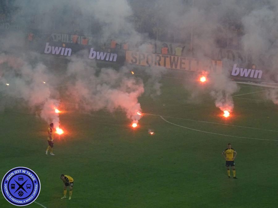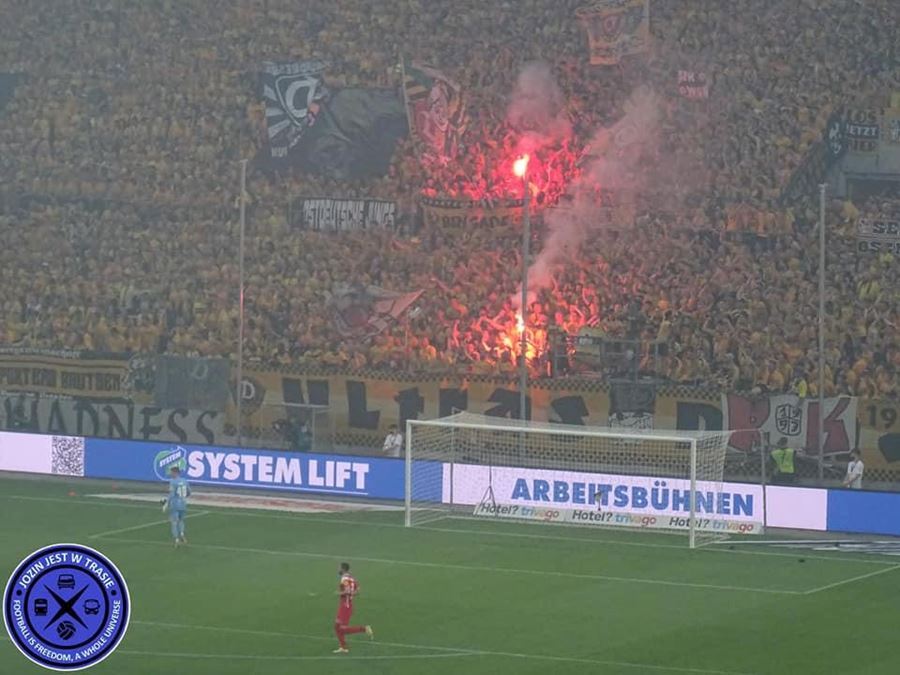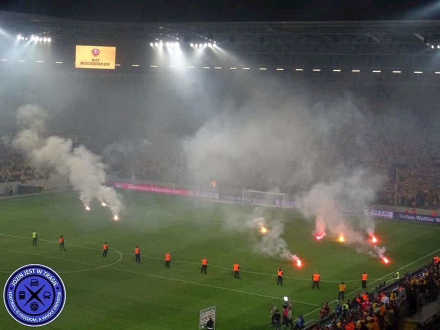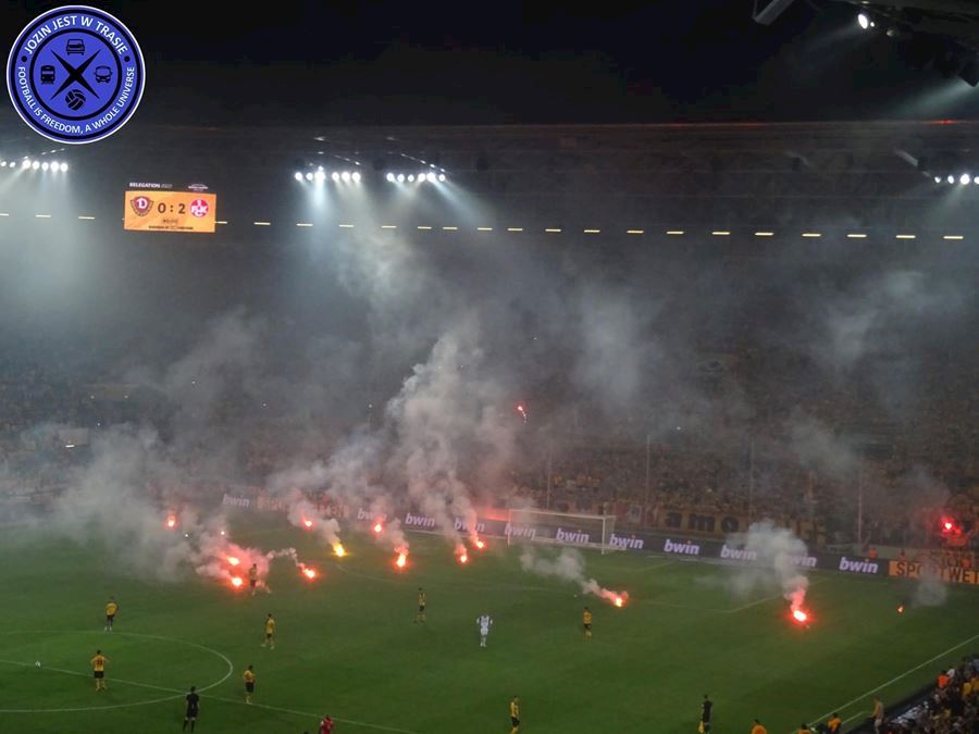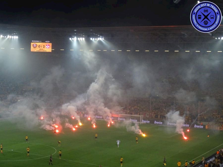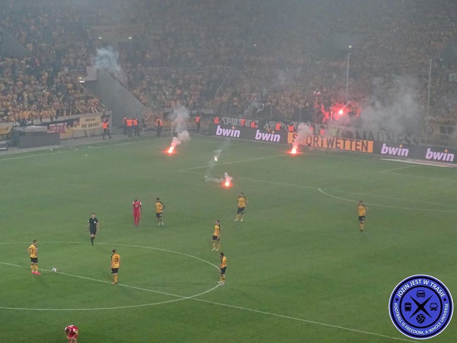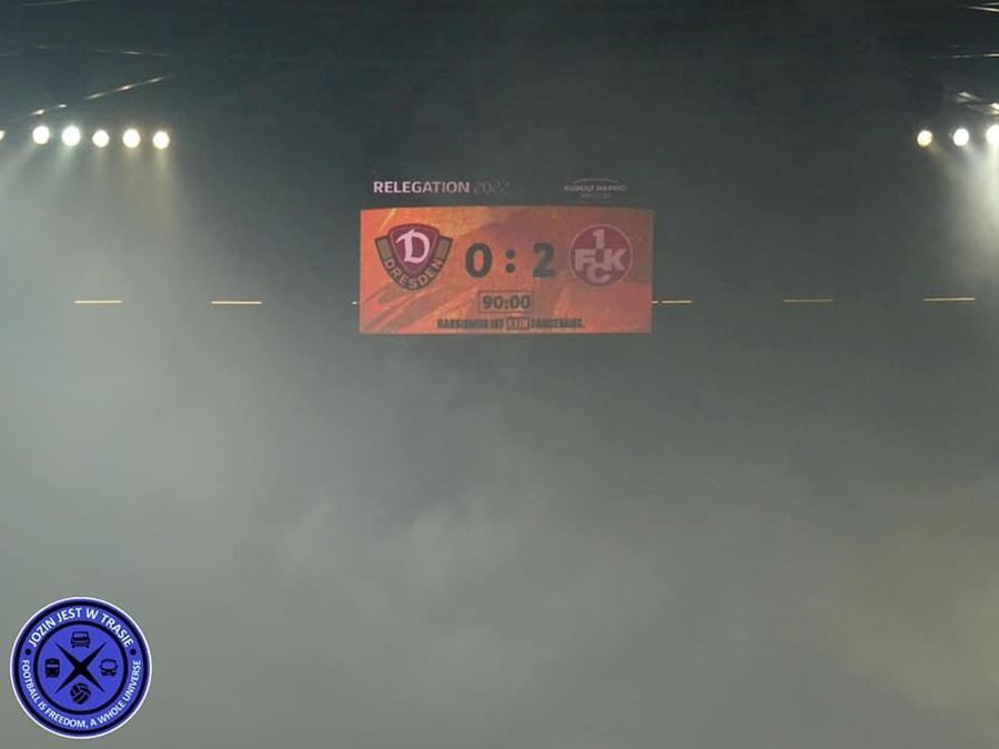 V prvním utkáni sice Dynamo remizovalo na půdě Kaiserslauternu, ale v odvetě před domácím publikem Drážďany prohrály 0:2 a sestoupily do třetí ligy. Naštvaní fanoušci Dynama zaházeli hrací plochu pyrotechnikou.
