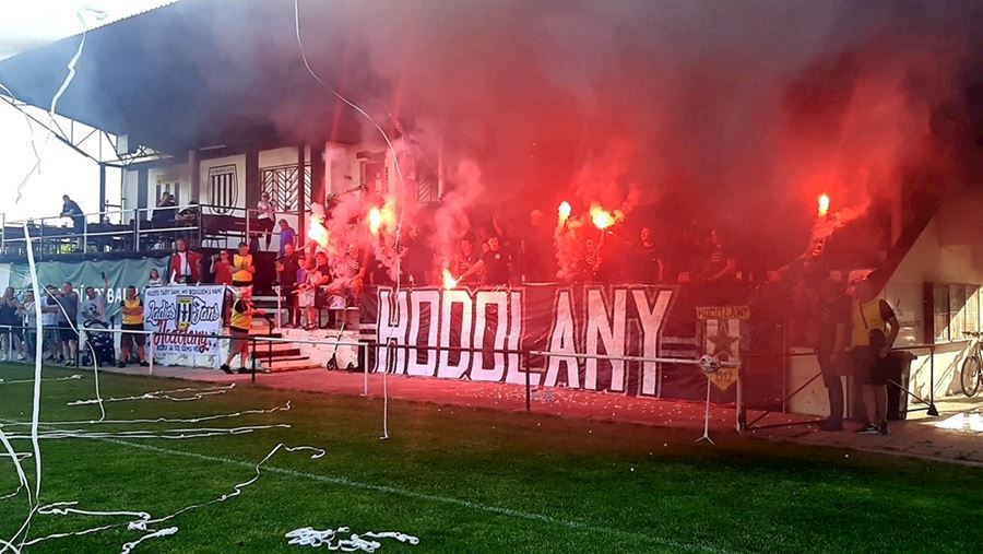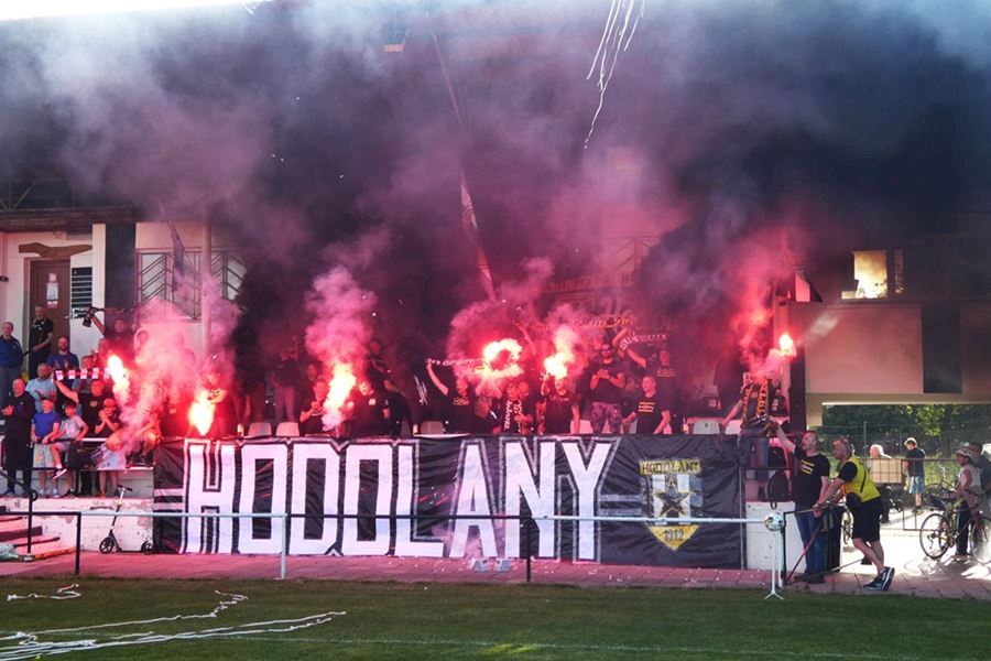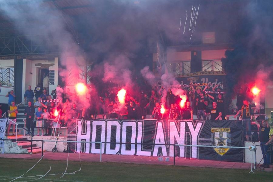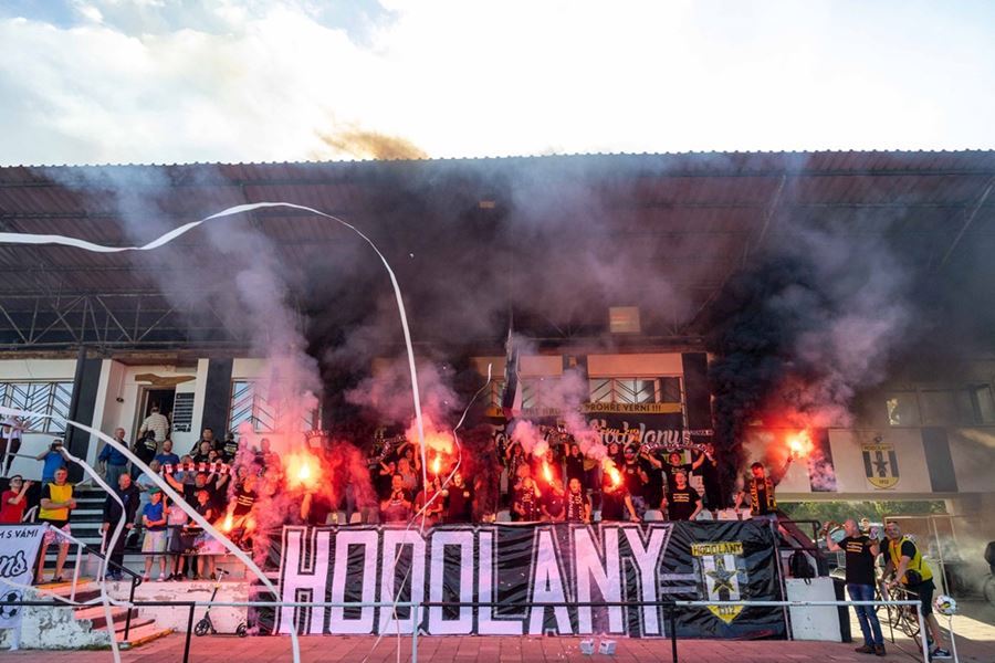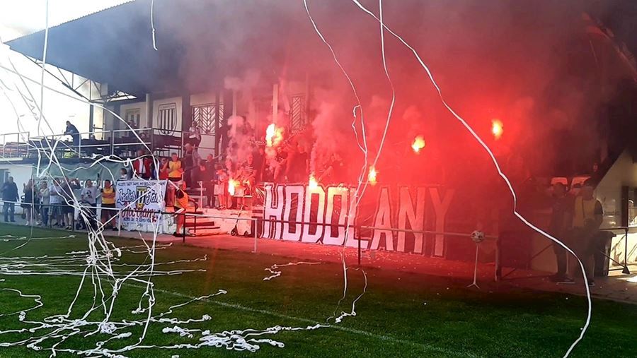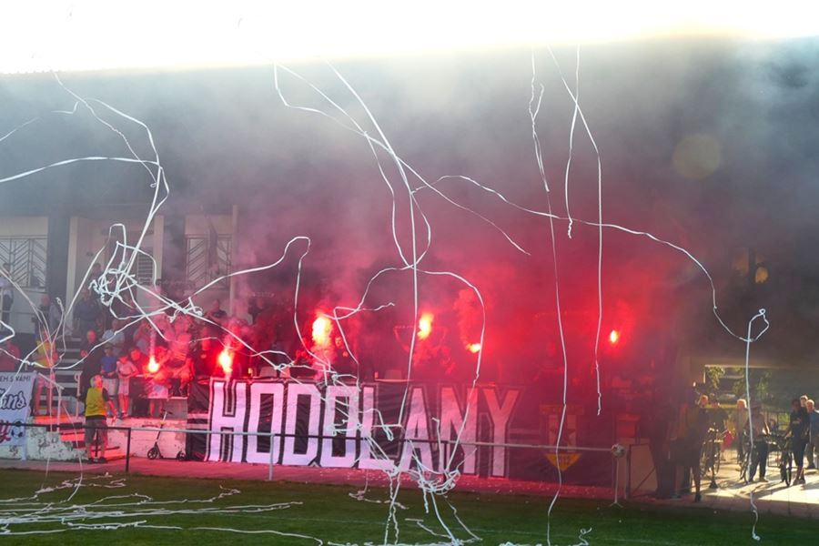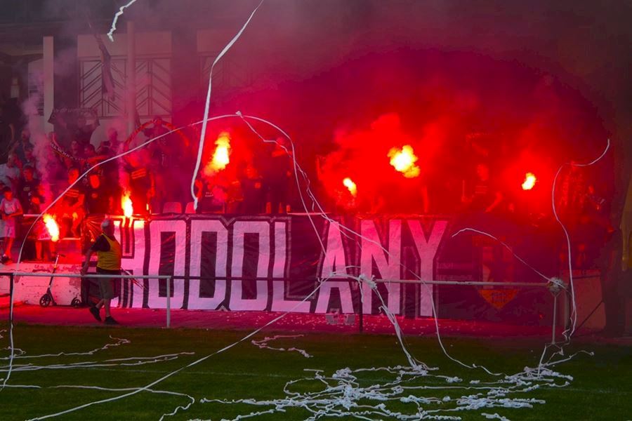 Hodolanští ultras si poslední utkání v sezóně se Slatinicemi užili s pípou v kotli. Nechyběly konfety a v závěru zápasu stadion provoněla pyrotechnika...