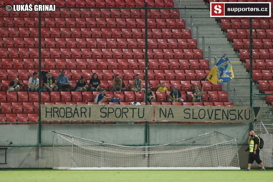 Na Slovensku je liga v plném proudu a Trnava ve 3. kole hostila Pohronie. Utkání sledovalo 3.854 diváků, kteří viděli remízu 1:1. Oba tábory se připojují k iniciativě HrobáriŠportuNaSlovensku a vytahují společný nápis...