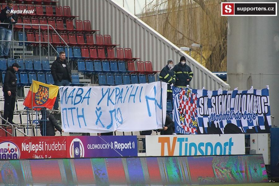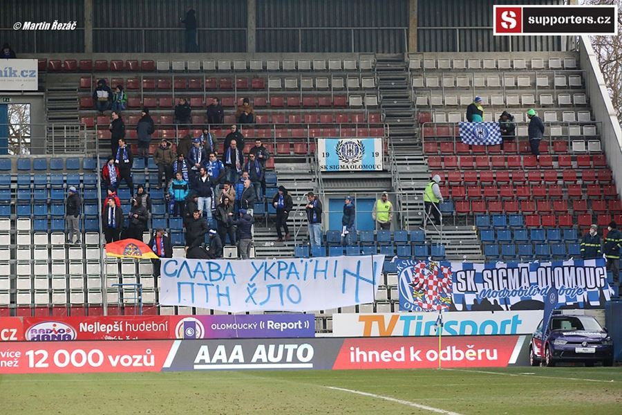 Branky se v Olomouci fanoušci nedočkali a 2.419 diváků vidělo remízu 0:0. Hráči a fanoušci se však postavili za Ukrajinu. Nechyběl nápis ani vlajky...
