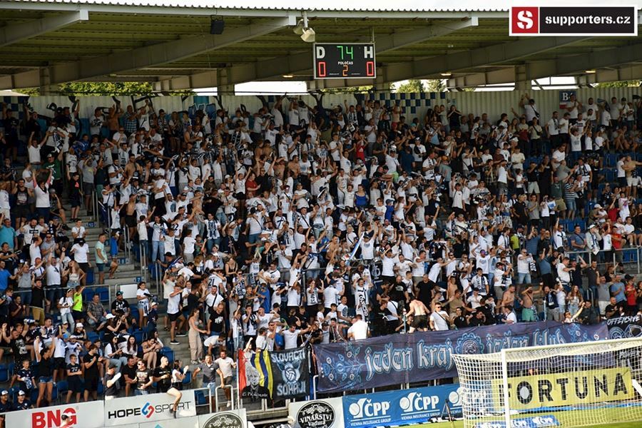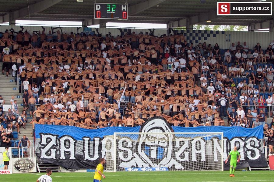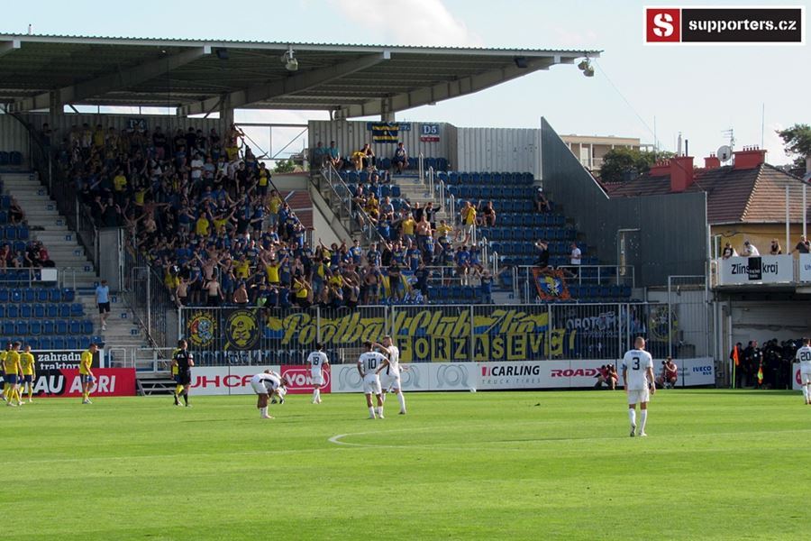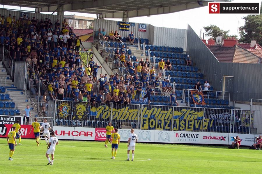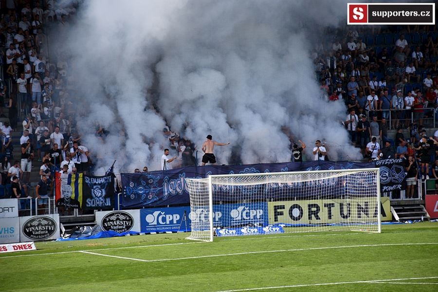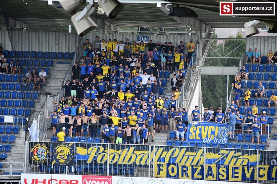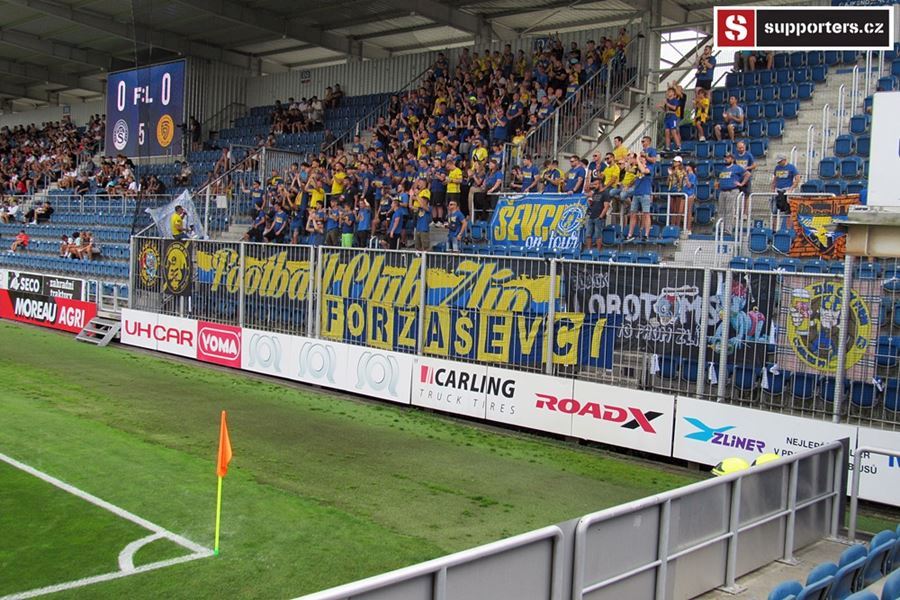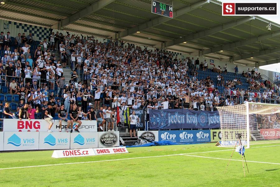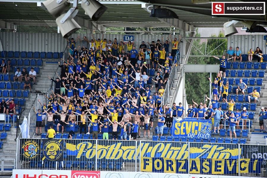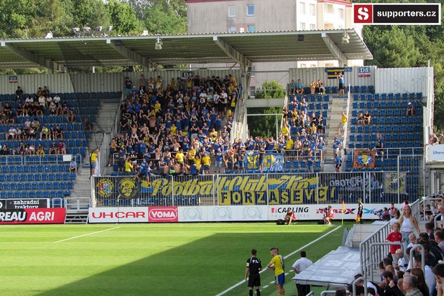 Krajské derby mezi Slováckem a Zlínem nabídlo hlasitou podporu obou táborů. V domácím sektoru nechybělo choreo a pyro. Hosté se tentokrát prezentovat nemohli. O to víc však byli slyšet.