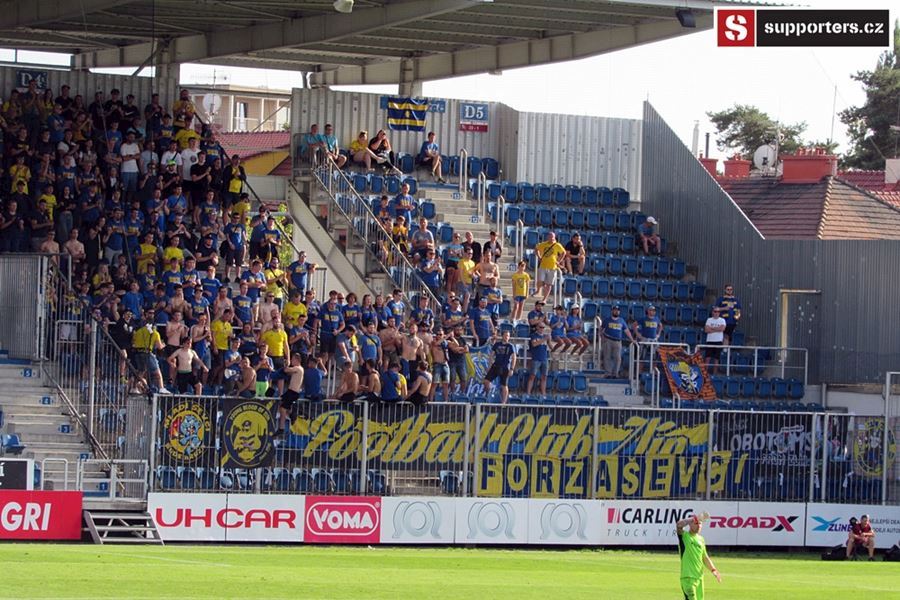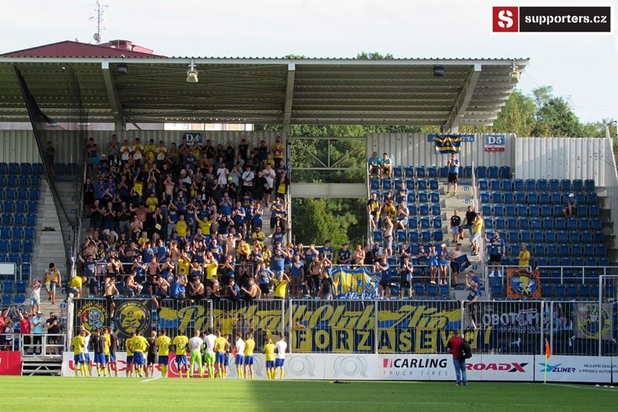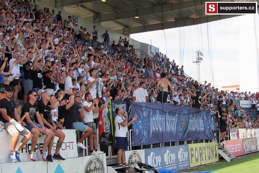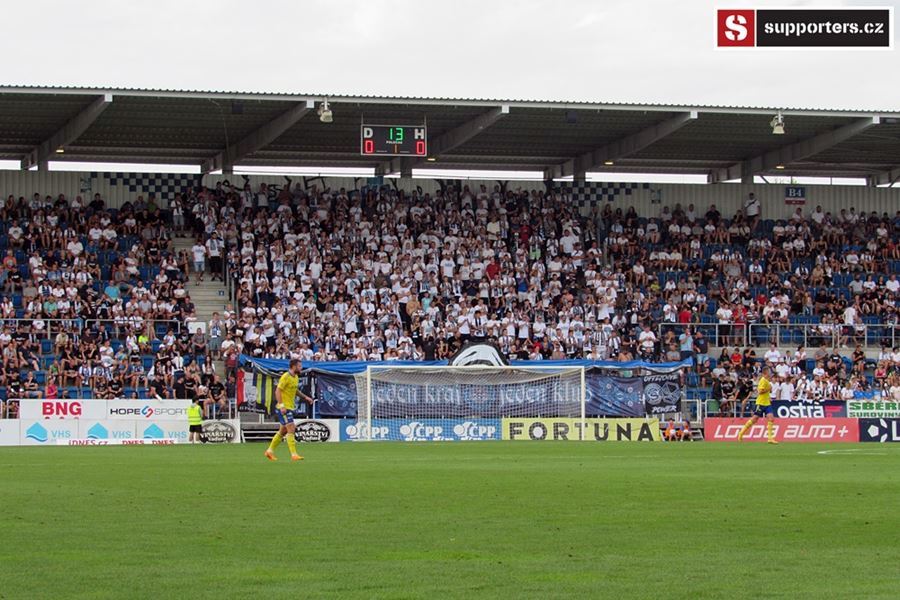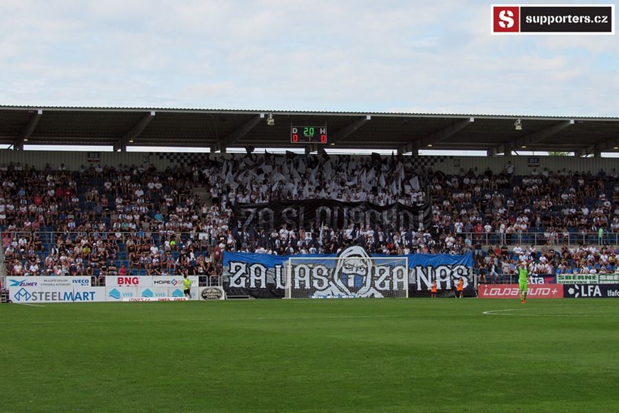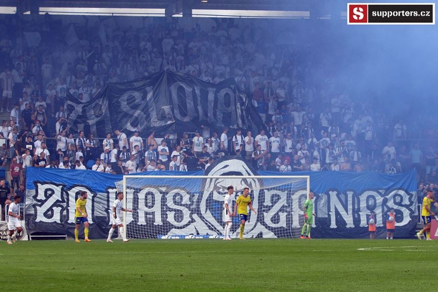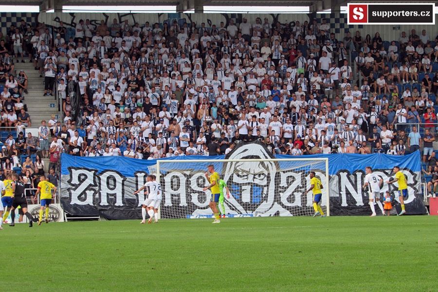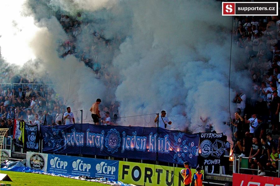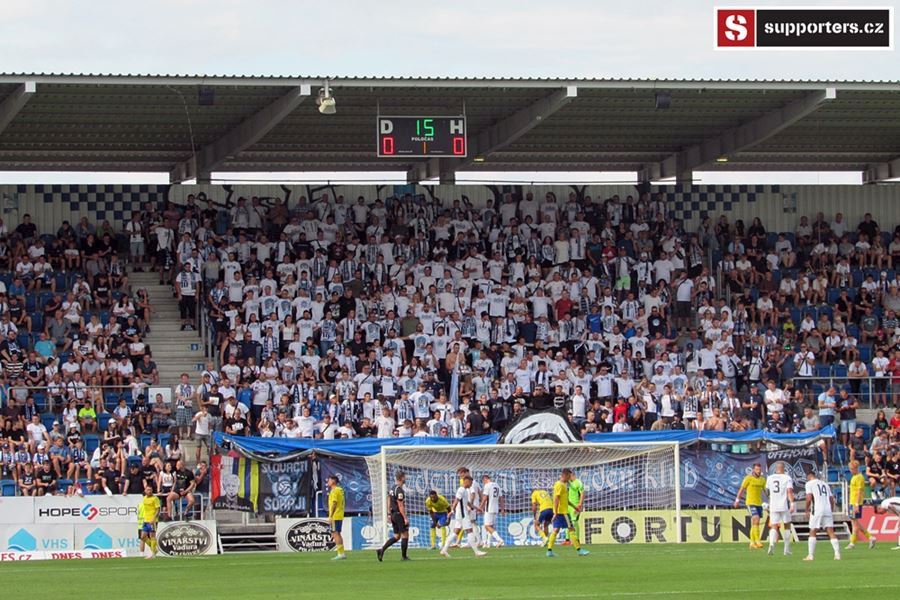 Krajské derby mezi Slováckem a Zlínem nabídlo hlasitou podporu obou táborů. V domácím sektoru nechybělo choreo a pyro. Hosté se tentokrát prezentovat nemohli. O to víc však byli slyšet.