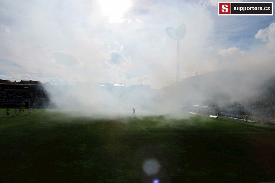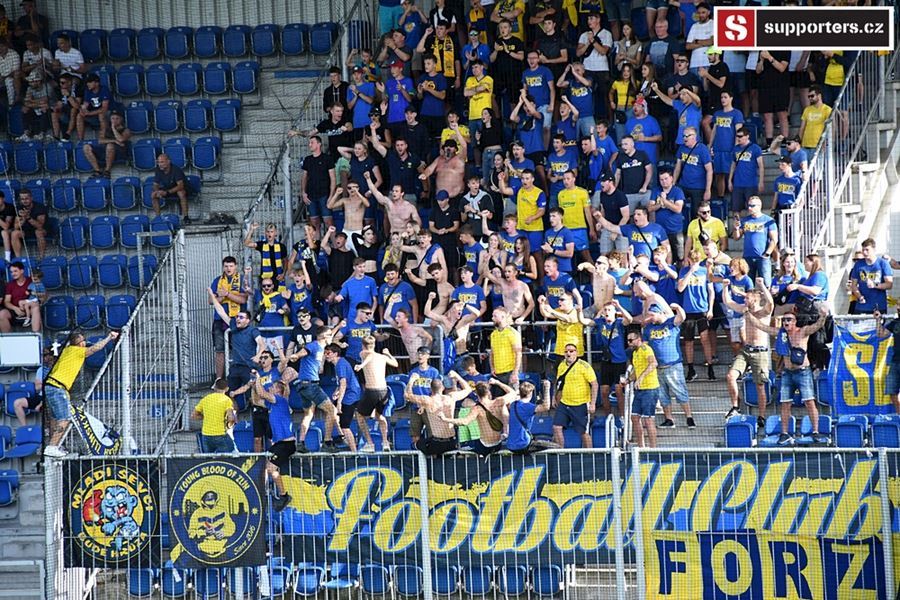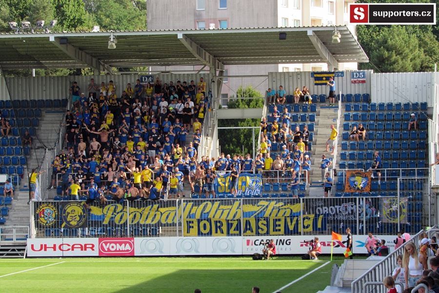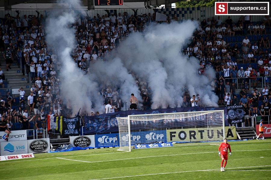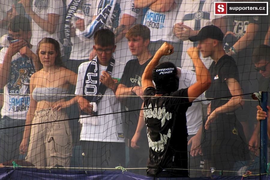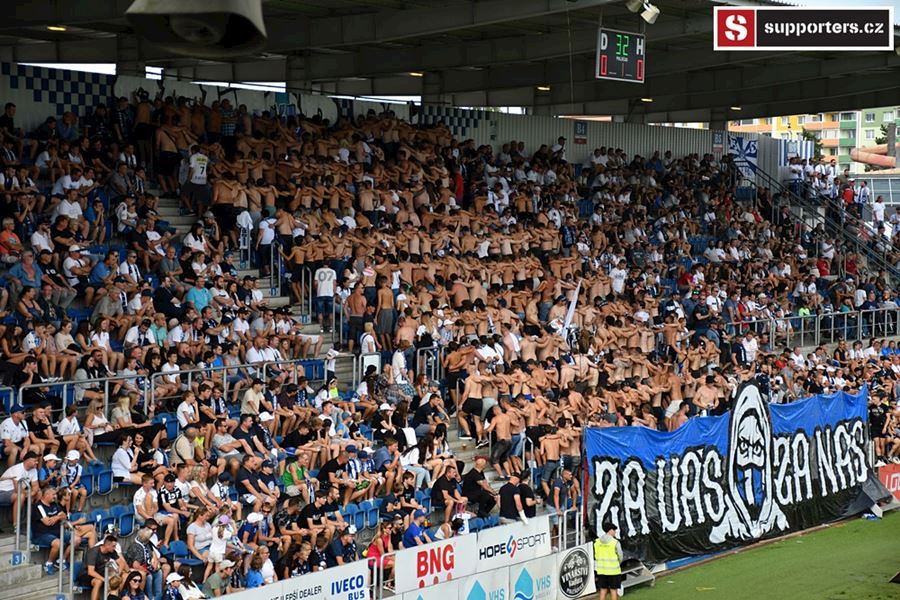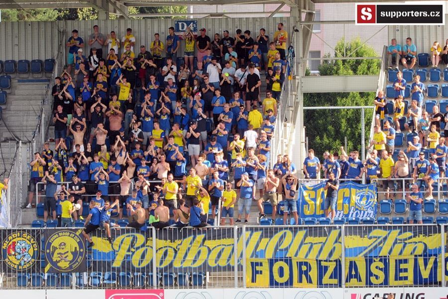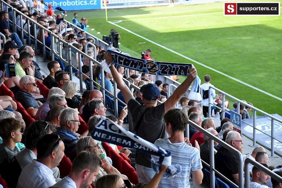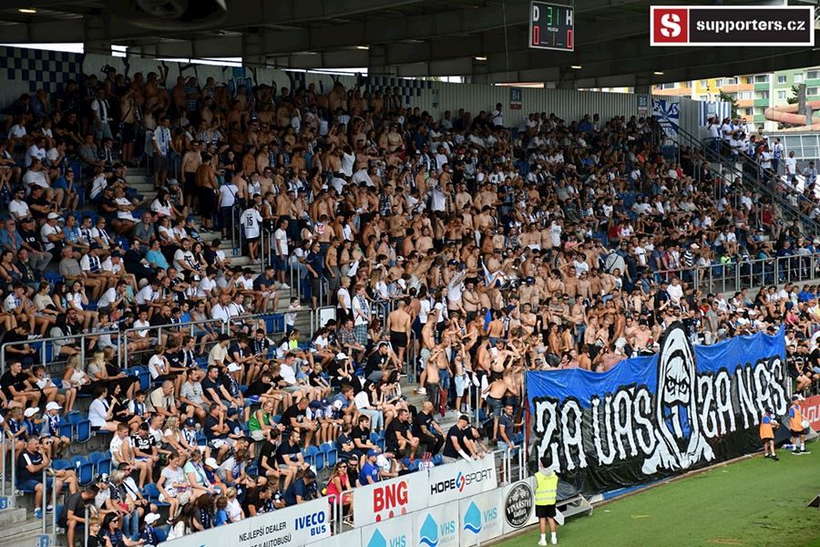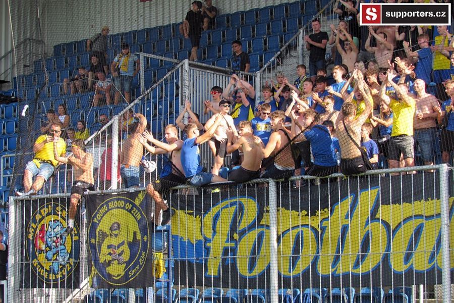 Krajské derby mezi Slováckem a Zlínem nabídlo hlasitou podporu obou táborů. V domácím sektoru nechybělo choreo a pyro. Hosté se tentokrát prezentovat nemohli. O to víc však byli slyšet.