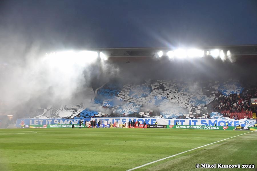 Let it Snow? No, let it smoke! Sněhu se Eden nedočkal, ale fanoušci v mrazu pěkně zadýmili. Horko bylo některým i v sektoru hostí... Kanonádu 5:1 sledovalo 13.742 diváků.