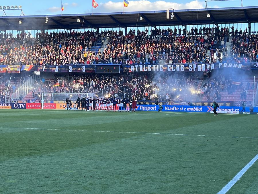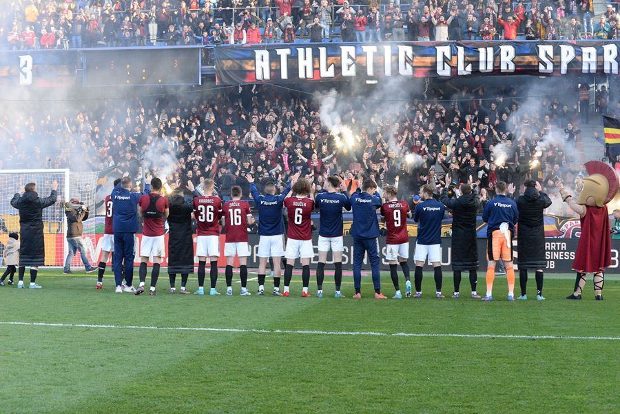 Bitvu dvou sousedů v tabulce sledovalo v předposledním ligovém okle na pražské Letné 14.235 diváků včetně stovky fanoušků Slovácka v sektoru hostí. Na Letné byla k vidění návštěva kola, choreografie pro Hložka a vítězná děkovačka Sparty okořeněná stroboskopy....