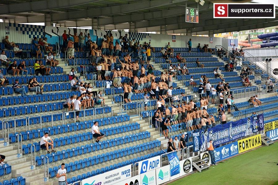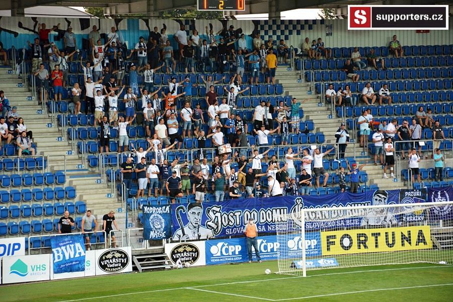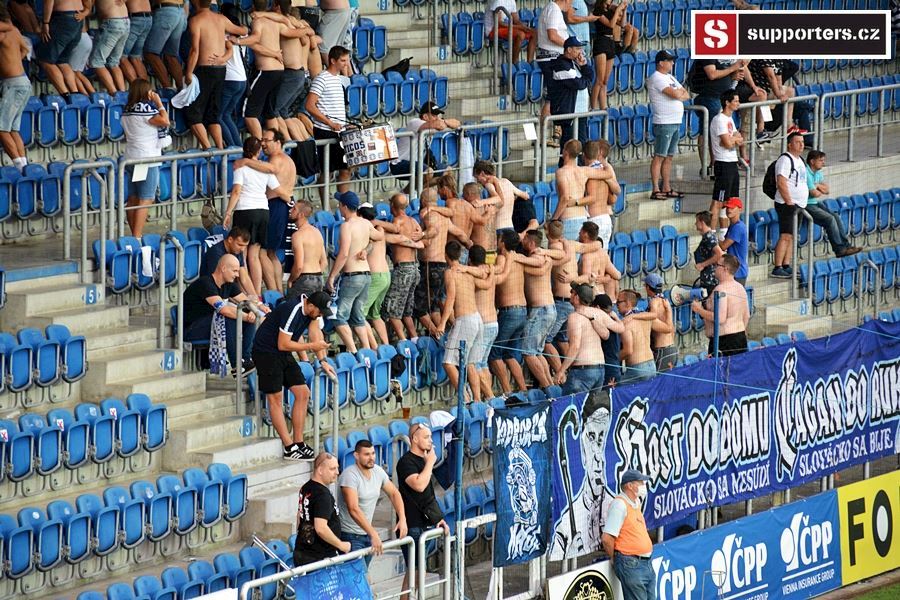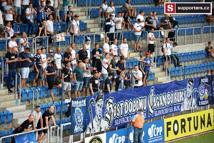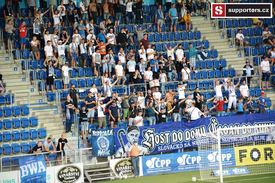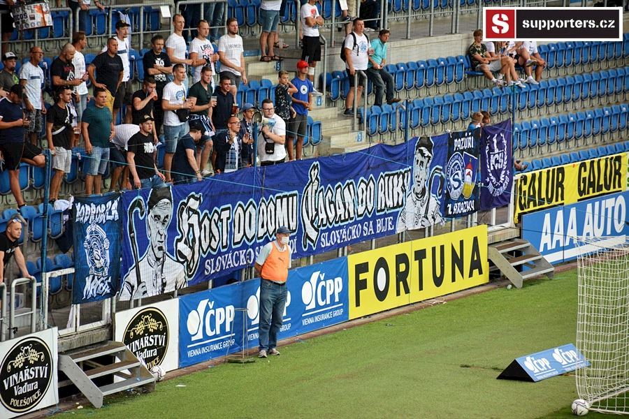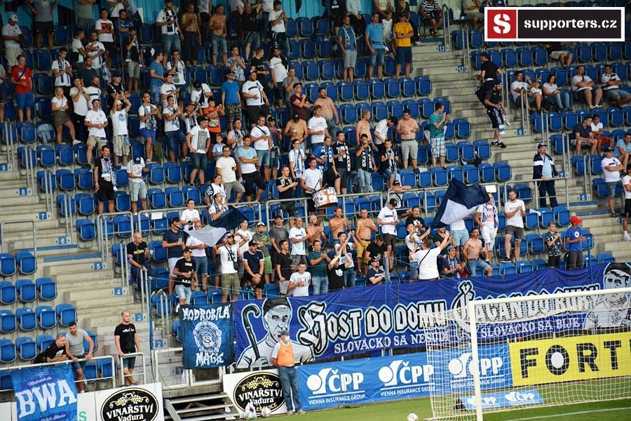 Přesně 2000 diváků sledovalo sobotní utkání mezi Slováckem a Jabloncem. Vstupenky na utkání se neprodávali a na stadion se dostali pouze držitelé permanentek tak i v sektoru hostí byli domácí příznivci aby bylo zachováno nesmyslné rozprostření fanoušků po celém stadionu...