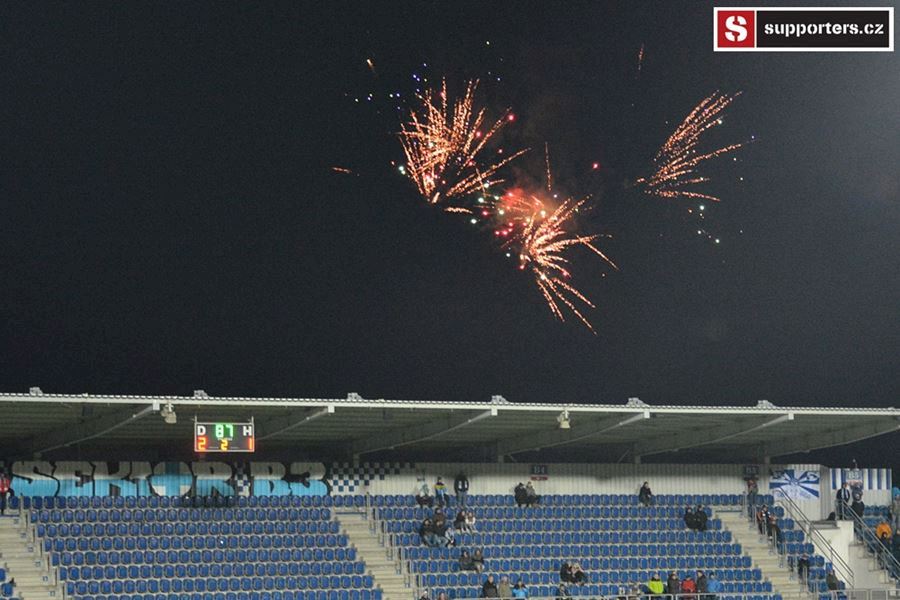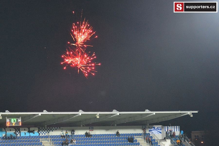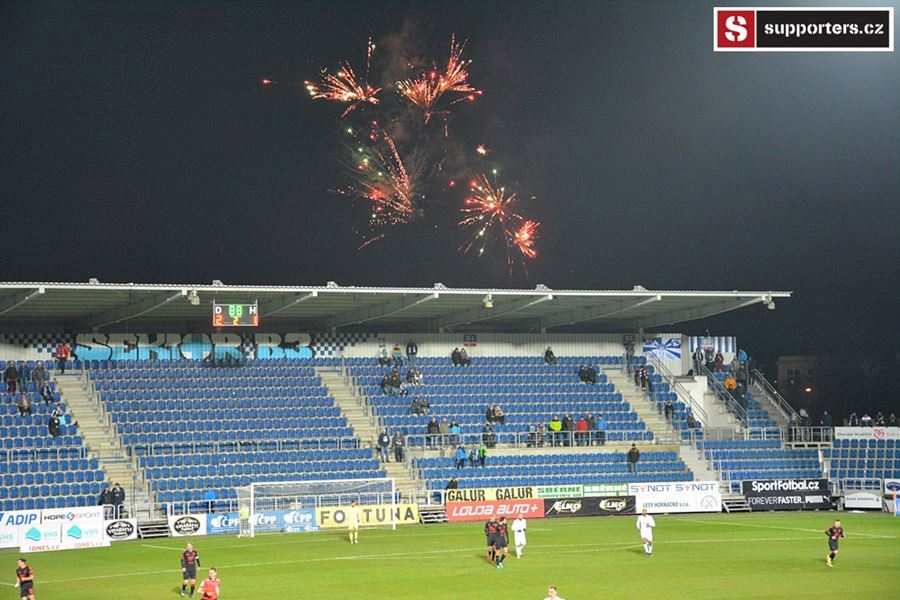 Na Slovácku se fandilo jak před stadionem, tak i na něm. Nechyběli otužilci z Jablonce, pyro ani ohňostroj. Z výhry 2:1 se nakonec radovali domácí příznivci.