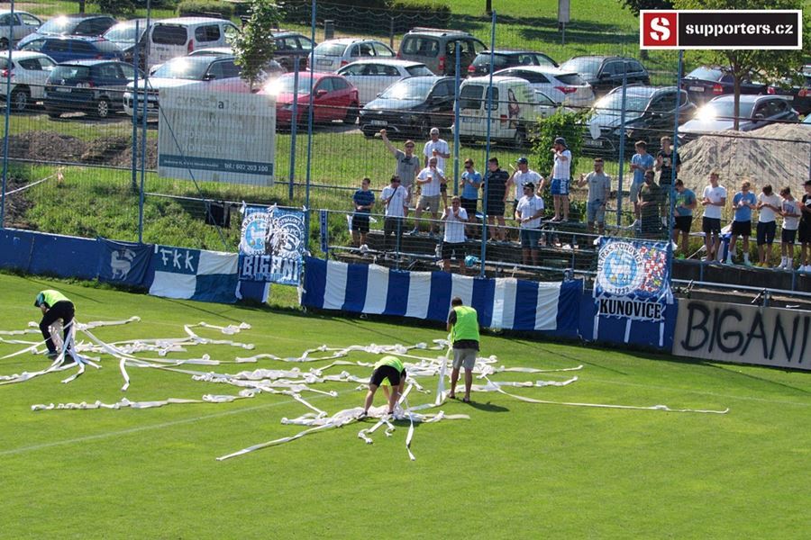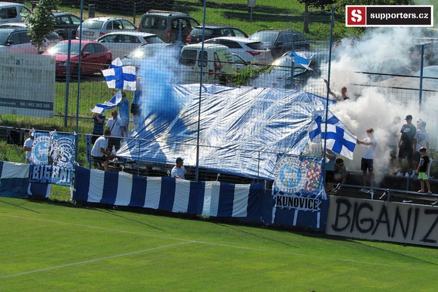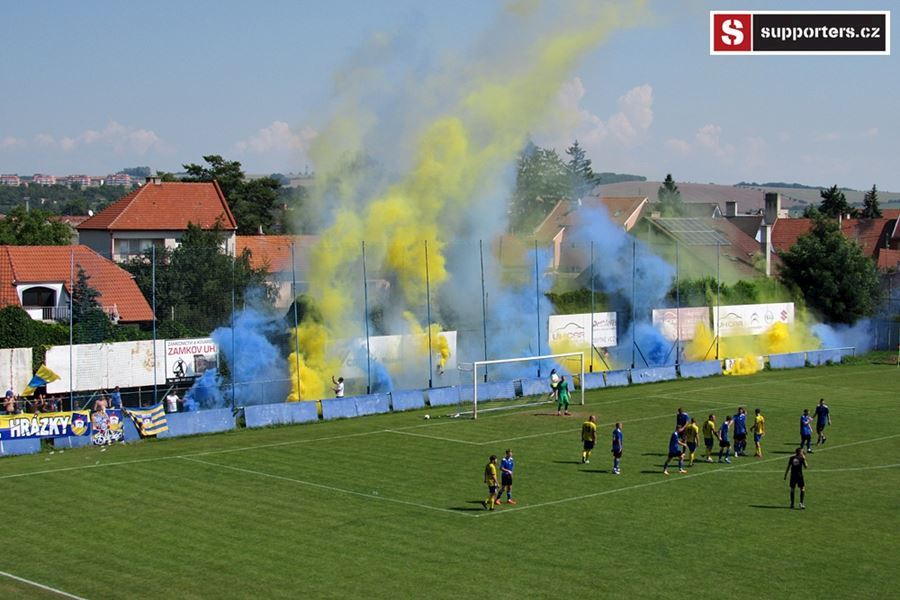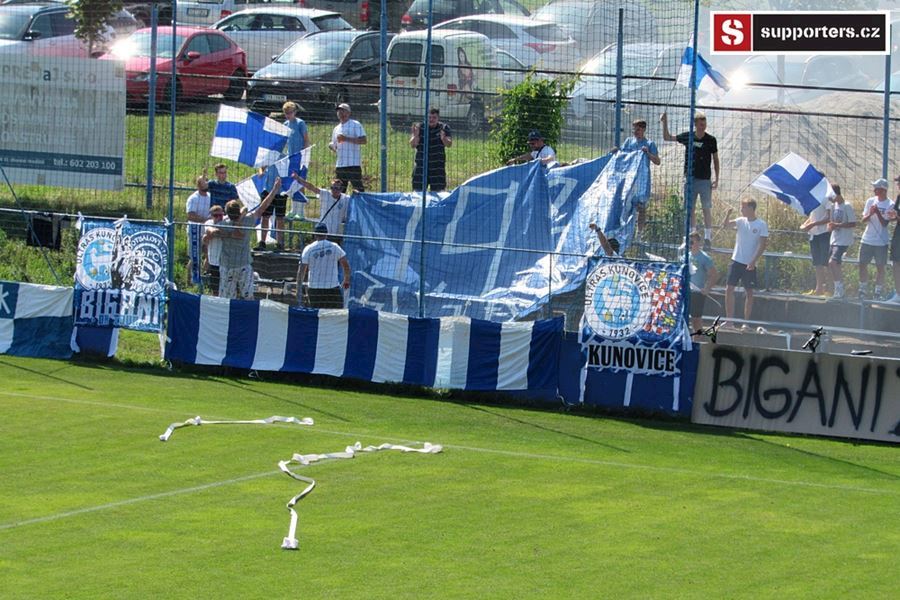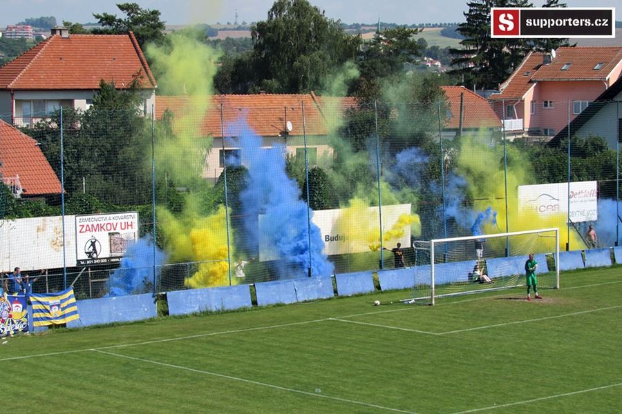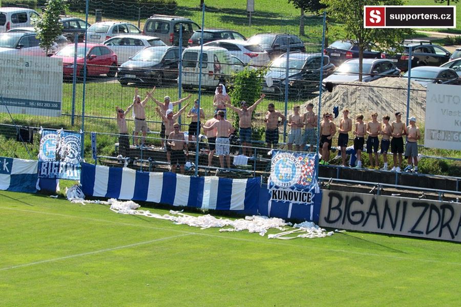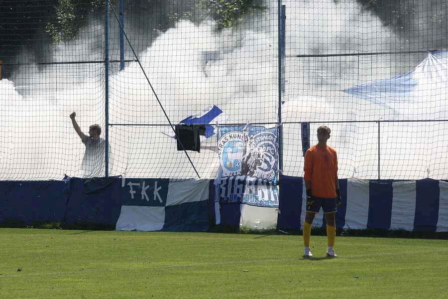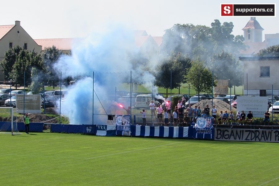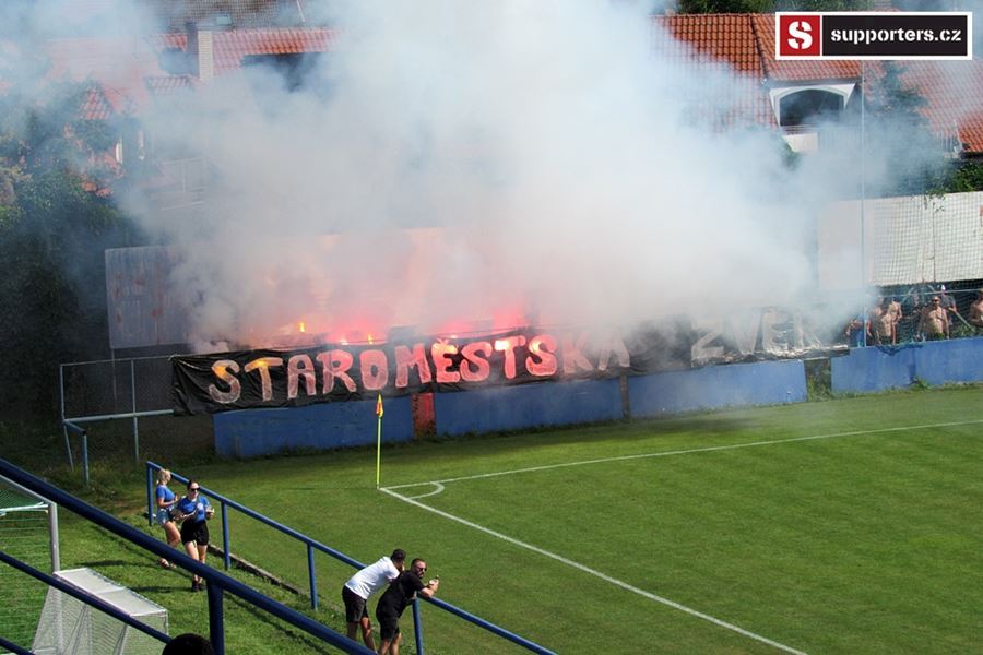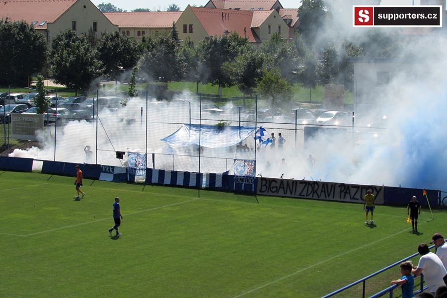 Není policie, nejsou problémy! Paráda! Derby v 1.A třídě nabídlo fanatizmus, mraky pyra a fanoušek slavil rozhodující gól vběhnutím na hřiště se světlicí v ruce. Prostě všichni se bavili. Kunovice vyhrály nad Starým Městem 2:1 a utkání sledovalo 505 diváků.