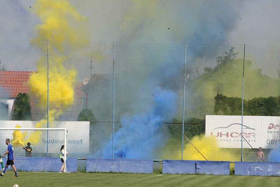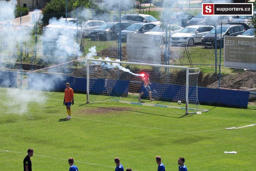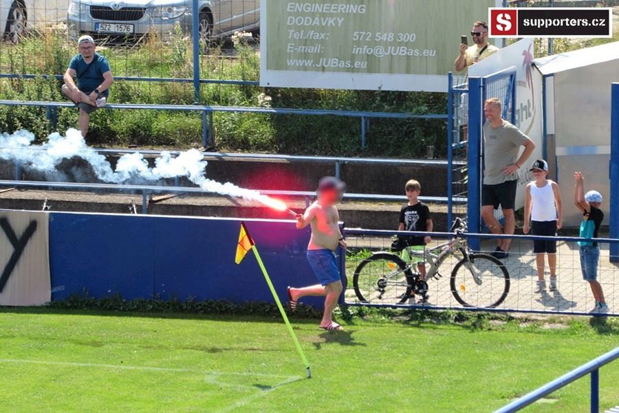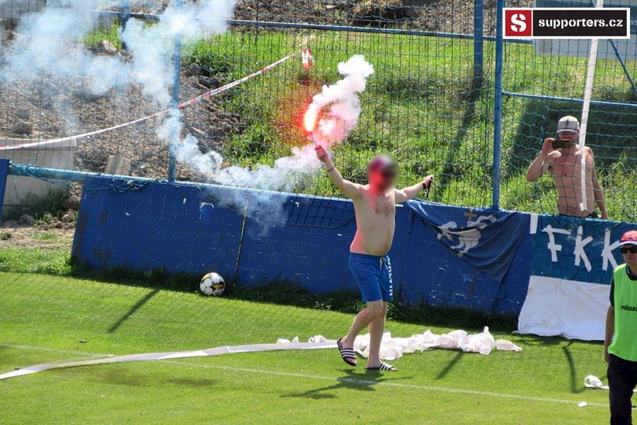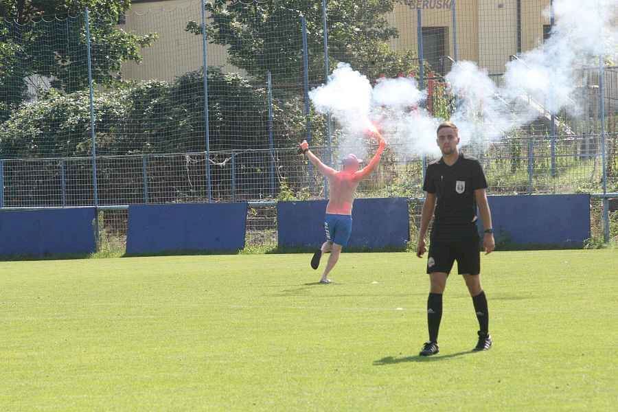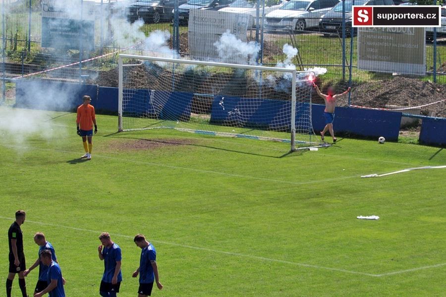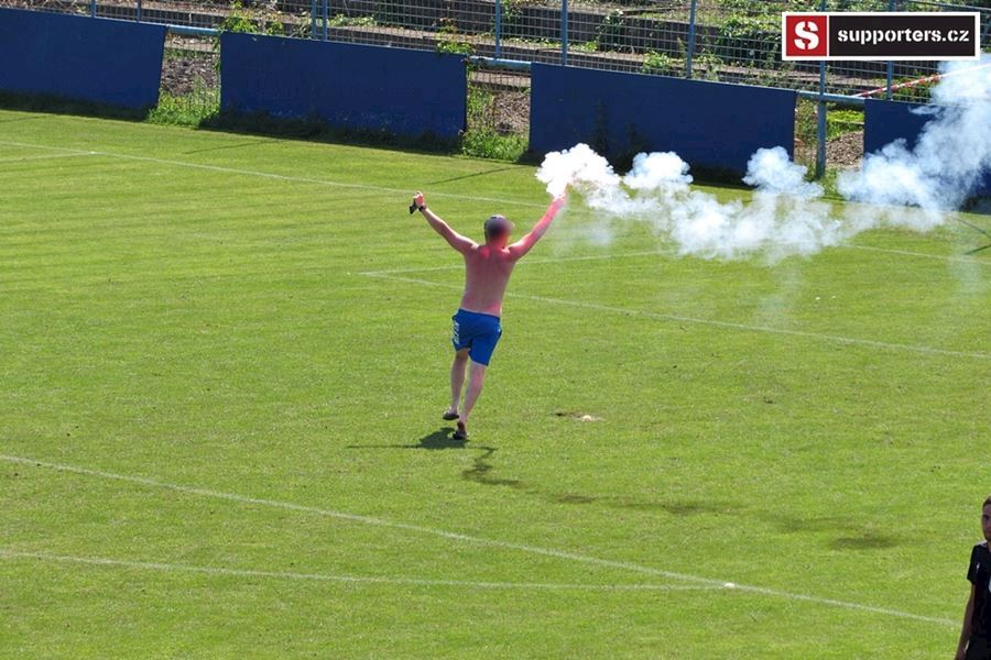Není policie, nejsou problémy! Paráda! Derby v 1.A třídě nabídlo fanatizmus, mraky pyra a fanoušek slavil rozhodující gól vběhnutím na hřiště se světlicí v ruce. Všichni se bavili...