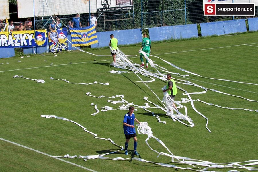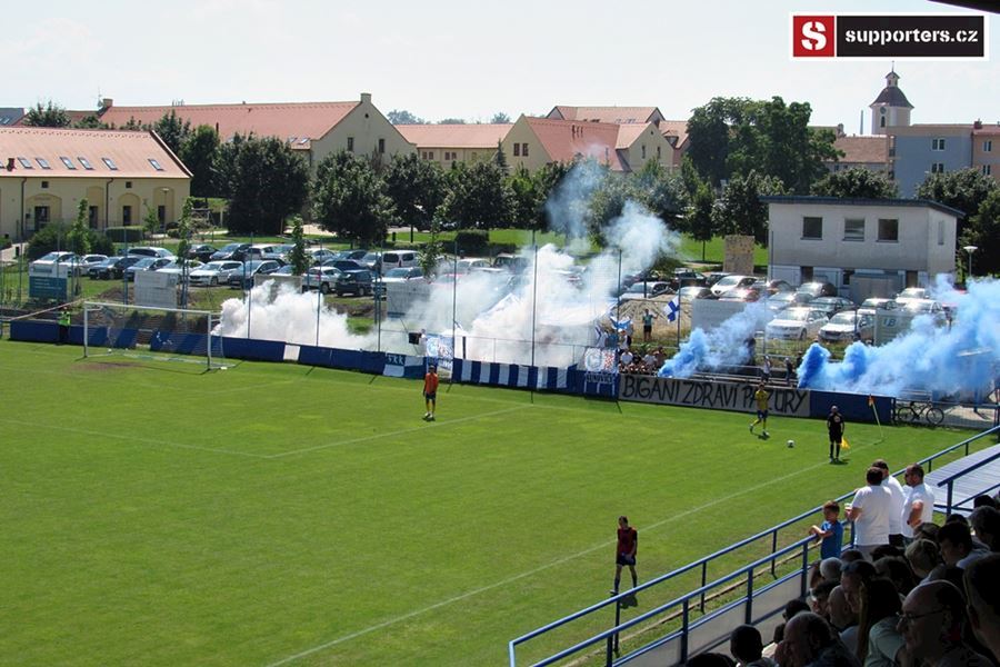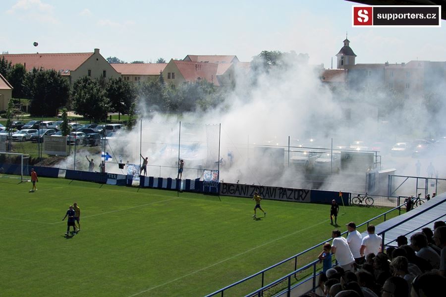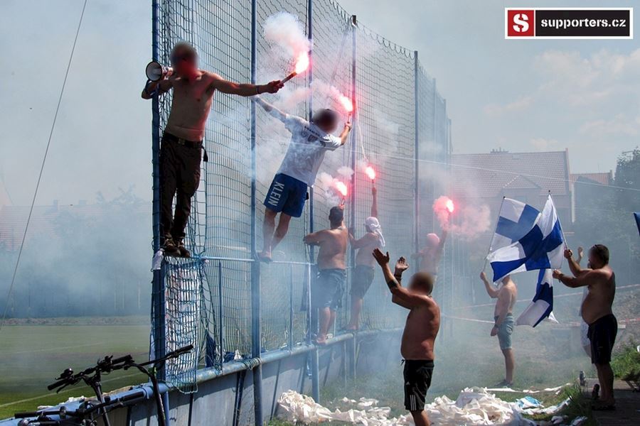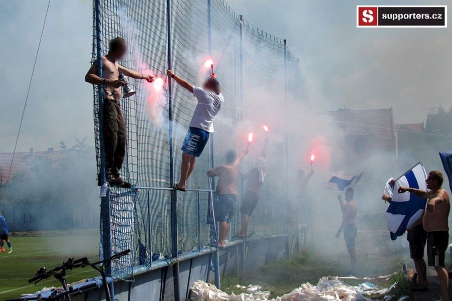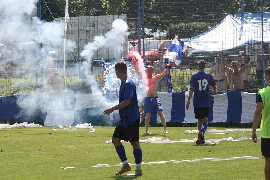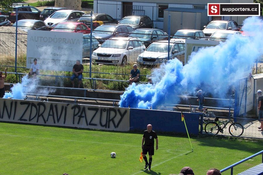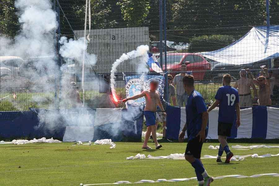 Není policie, nejsou problémy! Paráda! Derby v 1.A třídě nabídlo fanatizmus, mraky pyra a fanoušek slavil rozhodující gól vběhnutím na hřiště se světlicí v ruce. Všichni se bavili...