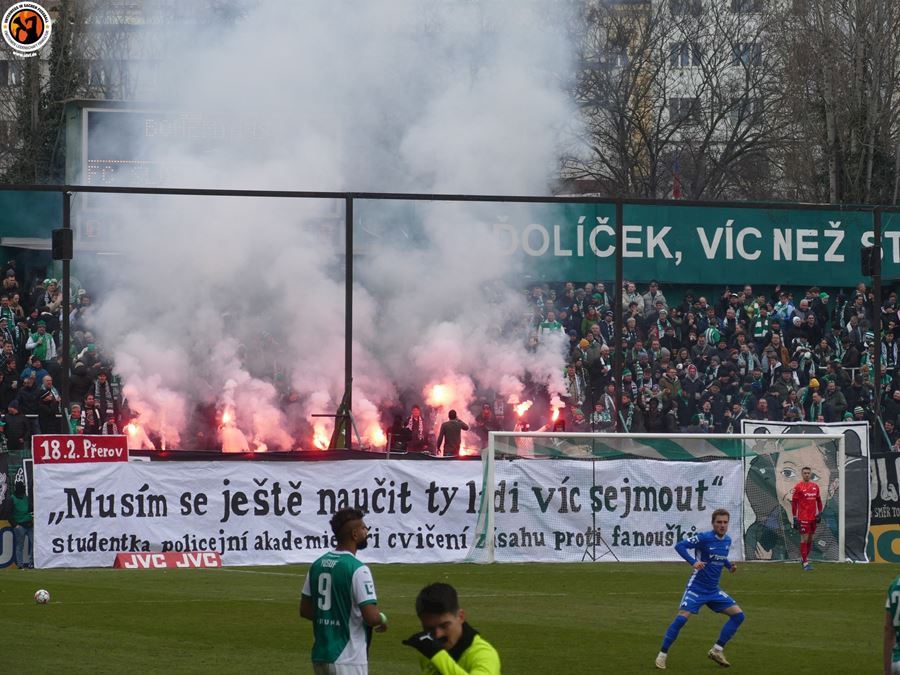 Nový sektor pro malé fanatiky, podpora pro onkologicky nemocného Hybše, ale i zveřejněné ambice studentky policejní akademie - Musím se ještě naučit ty lidi více sejmout, což zaznělo při cvičení zásahu proti fanouškům. Bezbrankovou remízu sledovalo 5.321 diváků.