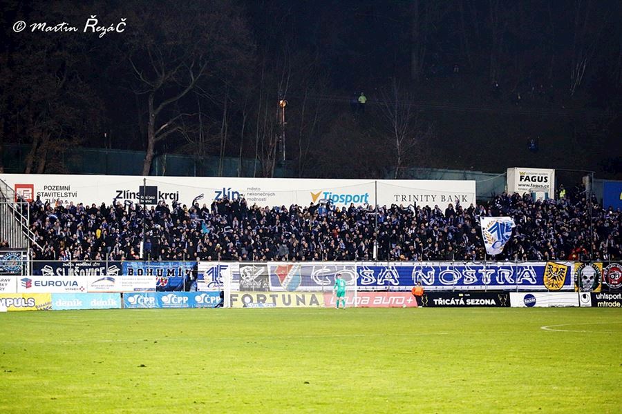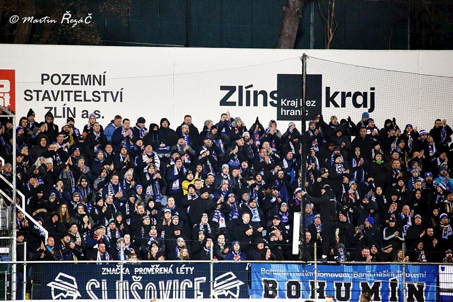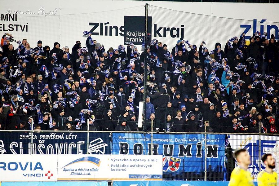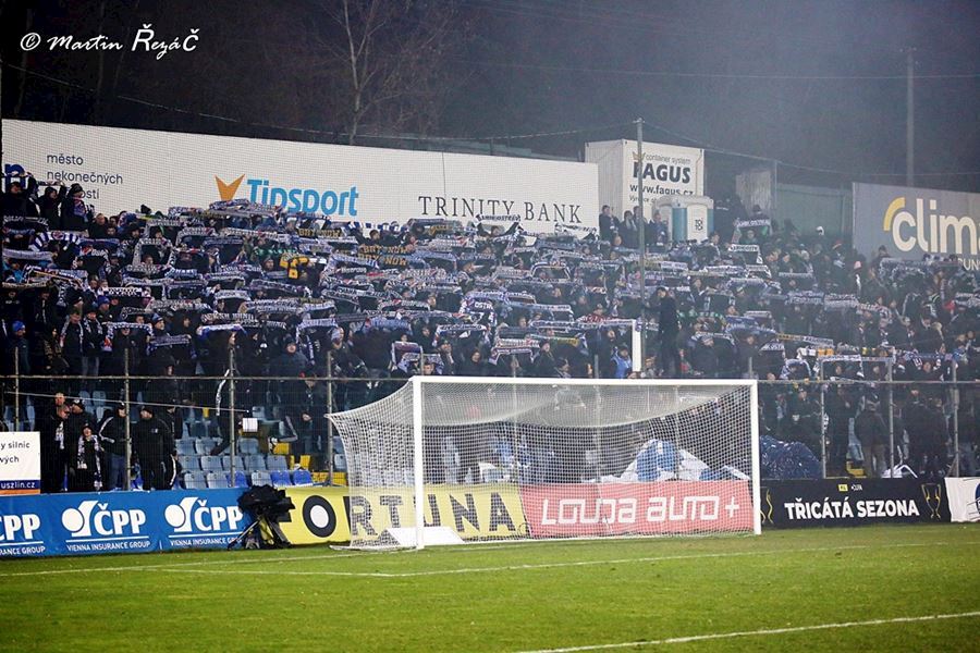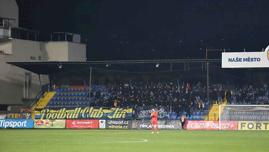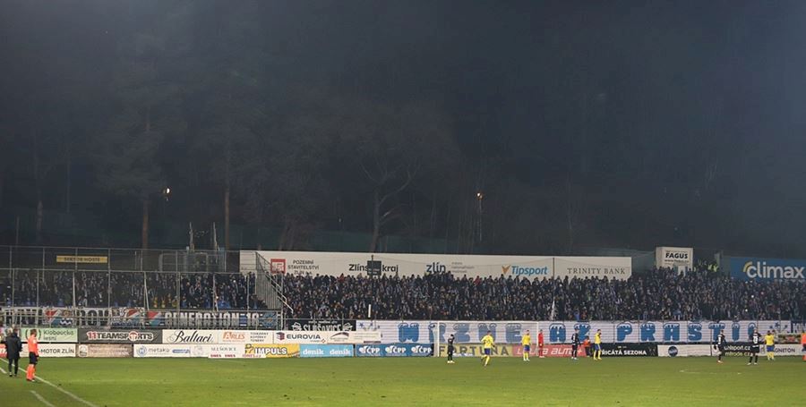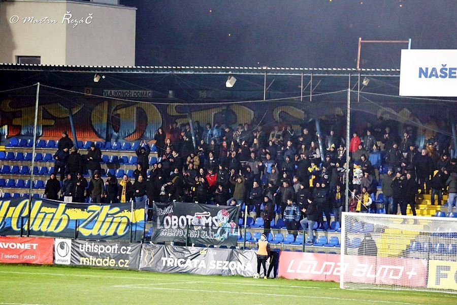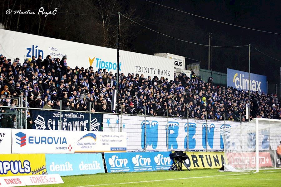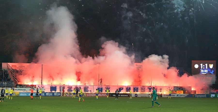 Ohňostroj P*ČO! Mrzne až praští! Chachaři se ve Zlíně zahřáli posvém. Pyro nechybělo ani v domácím sektoru otužilců. Remízové utkání mezi Zlínem a Baníkem sledovalo 4.237 diváků.