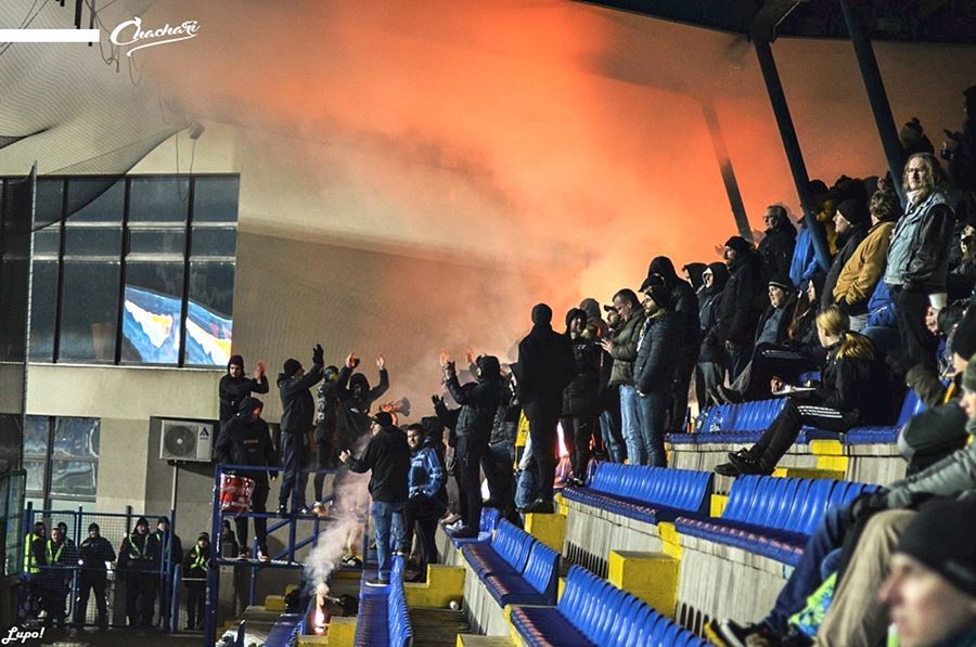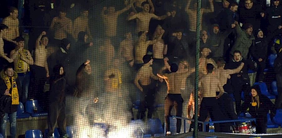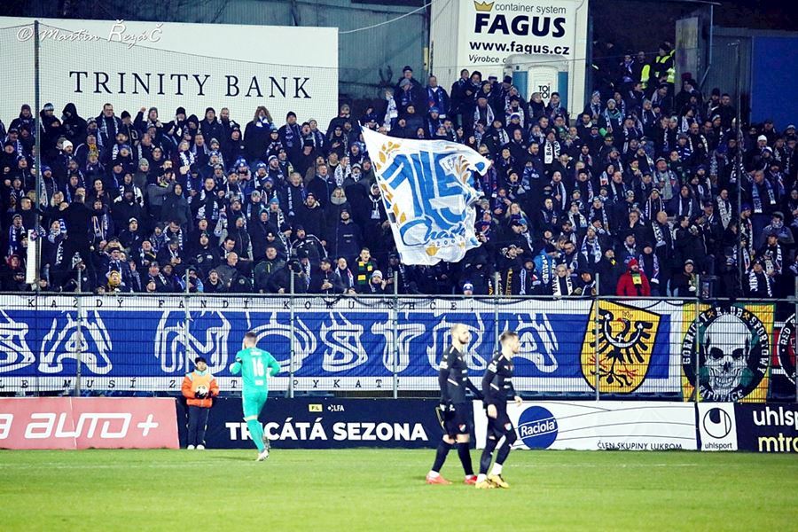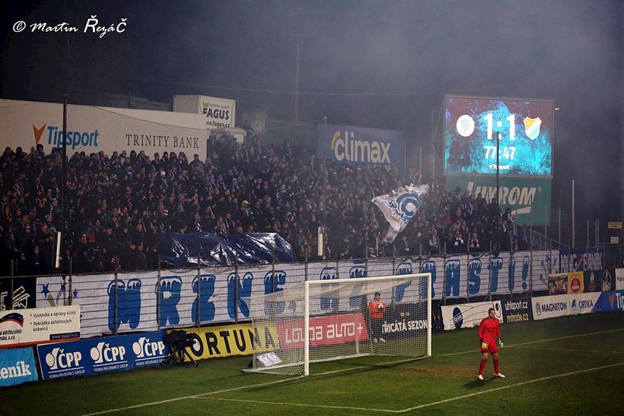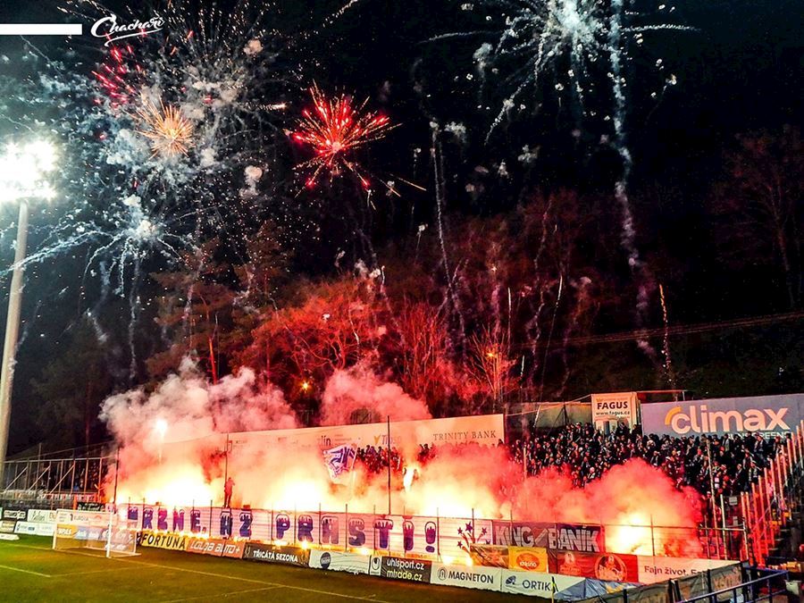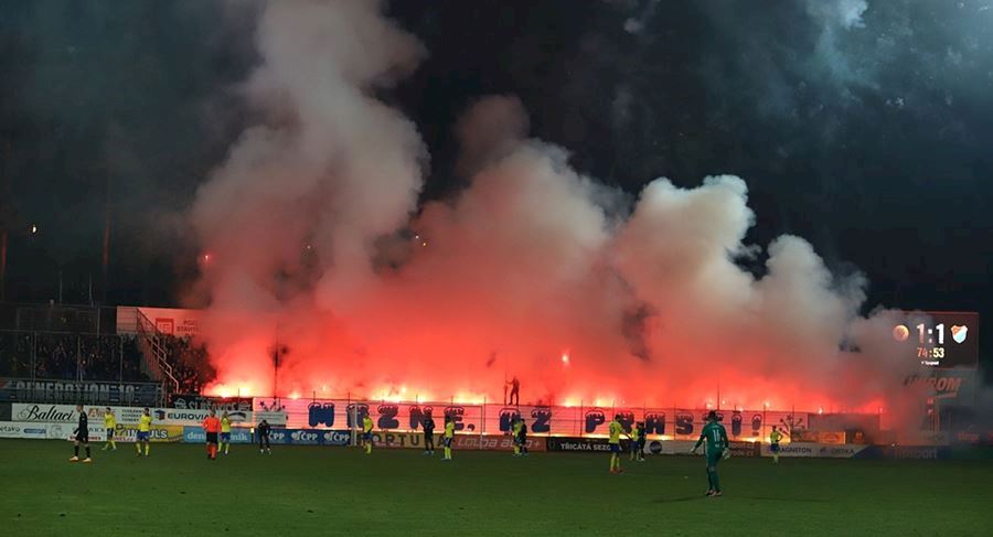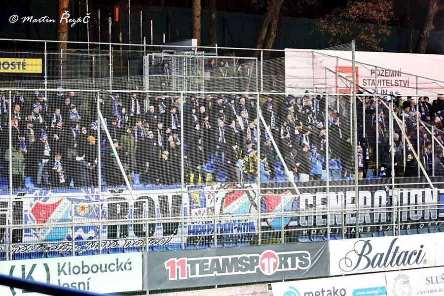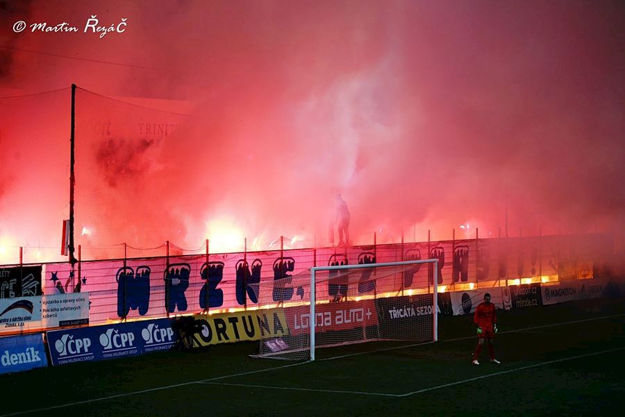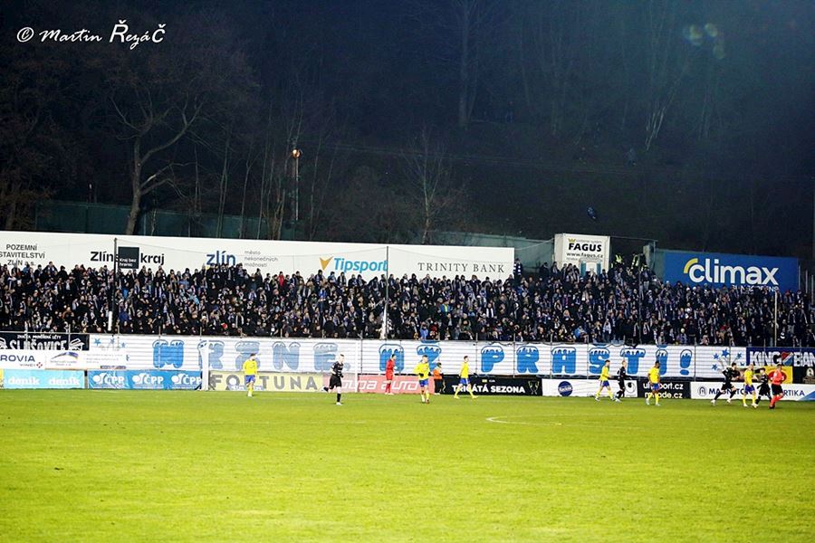 Ohňostroj P*ČO! Mrzne až praští! Chachaři se ve Zlíně zahřáli posvém. Pyro nechybělo ani v domácím sektoru otužilců. Remízové utkání mezi Zlínem a Baníkem sledovalo 4.237 diváků.
