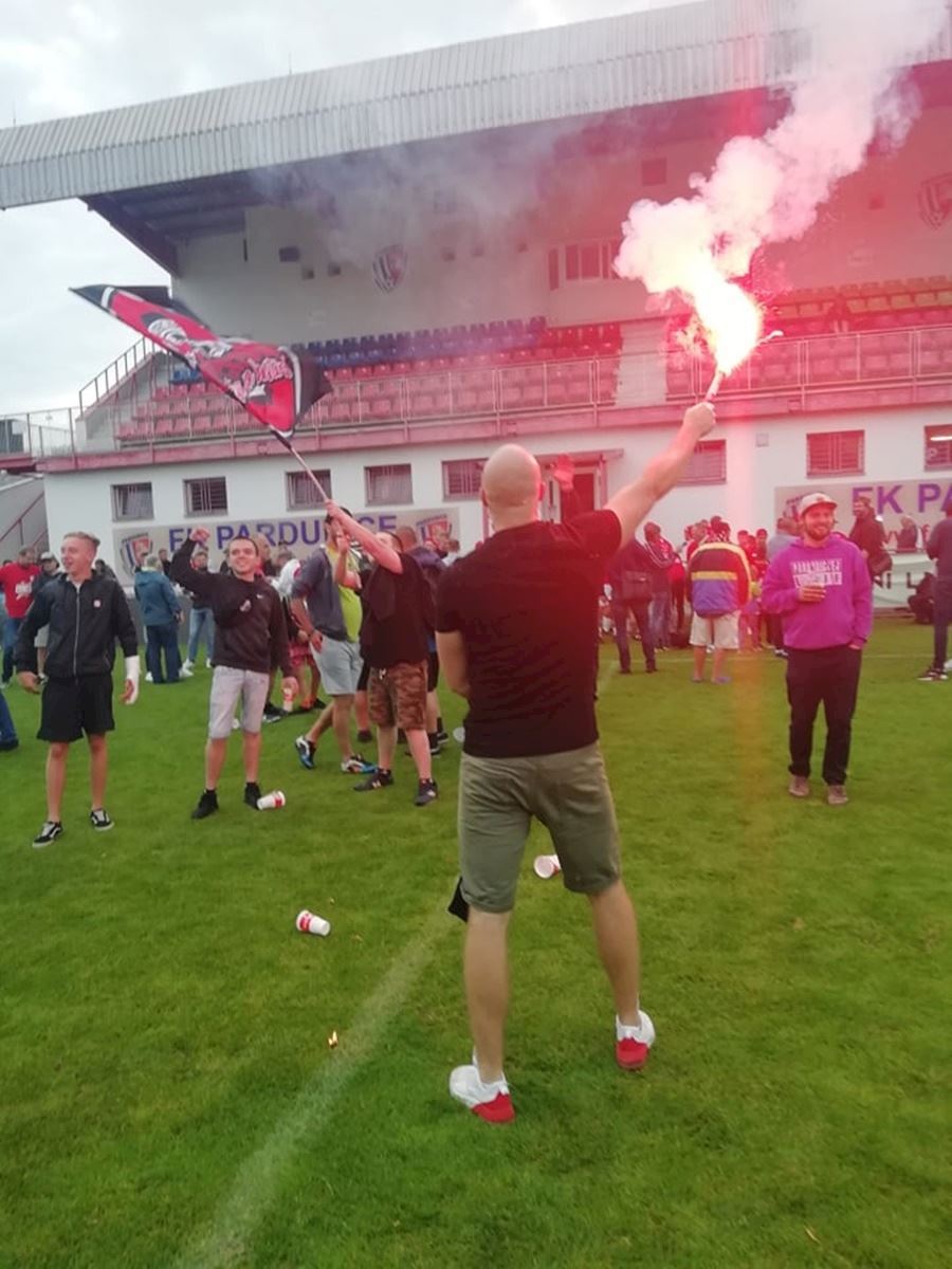 V 89. minutě přeskakujeme plot a čekáme na hvizd hlavního rozhodčího. Odpalujeme pyrotechniku a běžíme se radovat s hráči. Náš klub je opravdu unikátní v tom, jak je rodinný. S hráči chlastáme na hřišti, zpíváme chorály a opilecky diskutujeme.