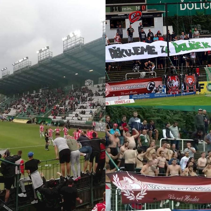 Zhruba stovka Pardubáků zavítala do kotle na svůj první domácí zápas. Celý zápas fandíme, abychom dohnali hráče k první výhře v lize po půl století. V 10.minutě roztahuje nápis s poděkováním za Ďolíček. Milé překvapení byla aktivita fanoušků na hlavní tribuně(odpovídačky, roztažené ruce). Celkem se sešlo 1106 diváků což je celkem slušné, když bereme v potaz to, že hrajeme v azylu. Vše bylo ideální. Je na každém z nás v úsilí vytrvat!
