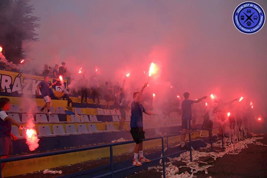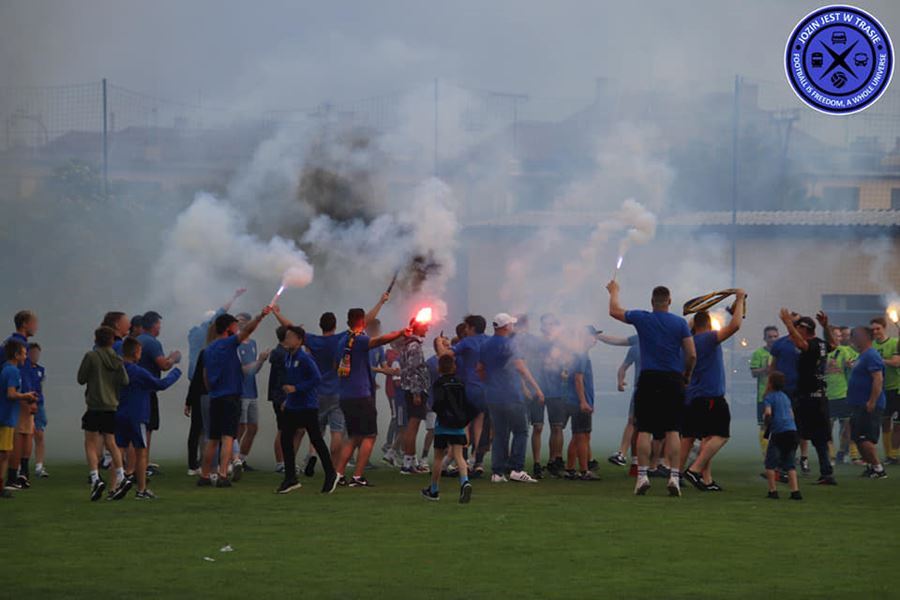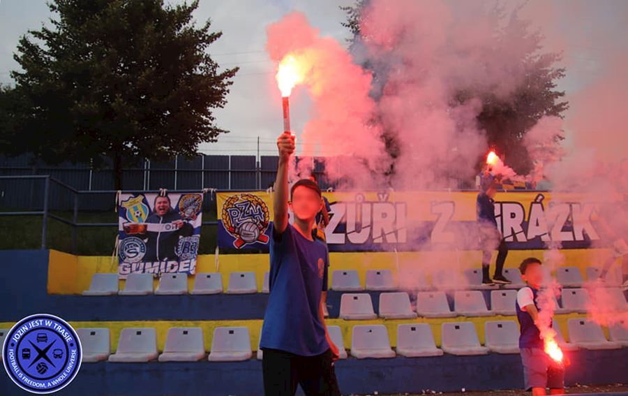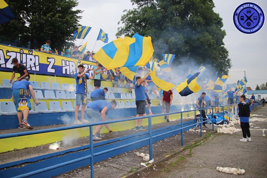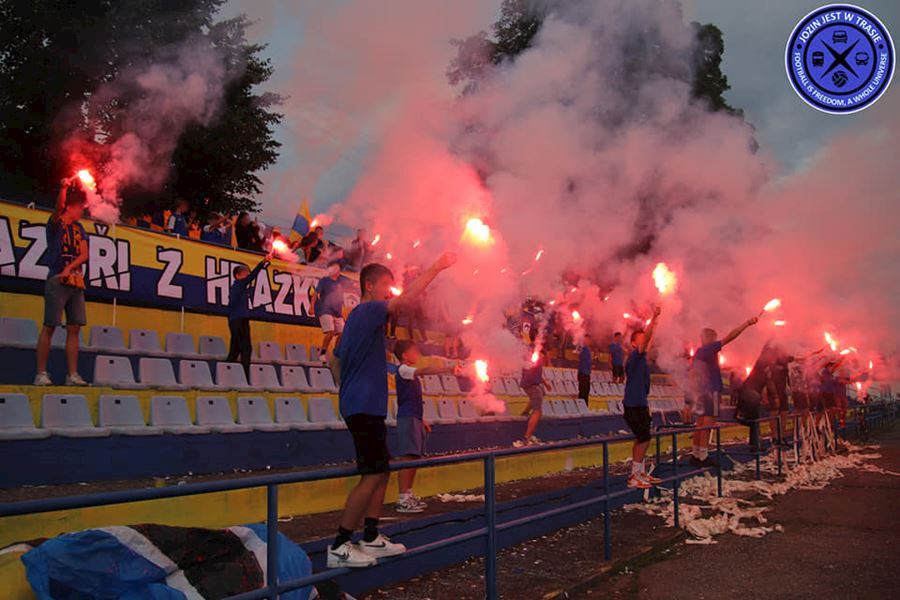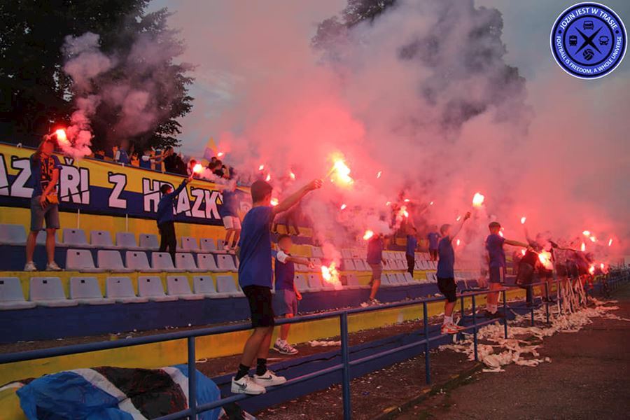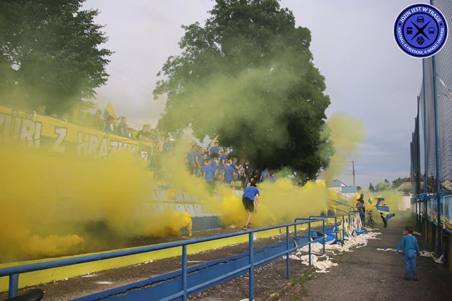 Pazůři z hrázky oslavili postup svého klubu. Převzetí mistrovského poháru předcházelo vítězství v duchu oslav. Nechyběla choreografie a velké množství pyrotechniky...