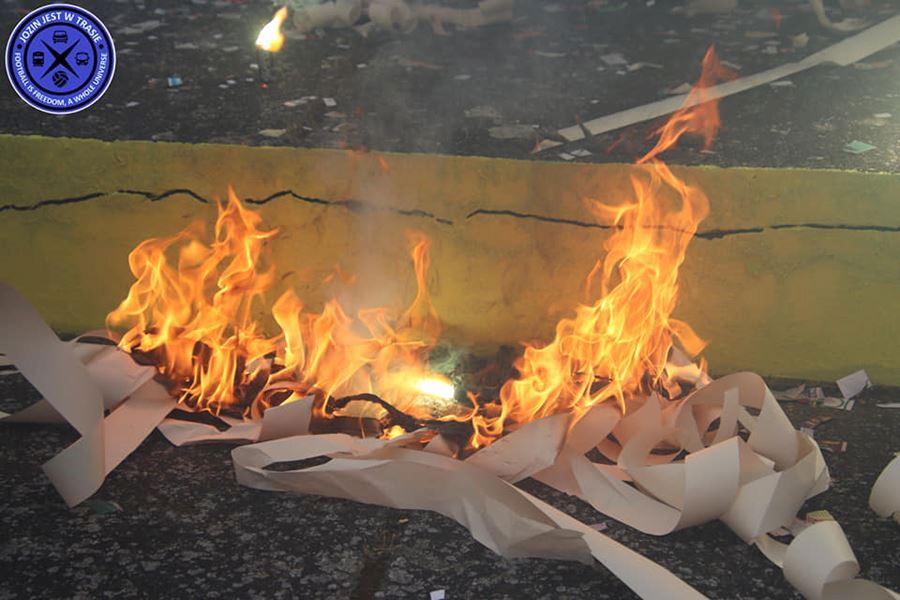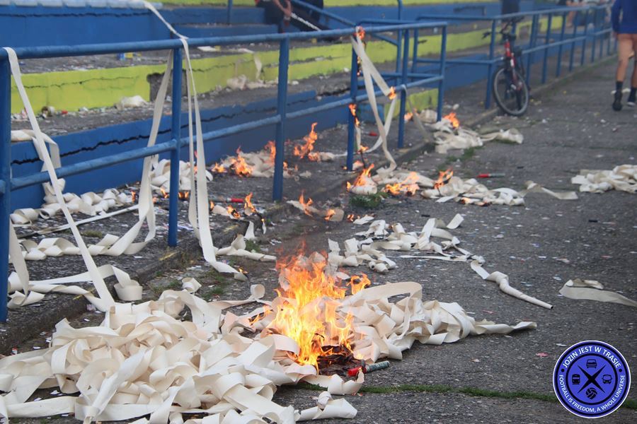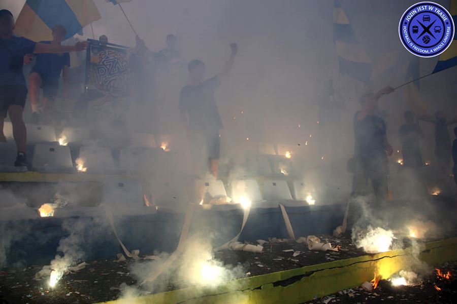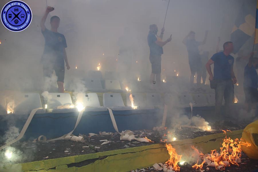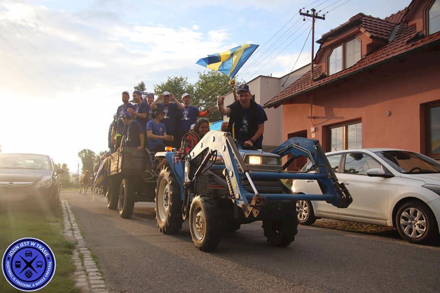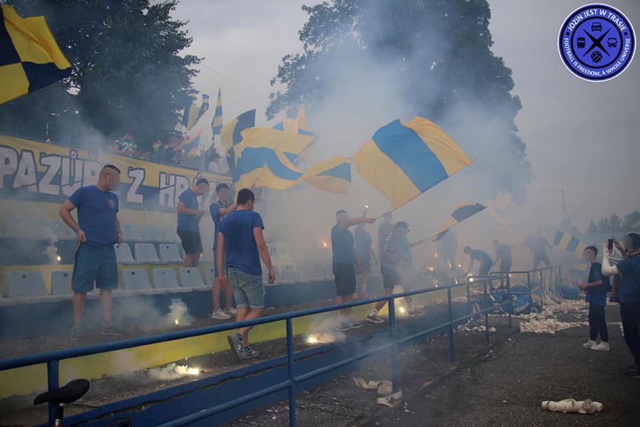Pazůři z hrázky oslavili postup svého klubu. Převzetí mistrovského poháru předcházelo vítězství v duchu oslav. Nechyběla choreografie a velké množství pyrotechniky...