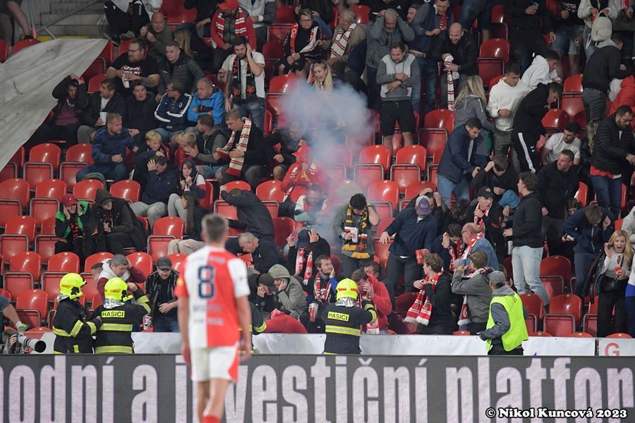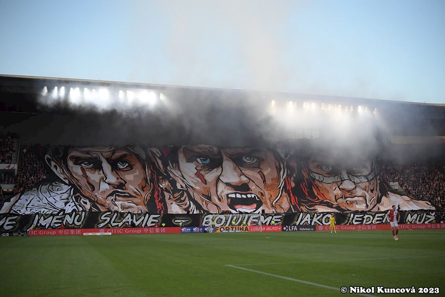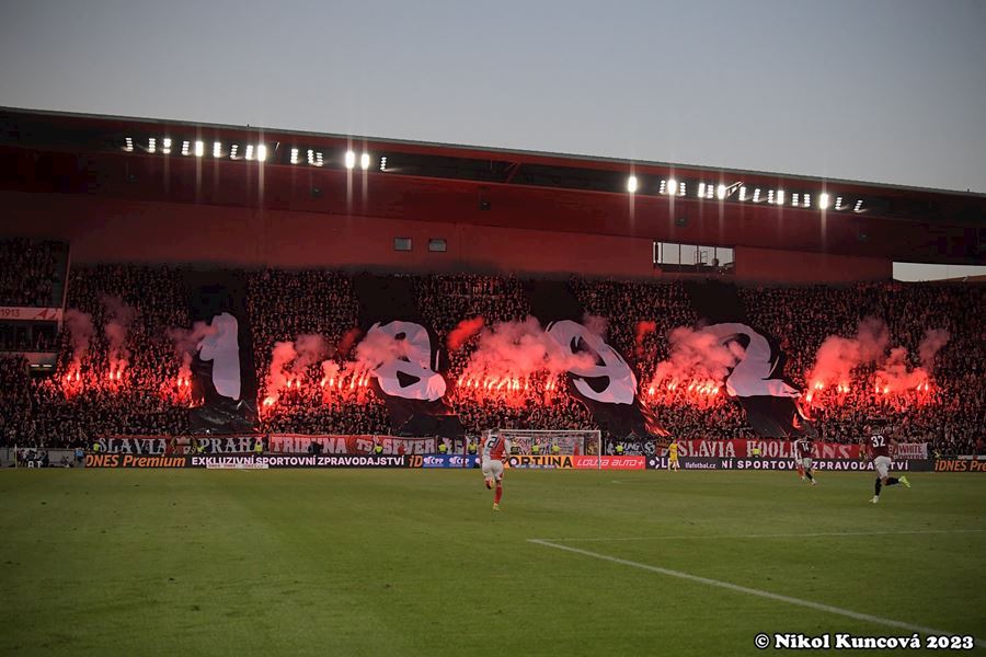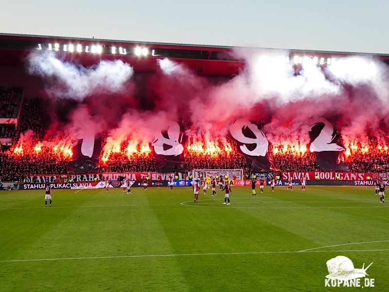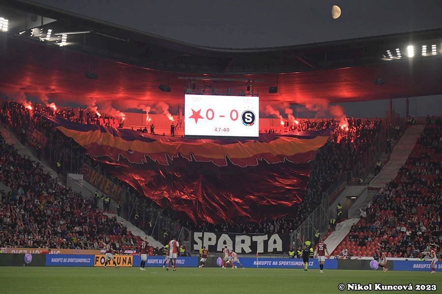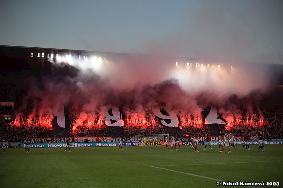 Plný dům, nenávist, choeografie, spoustu pyra. Derby pražských S vzbudilo emoce, kdo čekal kultivovanou reklamu na fotbal, ten si za to může sám! Jen ten dělobuch nemusel bejt...