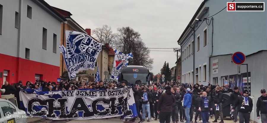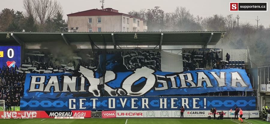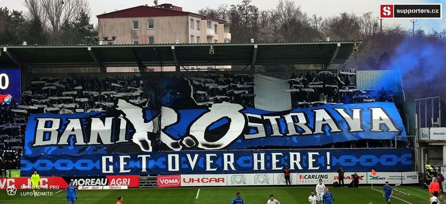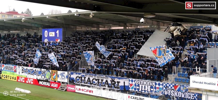 Pochod, choreo, pyro - Ostrava v Uherském Hradišti dominovala jak na hřišti, tak i v hledišti. Výhru Baníku 1:0 sledovalo na stadionu v Uherském Hradišti 6.250 diváků.