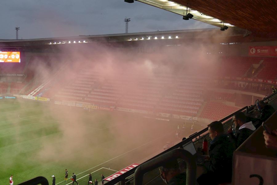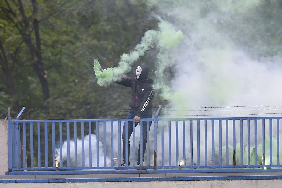 Zaujalo přerušené utkání v Edenu, kde sice fanoušci na tribunách nebyli, ale dým z ulice se dostal až na ochozy a utkání s Plzní bylo přerušeno.