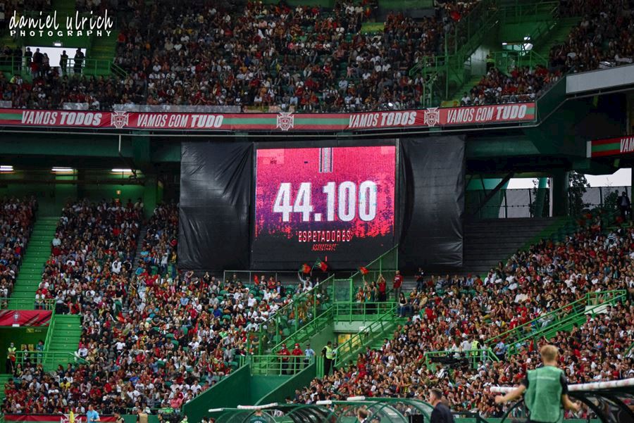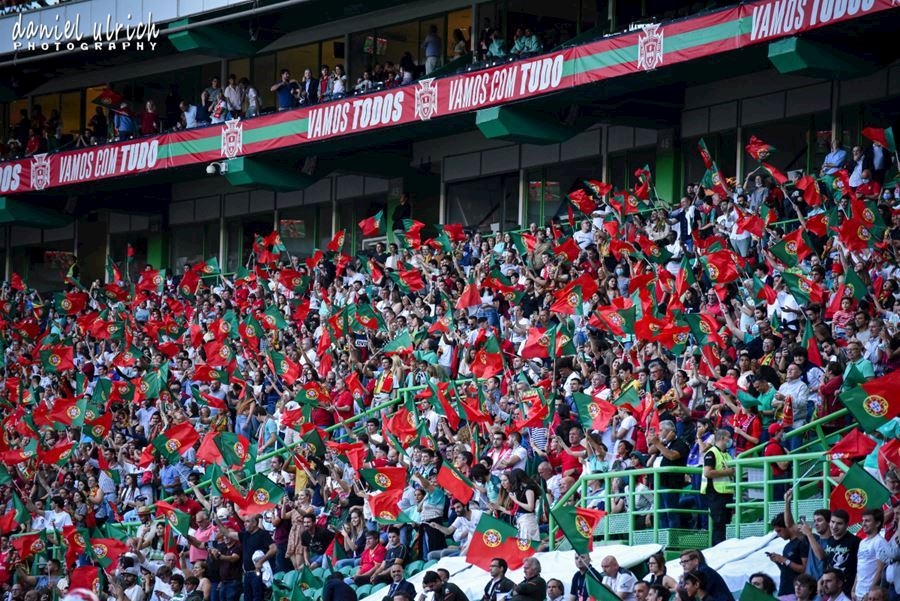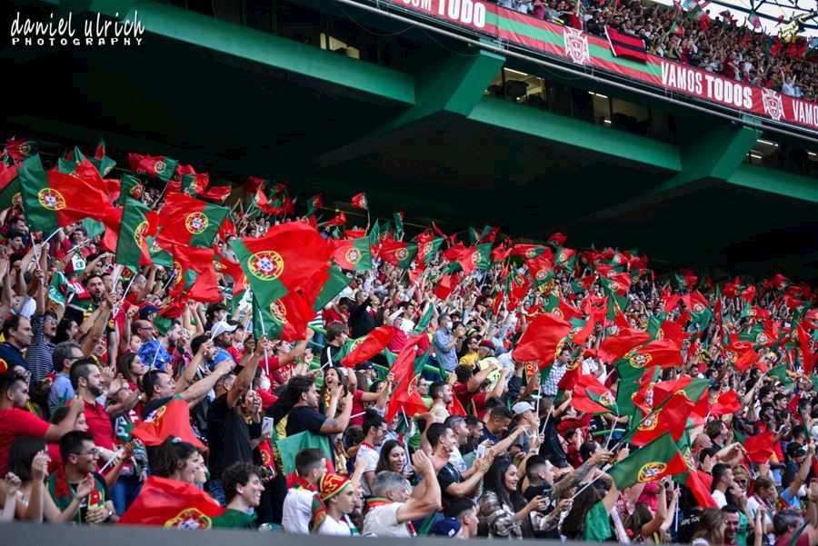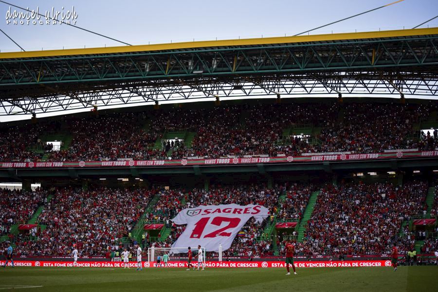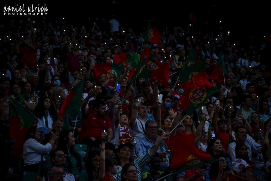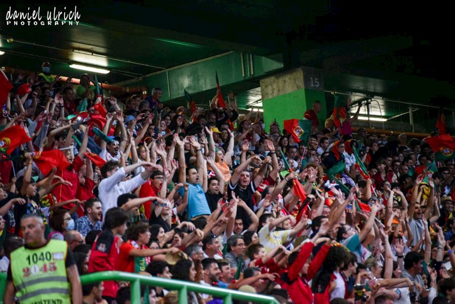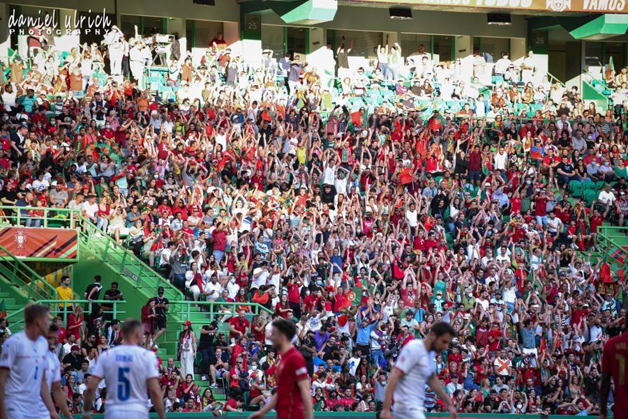 Pohled na tribuny při reprezentačním zápase v Lize národů mezi Portugalskem a Českem, které sledovalo 44.100 diváků. Domácí Portugalsko vítězí 2:0...