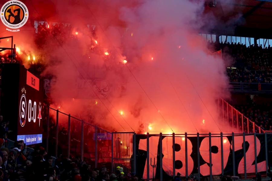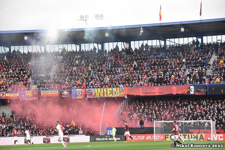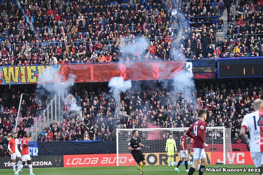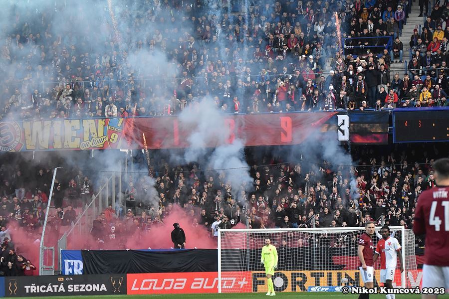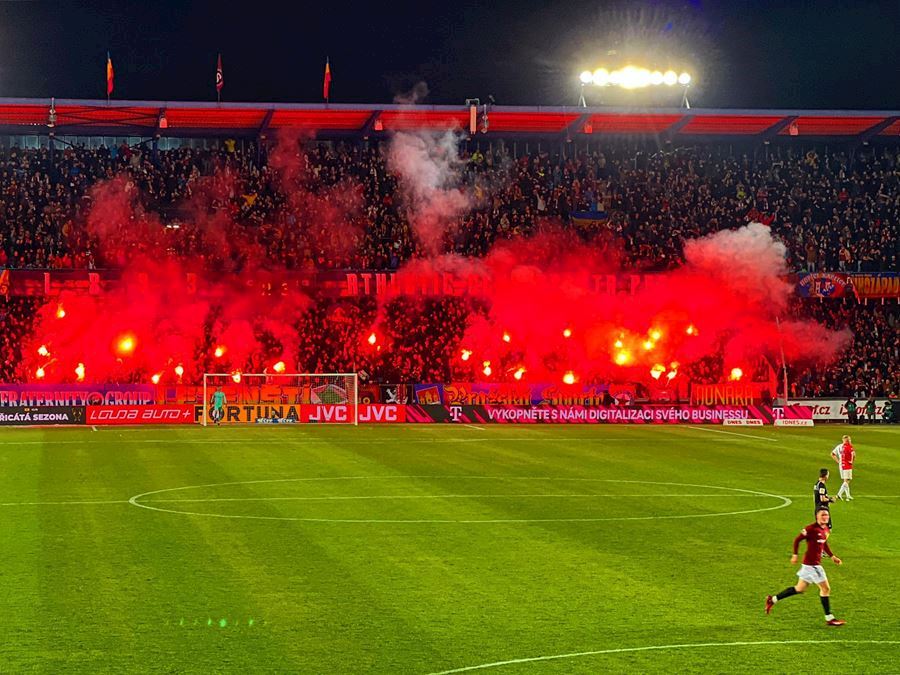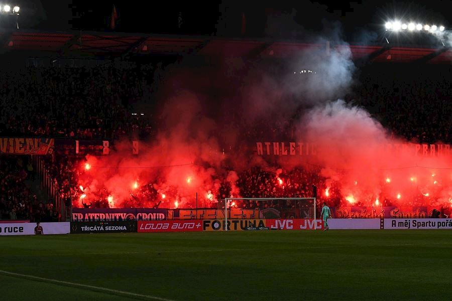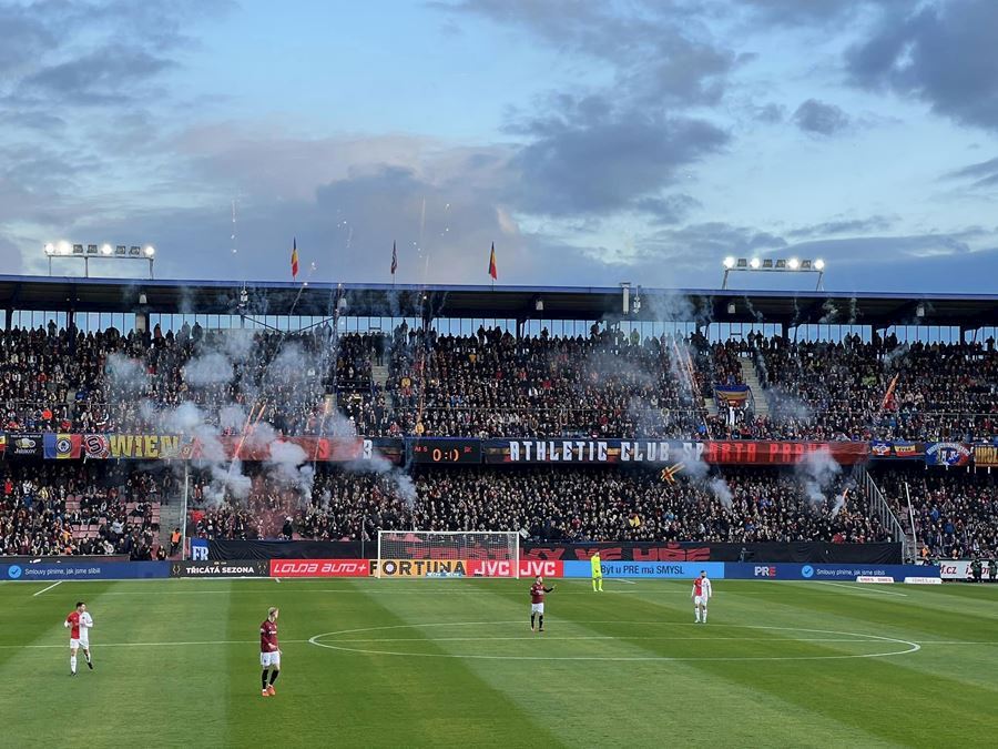 Povedlo se! Vyprodané derby pražských S nabídlo gólové hody, choreografie a velké množství pyrotechniky. Remízu 3:3 sledovalo 18.305 diváků. Choreo Sparty pokazili čumilové...