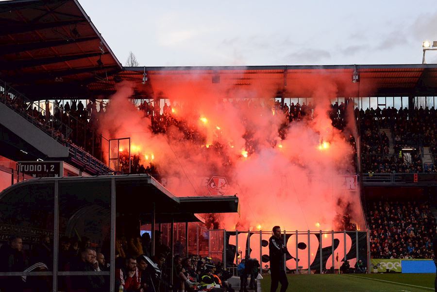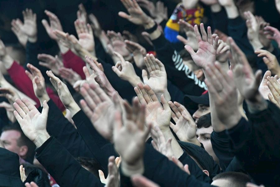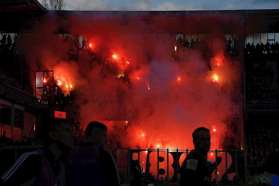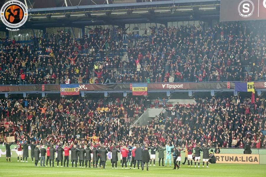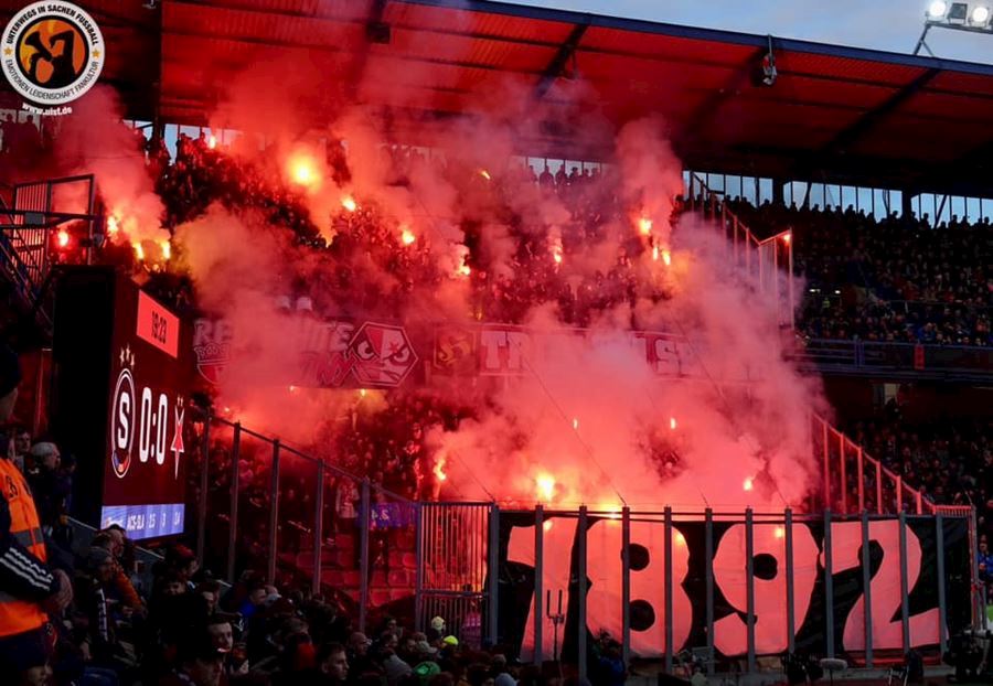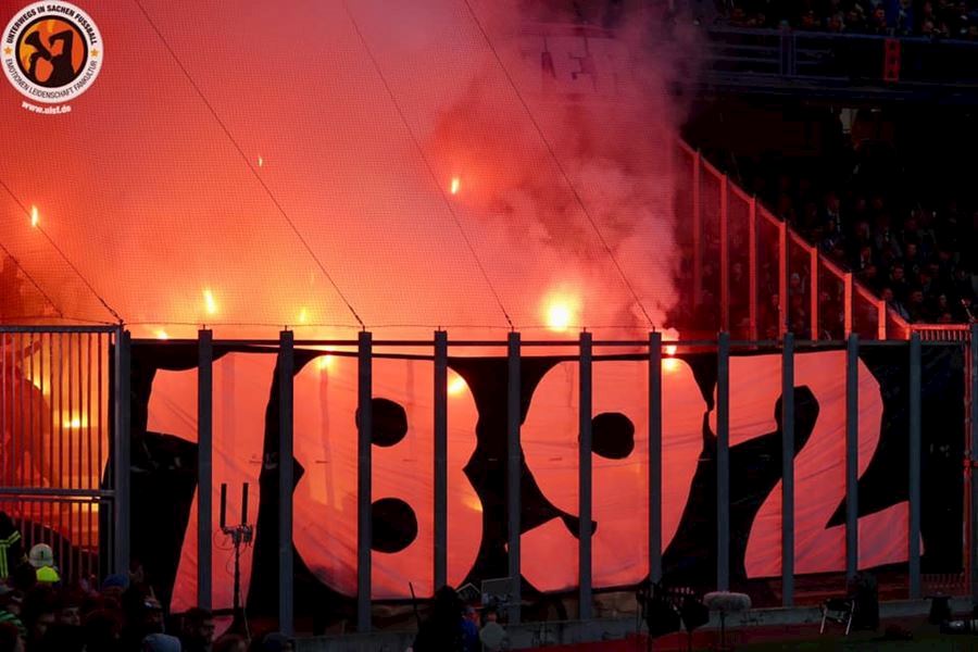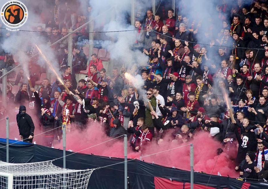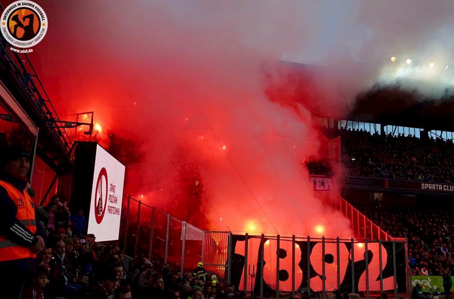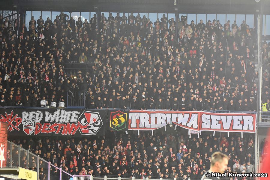 Na dnešní zápas jsme měli na úvod připravené velké tematické choreo "ZPÁTKY VE HŘE”. Plachta o rozměrech 21x14m s motivem Vřískota se povedla namalovat na výbornou a už zbývala jen prezentace spuštěním z horního patra. Bohužel párkožrouti a sedící diváci měli jiné plány a plachta byla na několika místech potrhána a následně poslána dolů. S choreografiemi se tak pro příště budeme muset opět uskromnit jen v našem malém sektoru.