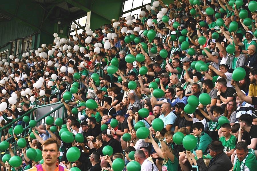 Pražské derby nabídlo zelenobílé balónky, dýmovnice - Společně za Prahu, za Vršovice, za naše barvy a tradice. Choreo s pyrem si v sektoru hostí připravila i Sparta