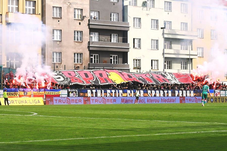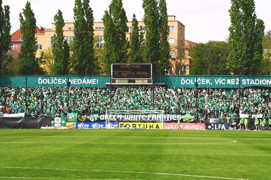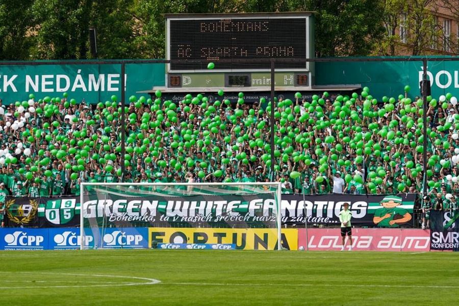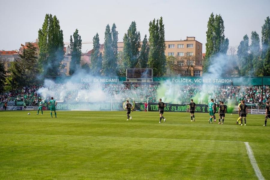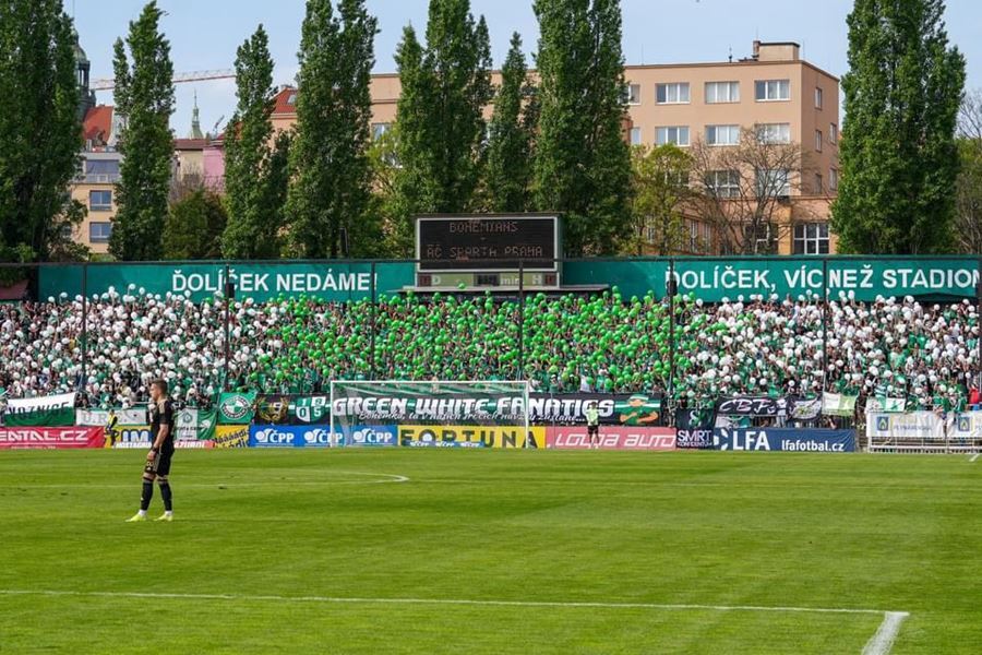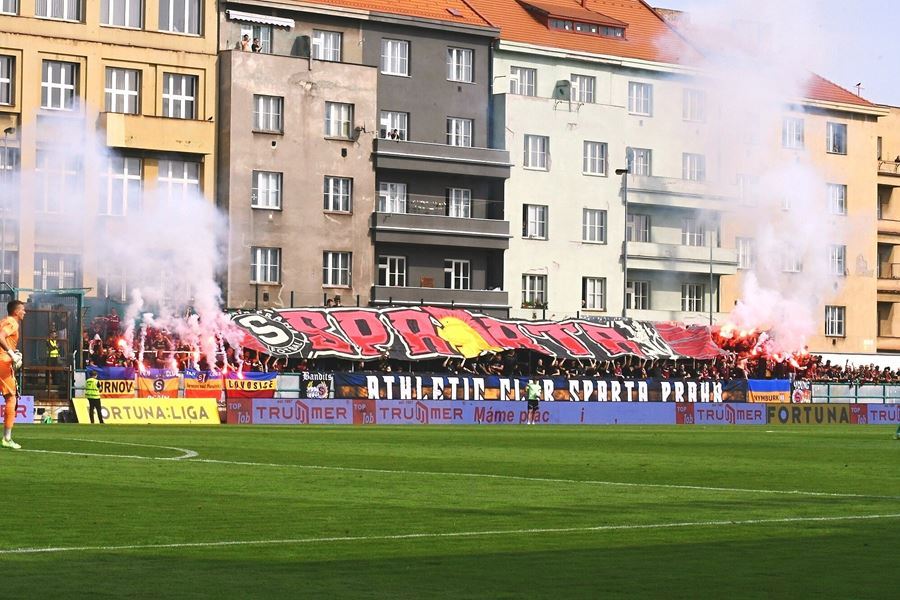 Pražské derby nabídlo zelenobílé balónky, dýmovnice - Společně za Prahu, za Vršovice, za naše barvy a tradice. Choreo s pyrem si v sektoru hostí připravila i Sparta, která se před 6.195 diváky nakonec raduje z výhry 3:1.