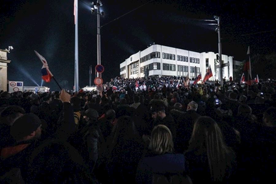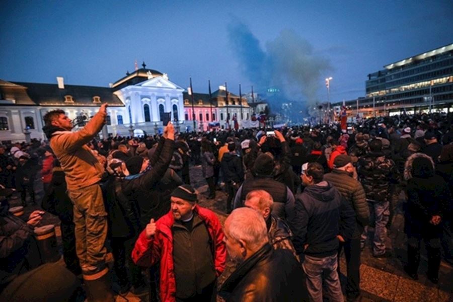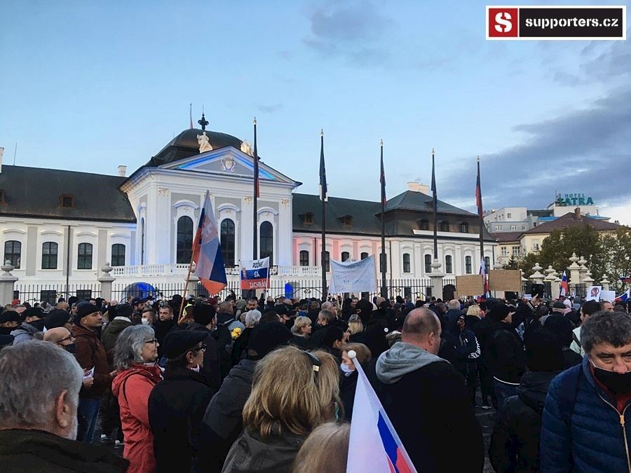 Následne sa väčšia časť demonštrantov presunula pred Grasalkovičov palác, kde sídli prezidentka Slovenskej republiky. Tu už protestovali tisíce Slovákov, ktorí potleskom privítali prichádzajúcich spred Úradu vlády.