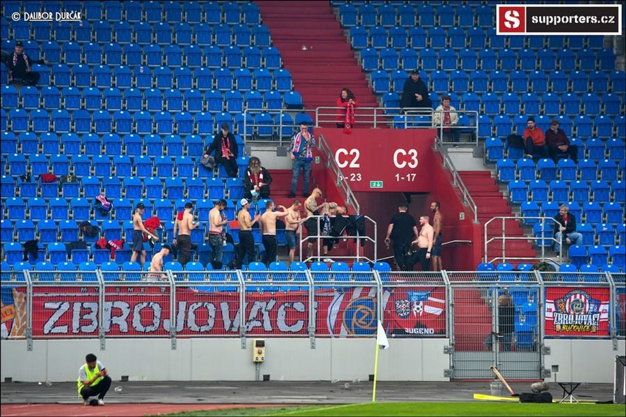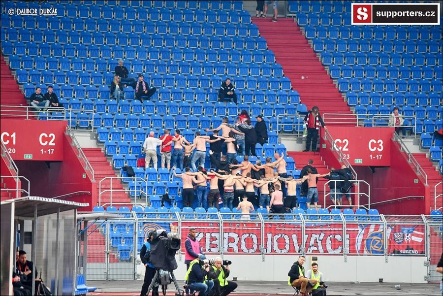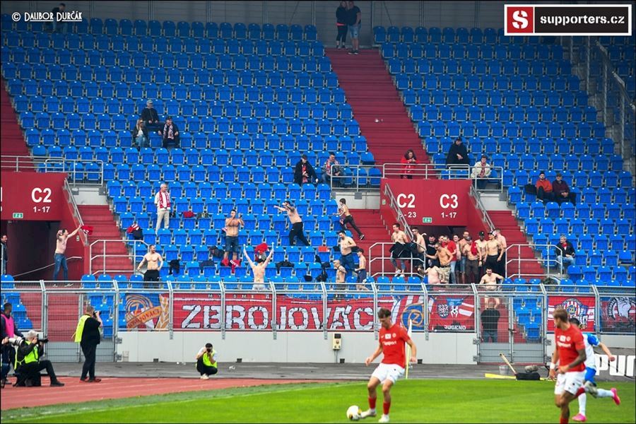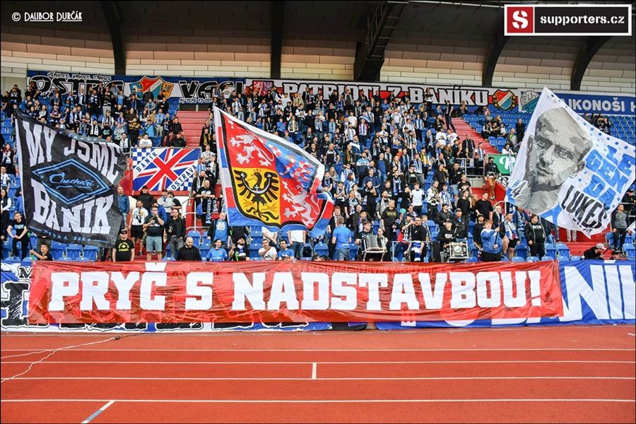 Pryč s nadstavbou! Nedotknutelná víra z Ostravy rozbila Zbrojovku 4:0. Fanoušci Brna si s tím těžkou hlavu nedělali a ve svém sektoru si jeli vláčkem snad do lepších časů...