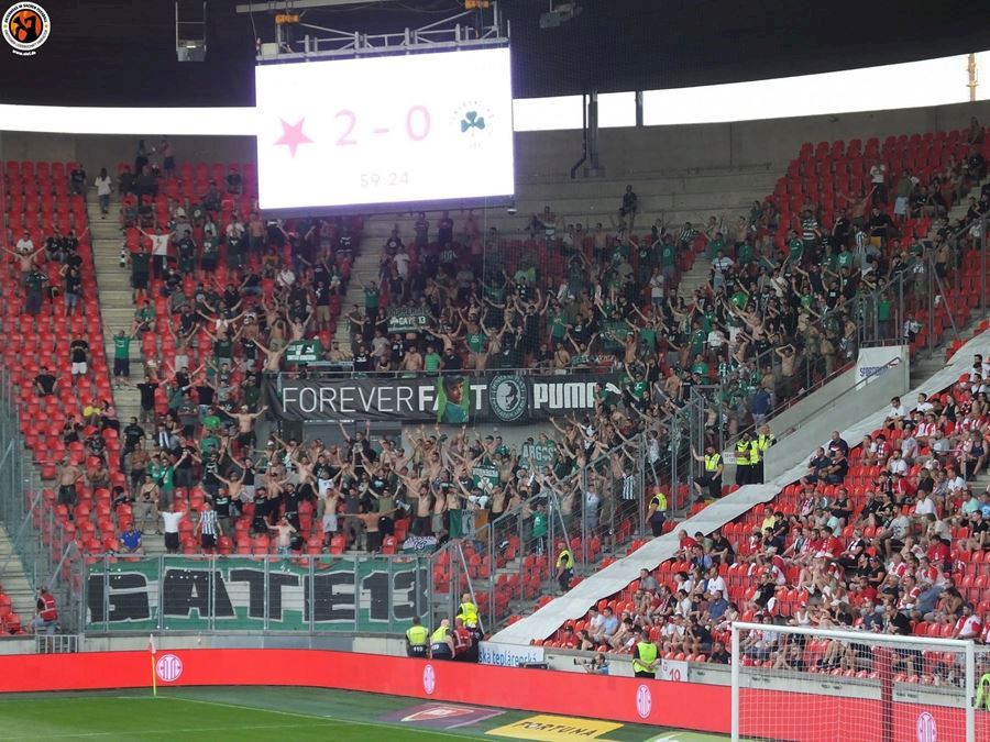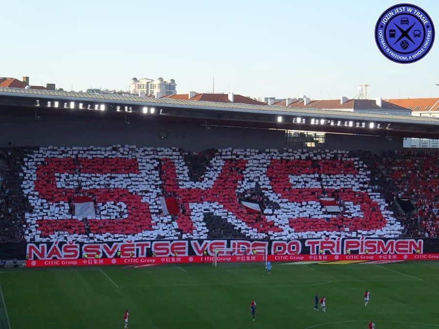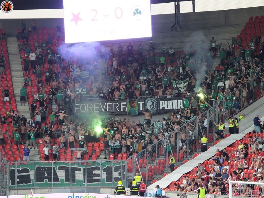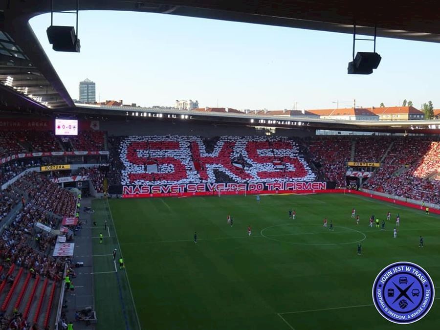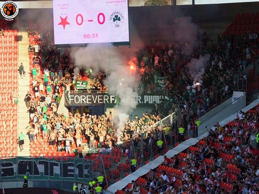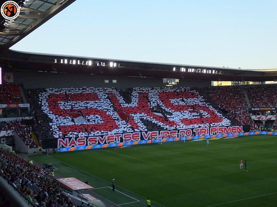 Slavia vykročila za postupem do skupiny. Tribuna Sever se prezentovala kartoniádou a řekové přisvítili Výhru 2:0 sledovalo v Edenu 17.314 diváků.